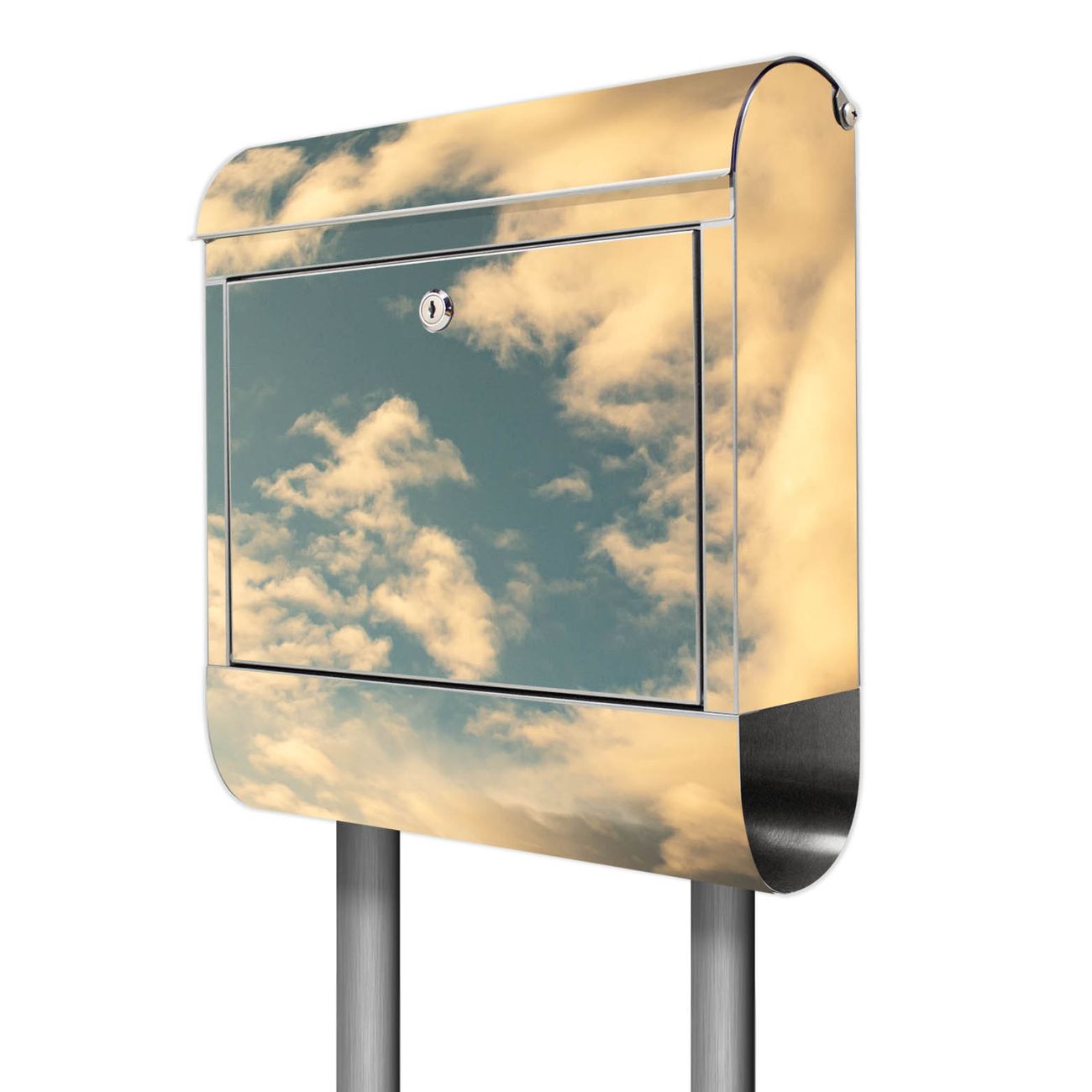 Der Motivstandbriefkasten hat ein sehr ansprechendes und ausgefallenes Design, damit entlocken Sie Ihren Nachbarn und dem Postboten ein Lächeln. Heben Sie Sich ab von der tristen grauen Masse, ohne auf Funktionalität zu verzichten. Der Briefkasten besteht aus hochwertigem 18/0 Edelstahl und die Wetter- und UV-resistenten Folie mit Wolken 6 Motiv ist zusätzlich mit einem Schutzlaminat überzogen. Der Standbriefkasten wird mit Montagematerial und zwei Schlüsseln geliefert.