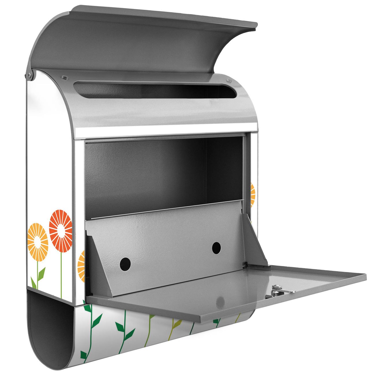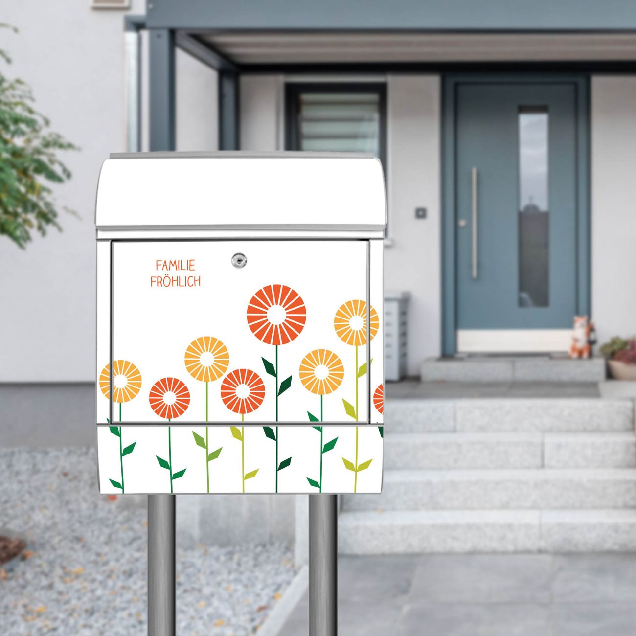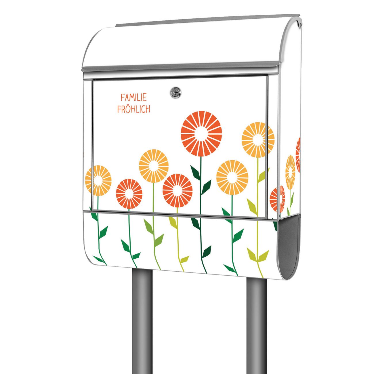 Der banjado Standbriefkasten mit Motiv Motiv Abstrakte Margeriten kombiniert großzügigen Stauraum mit modernem Design. Durch das geräumige Fach finden auch große A4-Sendungen problemlos Platz. Die integrierte Zeitungsrolle sorgt dafür, dass Tageszeitungen und Magazine separat und griffbereit untergebracht sind. Der pulverbeschichtete Standfuß ist farblich passend zum Briefkasten gestaltet und sorgt für ein stimmiges Gesamtbild. Mit dem individuellen Motiv setzen Sie einen optischen Akzent, der sowohl praktisch als auch dekorativ ist.