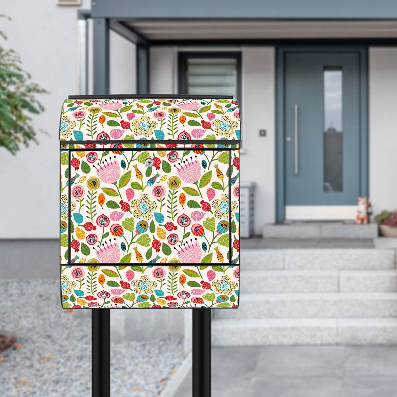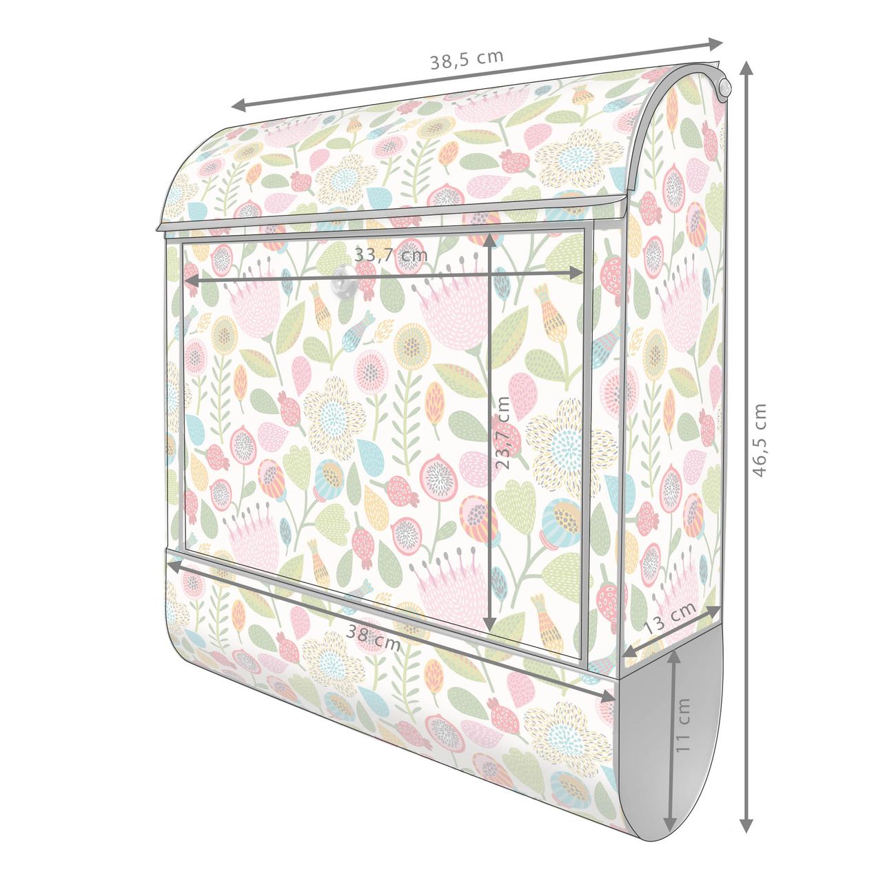 Der banjado Standbriefkasten mit Motiv Motiv Blumen Naiv kombiniert großzügigen Stauraum mit modernem Design. Durch das geräumige Fach finden auch große A4-Sendungen problemlos Platz. Die integrierte Zeitungsrolle sorgt dafür, dass Tageszeitungen und Magazine separat und griffbereit untergebracht sind. Der pulverbeschichtete Standfuß ist farblich passend zum Briefkasten gestaltet und sorgt für ein stimmiges Gesamtbild. Mit dem individuellen Motiv setzen Sie einen optischen Akzent, der sowohl praktisch als auch dekorativ ist.