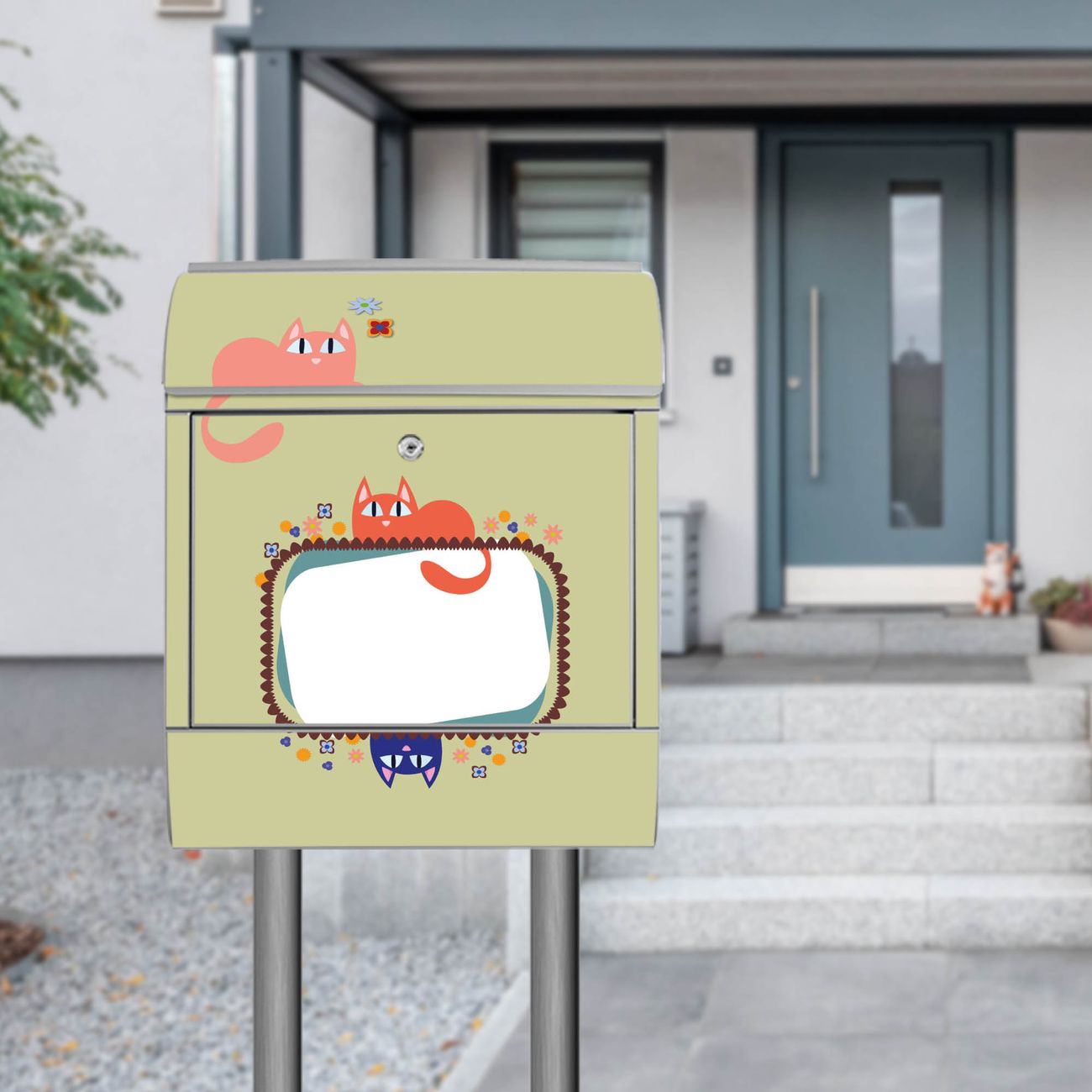 Standbriefkasten Stahl Karikatur Katzen