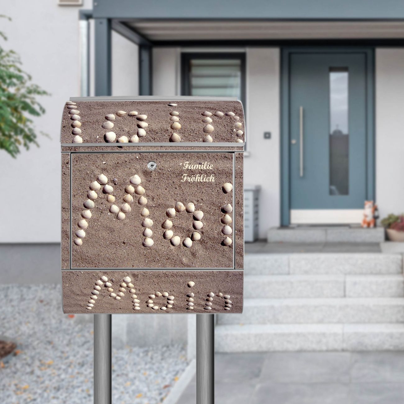 Der banjado Standbriefkasten mit Motiv Motiv Moin Moin kombiniert großzügigen Stauraum mit modernem Design. Durch das geräumige Fach finden auch große A4-Sendungen problemlos Platz. Die integrierte Zeitungsrolle sorgt dafür, dass Tageszeitungen und Magazine separat und griffbereit untergebracht sind. Der pulverbeschichtete Standfuß ist farblich passend zum Briefkasten gestaltet und sorgt für ein stimmiges Gesamtbild. Mit dem individuellen Motiv setzen Sie einen optischen Akzent, der sowohl praktisch als auch dekorativ ist.