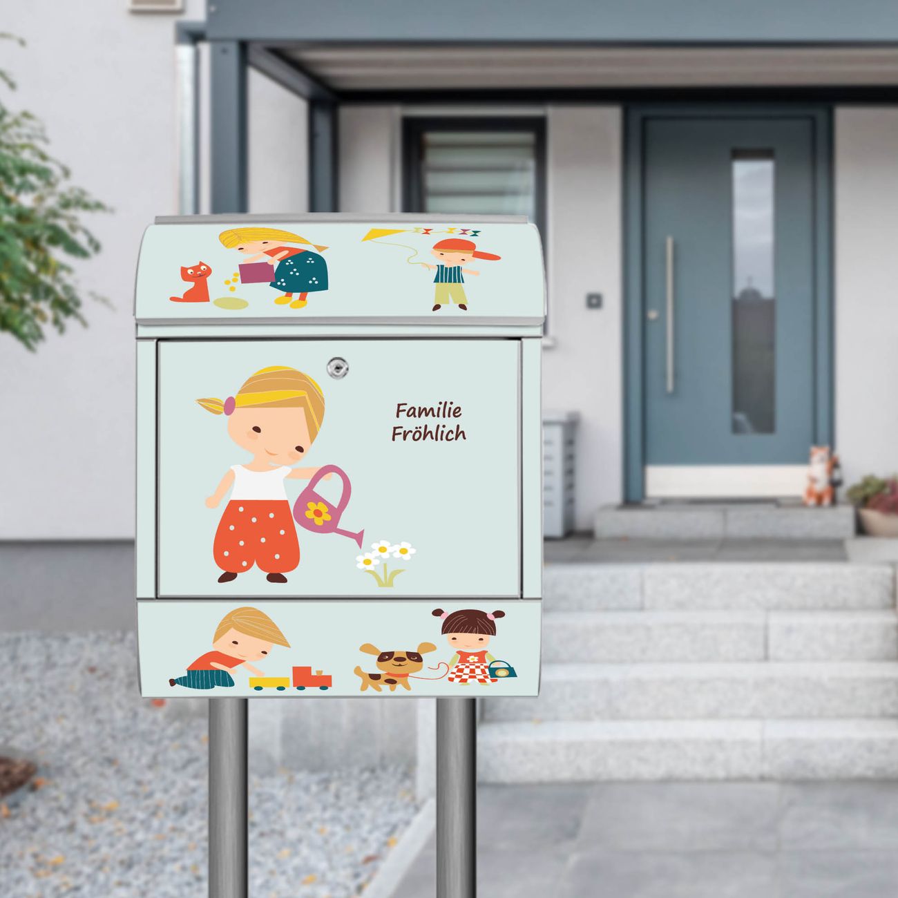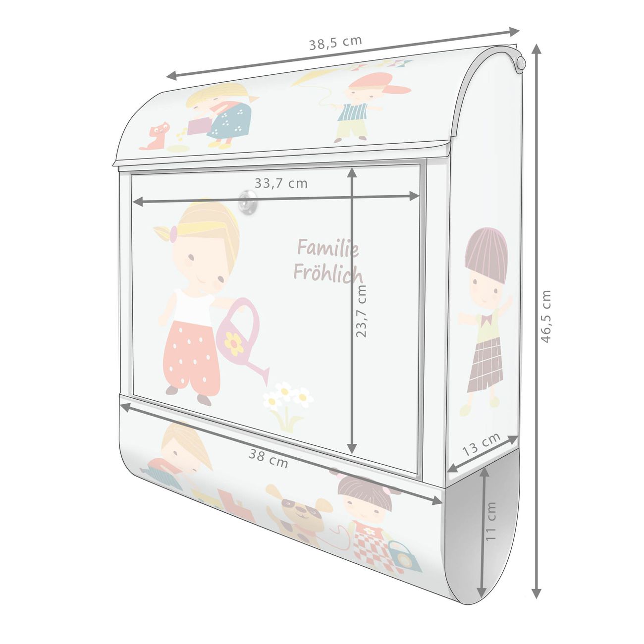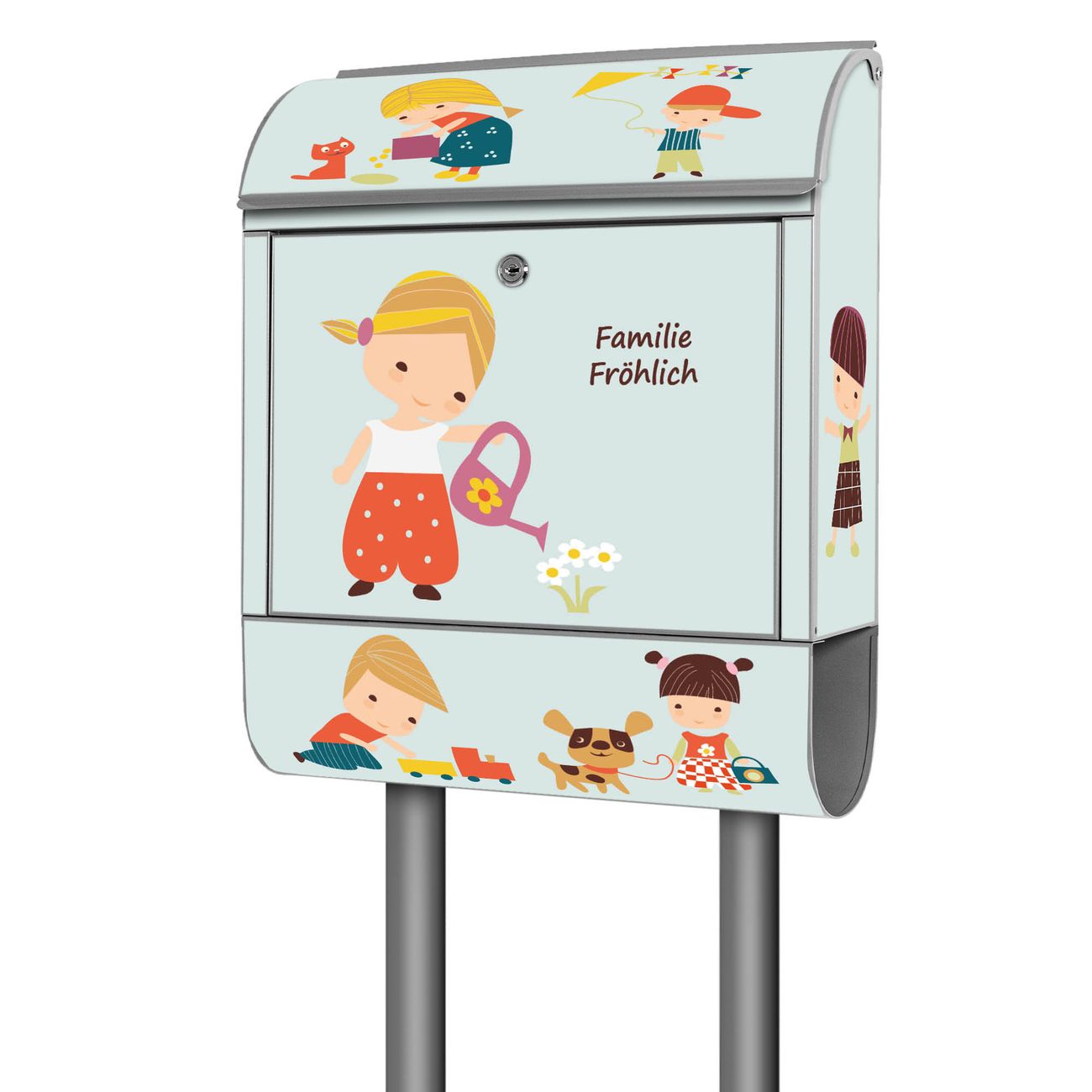 Der silber/graue banjado Standbriefkasten mit Motiv Play Time und ihrem persönlichen Namen bietet Ihnen mit seinem Fassungsvermögen genügend Platz auch für große A4 Sendungen. Die integrierte Zeitungsrolle eignet sich hervorragend, um unkompliziert die Tageszeitung zu fassen. Der Standfuß ist farblich passend zu Ihrem Briefkasten. Der Postkasten mit Motiv Play Time hat ein sehr ansprechendes und ausgefallenes Design, damit entlocken Sie Ihren Nachbarn und dem Postboten ein L&aumlcheln.
