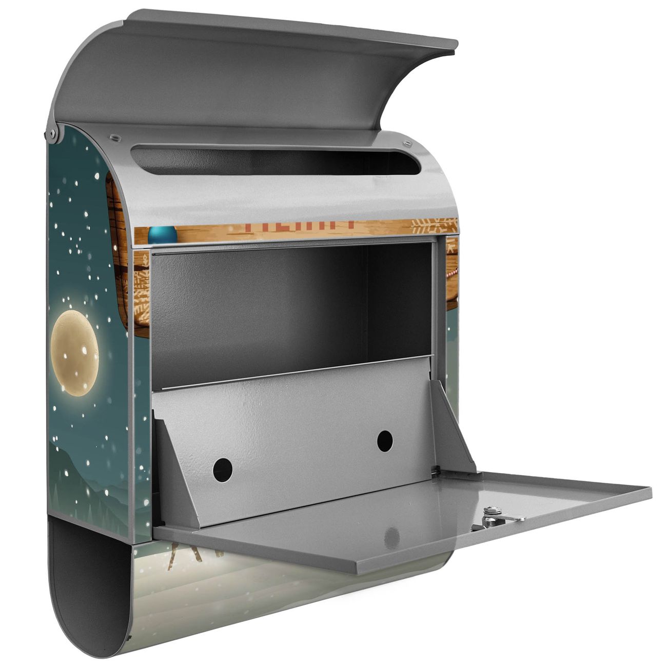 Der banjado Standbriefkasten mit Motiv Motiv Weihnachtsland kombiniert großzügigen Stauraum mit modernem Design. Durch das geräumige Fach finden auch große A4-Sendungen problemlos Platz. Die integrierte Zeitungsrolle sorgt dafür, dass Tageszeitungen und Magazine separat und griffbereit untergebracht sind. Der pulverbeschichtete Standfuß ist farblich passend zum Briefkasten gestaltet und sorgt für ein stimmiges Gesamtbild. Mit dem individuellen Motiv setzen Sie einen optischen Akzent, der sowohl praktisch als auch dekorativ ist.