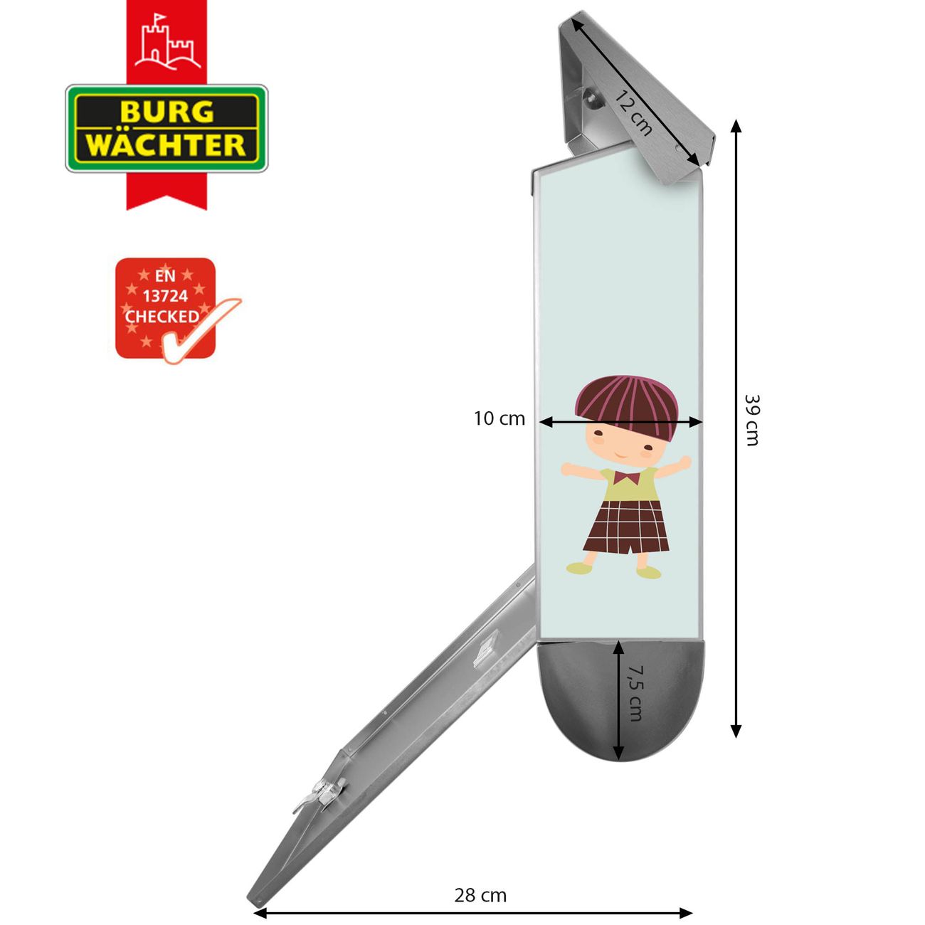 Der BURG-WÄCHTER Edelstahl Briefkasten mit Motiv Play Time und Zeitungsrolle bietet Ihnen mit seinem Fassungsvermögen genügend Platz auch für große A4 Sendungen und Zeitschriften. Das integrierte Regendach schützt Ihre Post vor dem Eindringen von Regen.