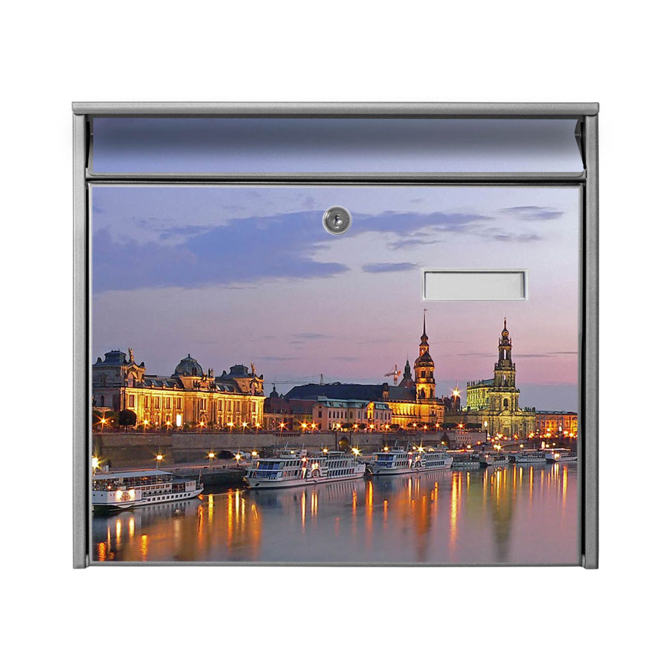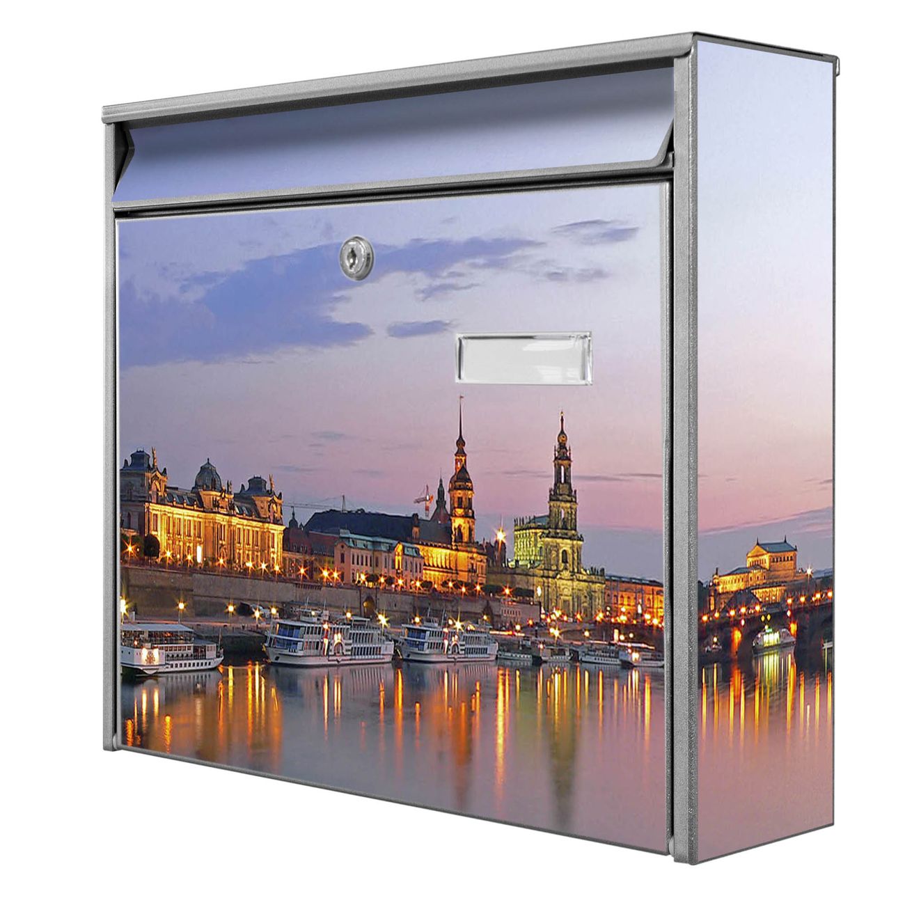 Der Postkasten mit Motiv Dresden hat ein sehr ansprechendes und zeitloses Design. Heben Sie Sich von der tristen grauen Masse ab, ohne auf Funktionalität zu verzichten. Die weite Öffnung ohne scharfe Kanten ermöglicht eine einfache Handhabung beim Entnehmen der Post. Die Größe bietet genügend Platz für Sendungen aller Art, der Einwurf fasst auch größere A4 Sendungen. Ihr Burg-Wächter Motivbriefkasten wird in Sachsen in einer kleinen Manufaktur von Hand veredelt. Die Motivfolie ist lösungsmittelfrei und schutzlaminiert, dies sorgt für einen langen Halt. Wir legen großen Wert auf die Verbindung von Funktionalität und Design.
