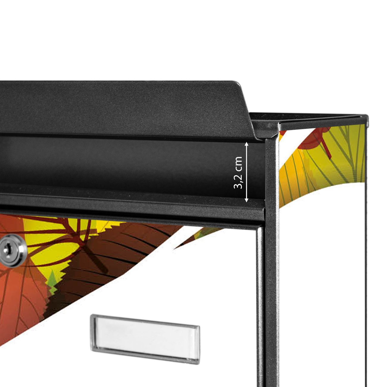 Der Postkasten mit Motiv Herbstlaub hat ein sehr ansprechendes und zeitloses Design. Heben Sie Sich von der tristen grauen Masse ab, ohne auf Funktionalität zu verzichten. Die weite Öffnung ohne scharfe Kanten ermöglicht eine einfache Handhabung beim Entnehmen der Post. Die Größe bietet genügend Platz für Sendungen aller Art, der Einwurf fasst auch größere A4 Sendungen. Ihr Burg-Wächter Motivbriefkasten wird in Sachsen in einer kleinen Manufaktur von Hand veredelt. Die Motivfolie ist lösungsmittelfrei und schutzlaminiert, dies sorgt für einen langen Halt. Wir legen großen Wert auf die Verbindung von Funktionalität und Design.