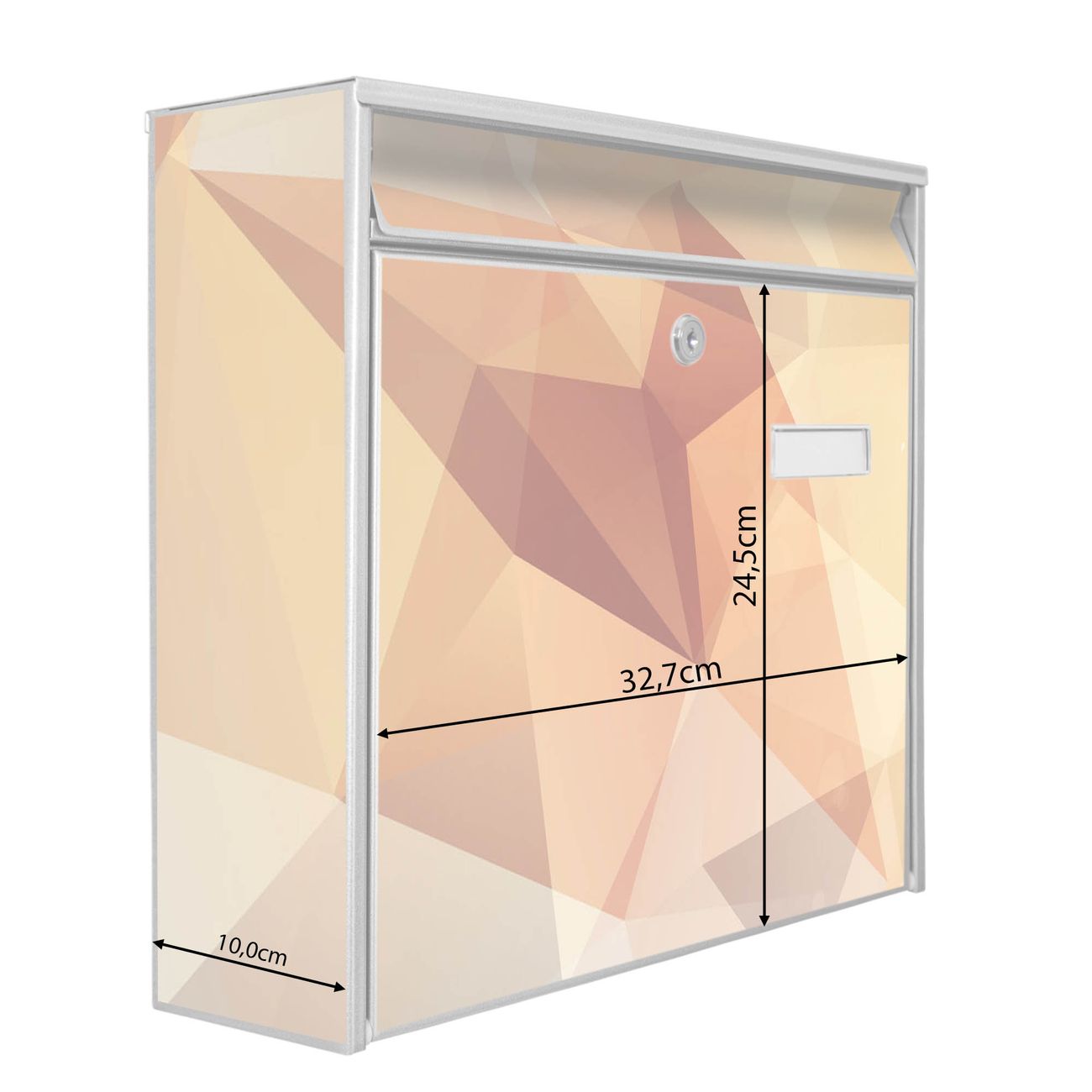 Die Größe des Briefkastens ist 36 x 32 x 10cm (BxHxT) groß. Das Motiv besteht aus einer wetter- und UV-festen Folie, die mit einem Schutzlaminat überzogen ist und Ihren Briefkasten zusätzlich vor Kratzern schützt. Sie erhalten 2 Schlüssel sowie das Montagematerial.