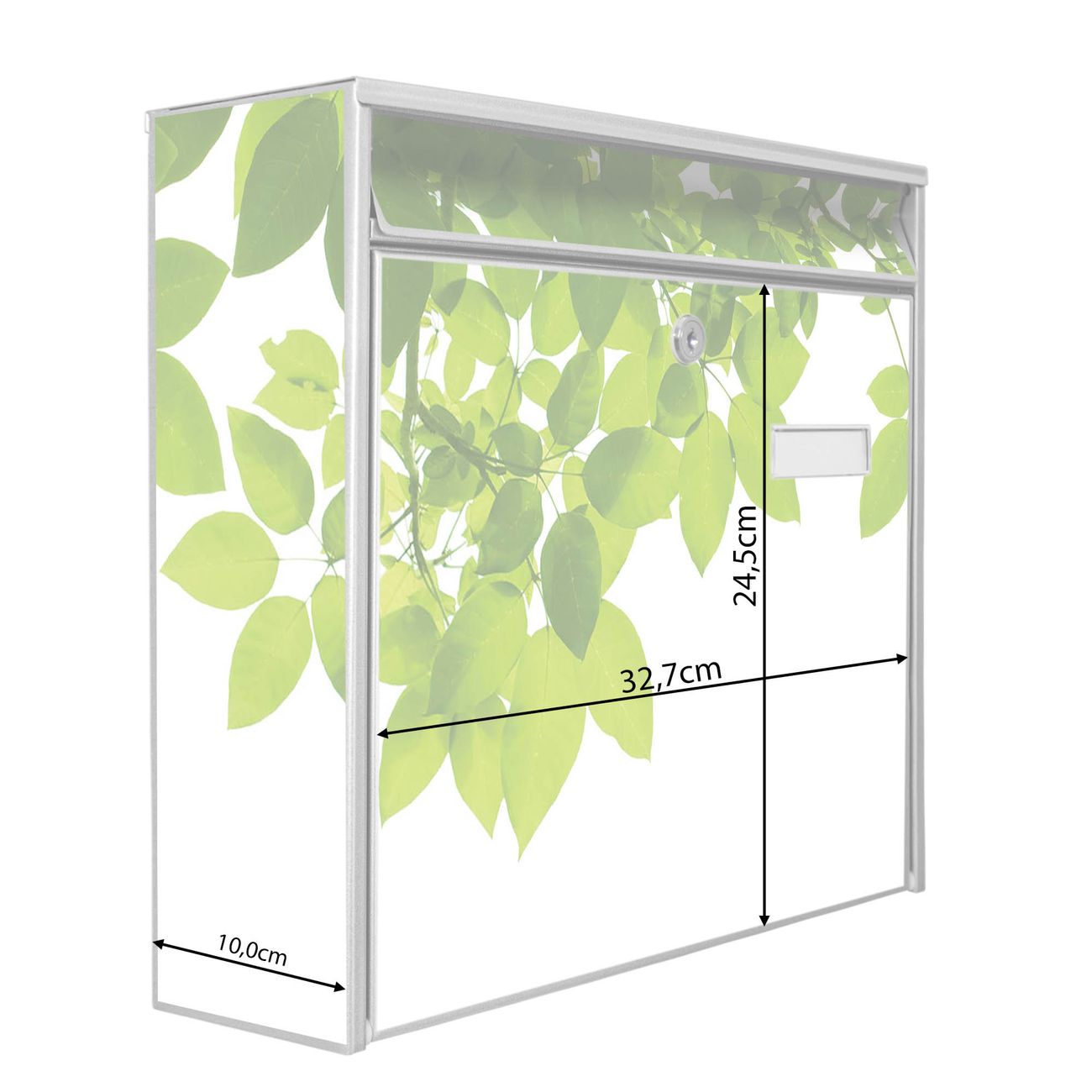 Der Burg Wächter Mail Briefkasten mit Motiv Rahmen Blätter bietet Ihnen mit seinem Fassungsvermögen genügend Platz auch für große A4 Sendungen. Auf Wunsch können Sie bei uns den passenden Standfuß kaufen und so aus dem Wandbriefkasten einen Standbriefkasten machen. Wir bieten Ihnen ebenfalls Namensschilder, bereits beschriftet oder frei zu beschriften, und verschiedene selbst gestaltete Bitte-Keine-Werbung-Aufkleber.