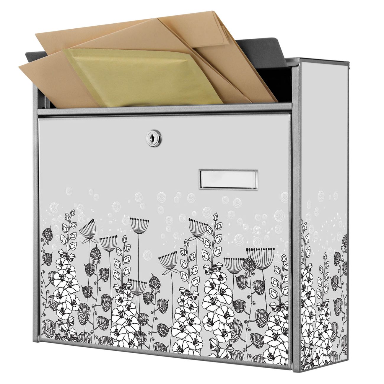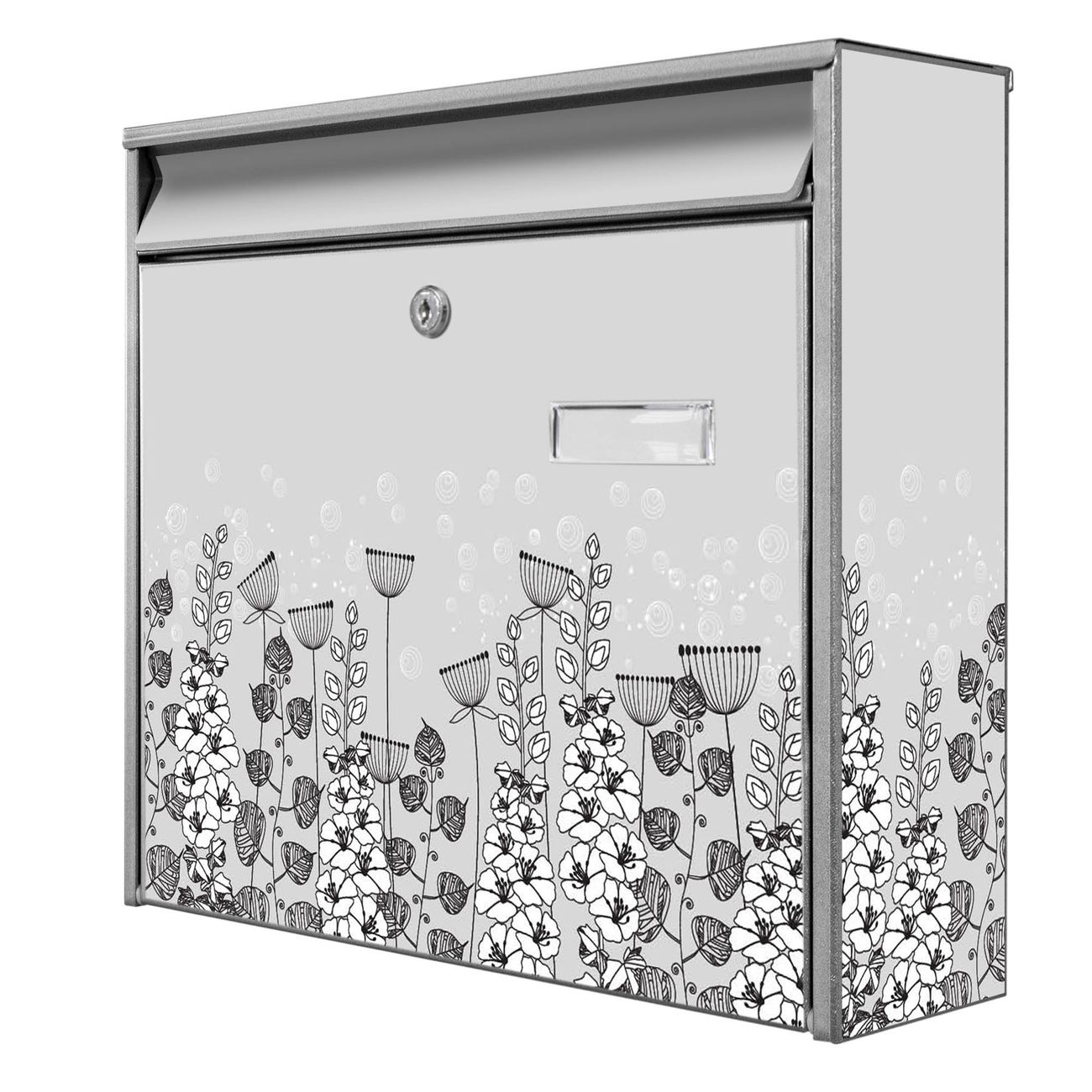 Der Burg Wächter Mail Briefkasten mit Motiv Wegesrand bietet Ihnen mit seinem Fassungsvermögen genügend Platz auch für große A4 Sendungen. Auf Wunsch können Sie bei uns den passenden Standfuß kaufen und so aus dem Wandbriefkasten einen Standbriefkasten machen. Wir bieten Ihnen ebenfalls Namensschilder, bereits beschriftet oder frei zu beschriften, und verschiedene selbst gestaltete Bitte-Keine-Werbung-Aufkleber.