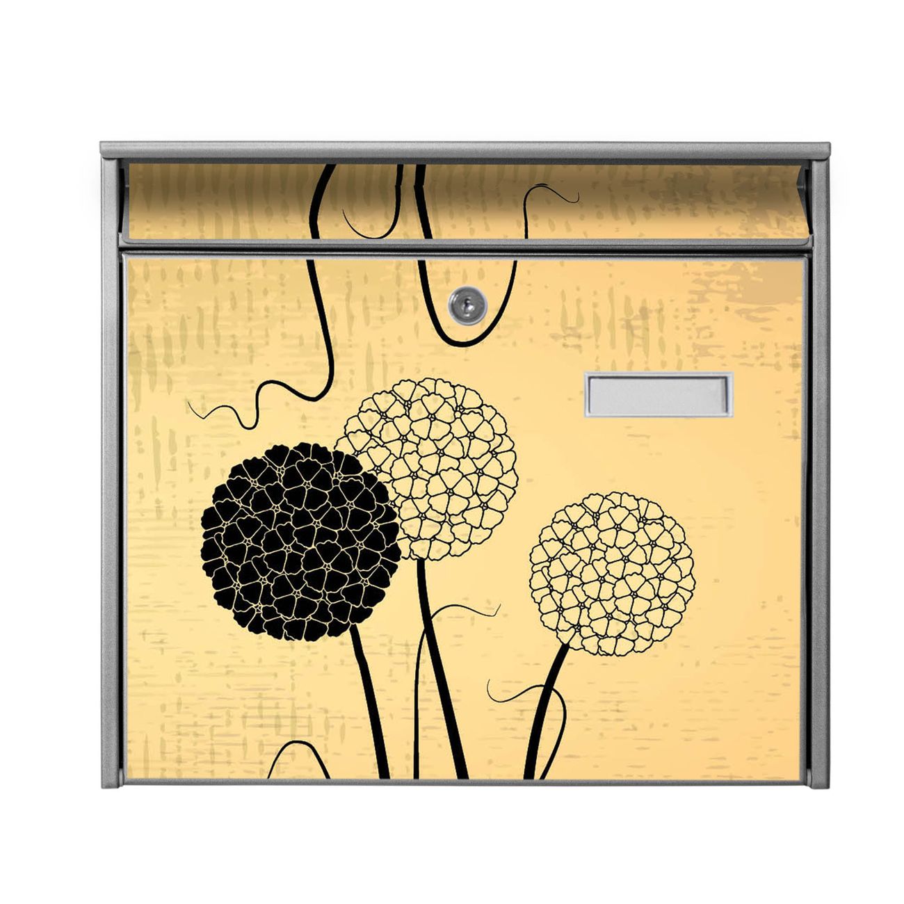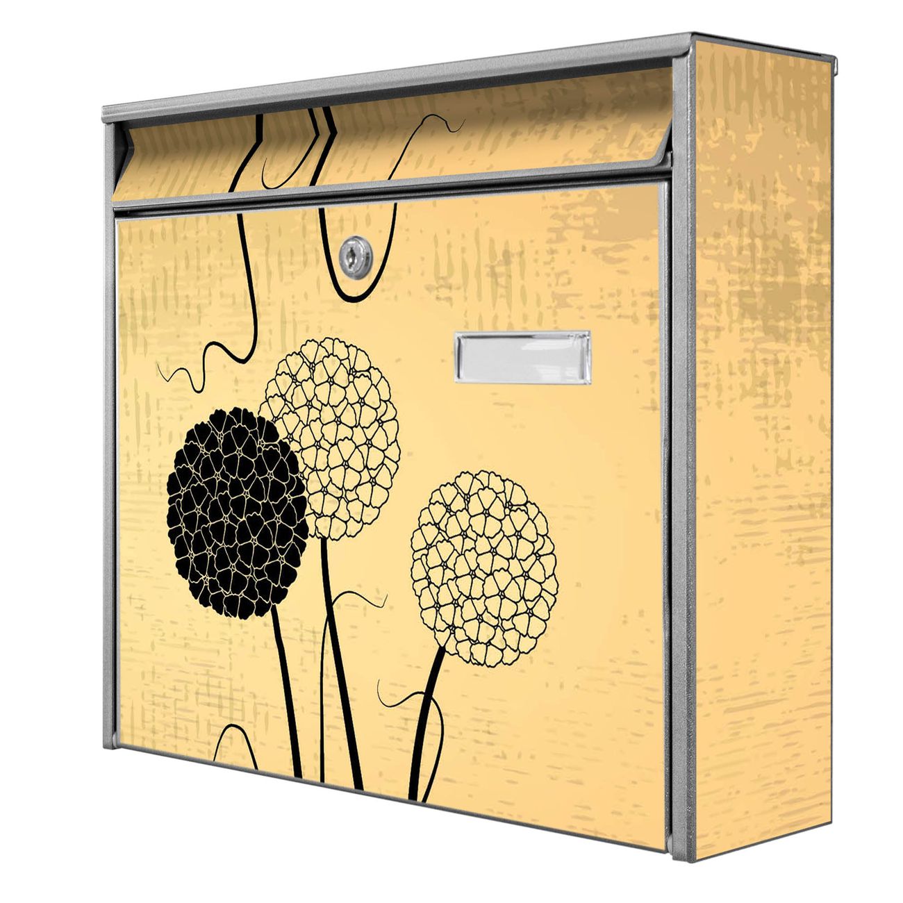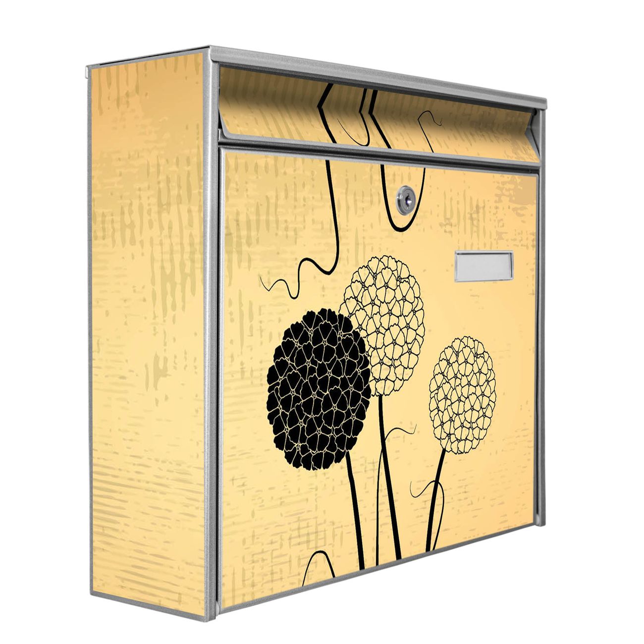 Der Burg Wächter Mail Briefkasten mit Motiv Zwiebel Vintage bietet Ihnen mit seinem Fassungsvermögen genügend Platz auch für große A4 Sendungen. Auf Wunsch können Sie bei uns den passenden Standfuß kaufen und so aus dem Wandbriefkasten einen Standbriefkasten machen. Wir bieten Ihnen ebenfalls Namensschilder, bereits beschriftet oder frei zu beschriften, und verschiedene selbst gestaltete Bitte-Keine-Werbung-Aufkleber.
