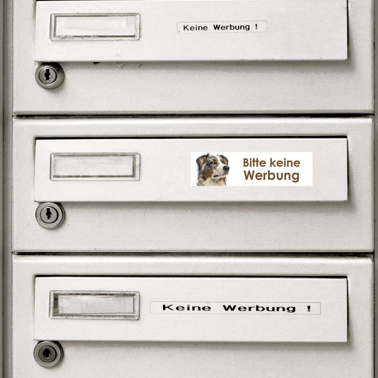 KEINE WERBUNG Aufkleber für Briefkästen Nummer SKW108 Sie haben ständig einen überfüllten Briefkasten und definitiv keine Lust mehr auf Werbung? Sie wollen einen lustigen und gleichzeitig einzigartigen Aufkleber für Ihren Briefkasten? Dann sind die Keine-Werbung-Aufkleber von banjado genau das Richtige für Sie. Geben Sie Ihre Nachricht an Ihren Zusteller vor Ort weiter und verpassen Sie ihm ein Lächeln mit auf den Weg. Mit unserem Keine-Werbung-Aufkleber setzten Sie definitiv ein Zeichen und stechen bei Ihren Nachbarn hervor. Bei der Herstellung achten wir auf höchste Qualität. Immerhin sollen Sie lange Freude an Ihrem Aufkleber haben. Deshalb arbeiten wir mit UV- und wetterbeständiger Dekorfolie, die zum Schutz noch einmal mit einem speziellen Schutzlaminat überzogen wird. So ist Ihr Aufkleber nicht nur vor dem Wetter, sondern auch vor Kratzern und anderen Beschädigungen geschützt. Der Aufkleber kann beim Reinigen mit handelsüblichen Reinigungsmitteln gerne ein wenig Wasser abbekommen. Das Anbringen an Ihrem Briefkasten ist ebenfalls sehr einfach: Oberfläche des Briefkastens reinigen, einfach abziehen und an eine gut sichtbare Stelle kleben. So erhalten Sie sicherlich keine unerwünschte Werbung mehr.