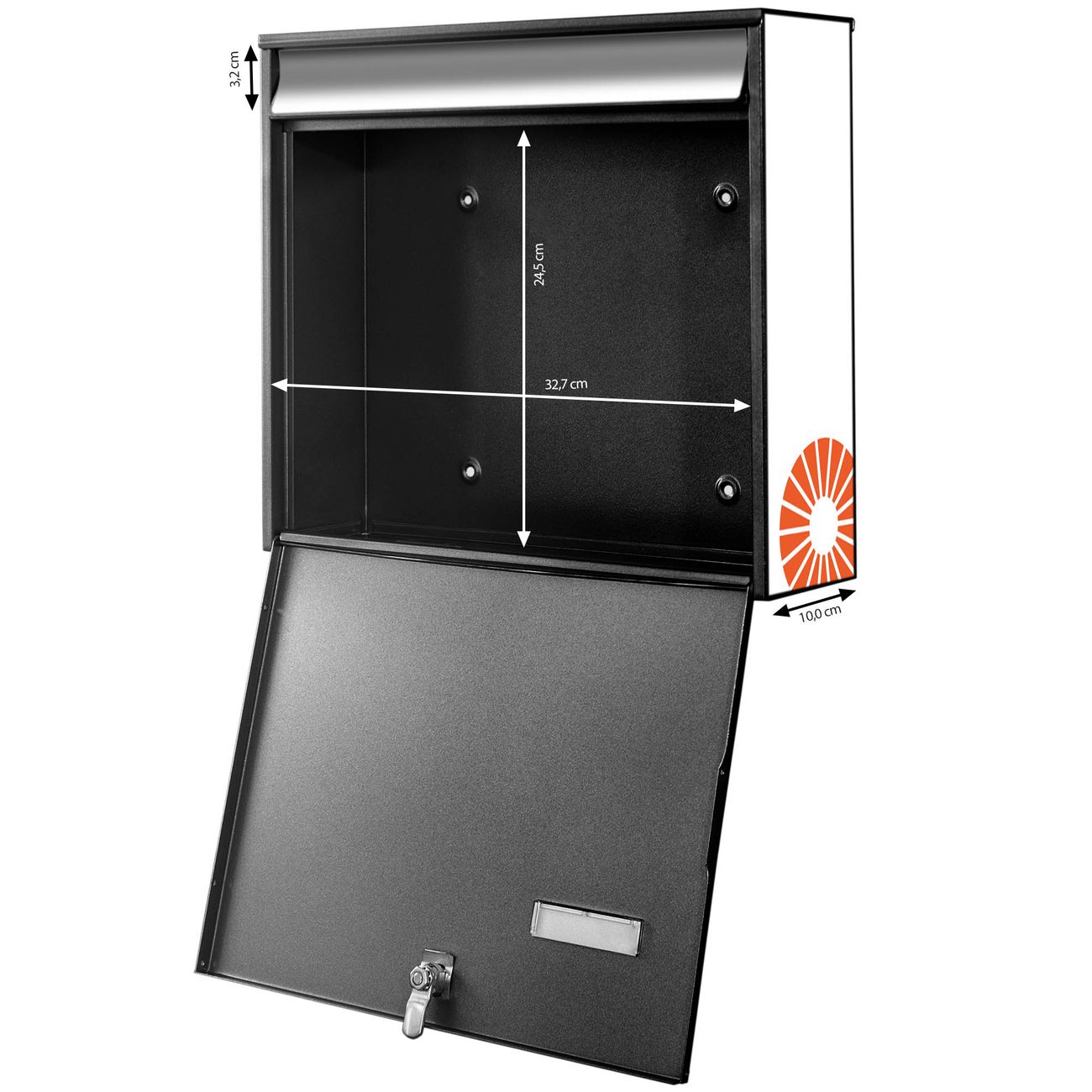 - je Briefschlitz: 34,5 x 3,8cm (B x H)
