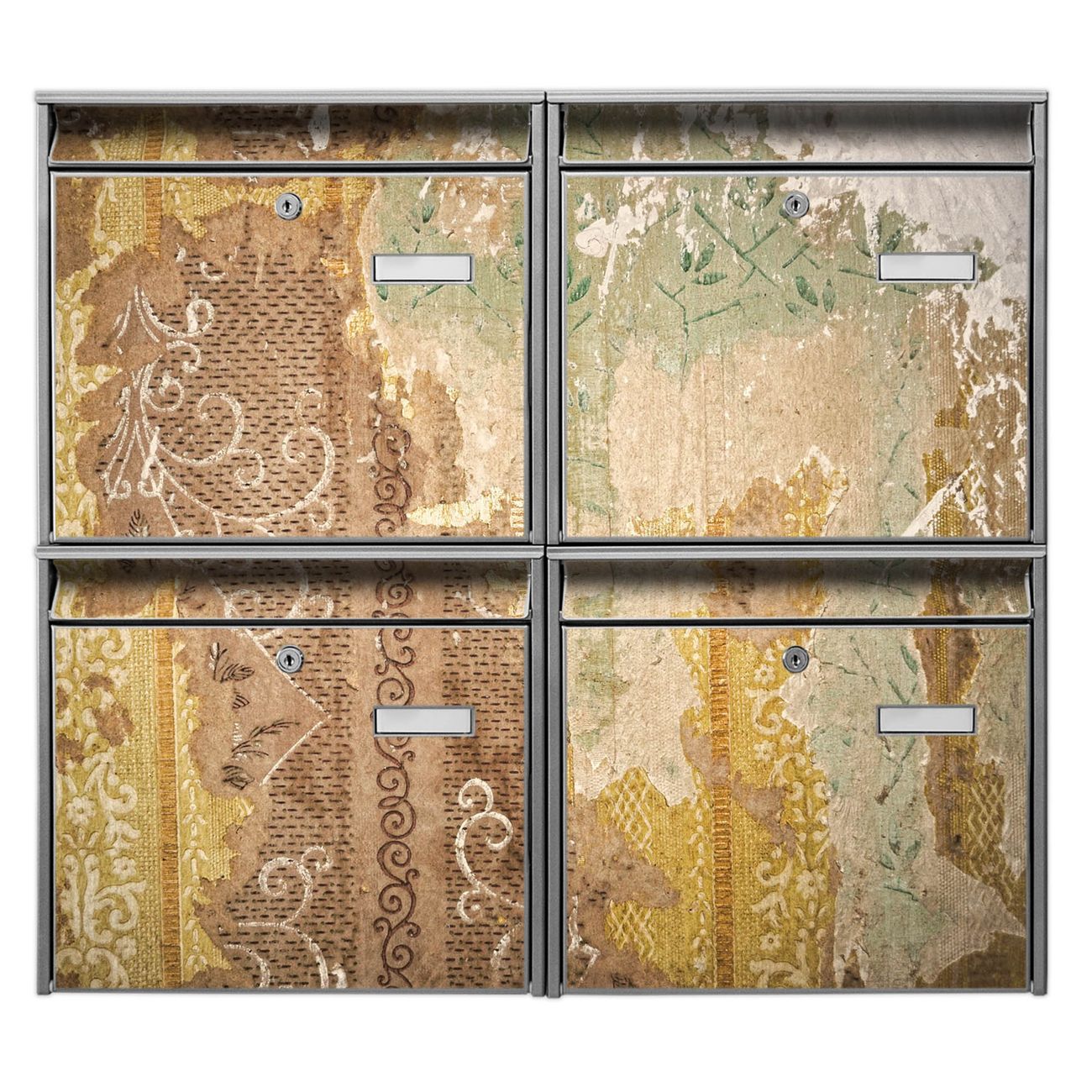 FUNKTION: Die Burg-Wächter Briefkastenanlage mit Motiv Alte Tapeten bietet Ihnen ausreichend Fassungsvermögen um auch A4 und C4 Sendungen zu empfangen. Das integrierte Namensschild lässt sich individuell beschriften. Wählen Sie aus den Grundfarben weiß, silber und schwarz. DESIGN: Die 4 Briefkästen haben ein ansprechendes und zeitloses Design, ohne dabei auf Funktionalität zu verzichten. Das Material ist sehr stabil, wetterfest und rostfrei. Durch das Motiv Alte Tapeten werden die Postkästen zu einem Blickfang. DETAILS: Die Postkästen bestehen aus verzinktem Stahl der zusätzlich mit Klarlack versiegelt wurde. Die Kästen sind gesamt 64,5cm hoch, 72,5cm breit und 10cm tief. Das Motiv besteht aus einer wetter- und UV-festen Folie, die Ihren Briefkasten zusätzlich vor Kratzern schützt. Die Postkästen werden mit Montagematerial, je einem Namensschild und je zwei Schlüsseln geliefert. NUTZEN: Das Briefkastenset eignet sich für die Wandmontage, die Größe bietet genügend Platz für Sendungen aller Art. Das zeitlose Design sowie die stabile Bauart bieten Ihnen einen treuen Begleiter für Ihre Post. BANJADO: