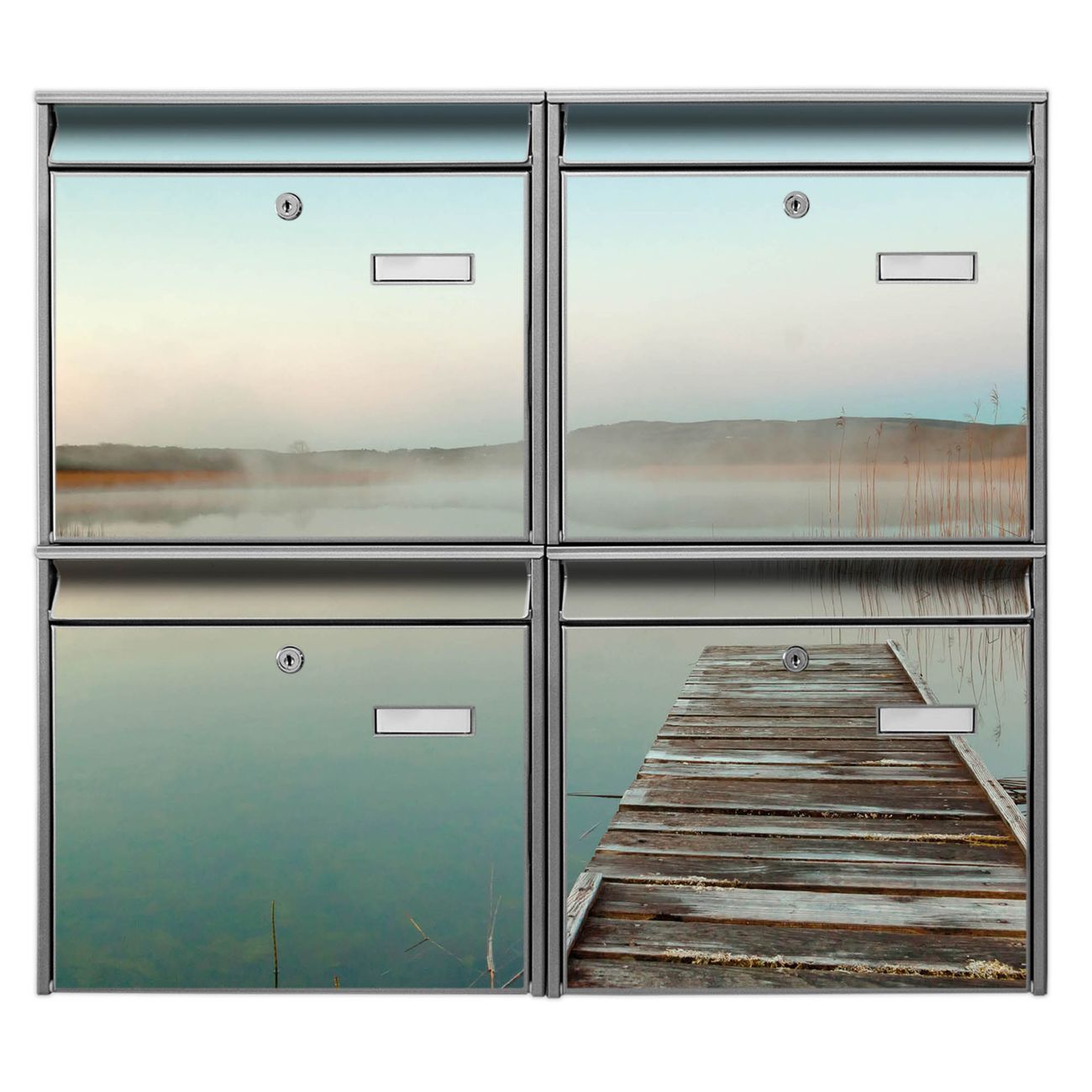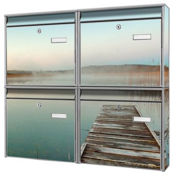 FUNKTION: Die Burg-Wächter Briefkastenanlage mit Motiv Alter Steg bietet Ihnen ausreichend Fassungsvermögen um auch A4 und C4 Sendungen zu empfangen. Das integrierte Namensschild lässt sich individuell beschriften. Wählen Sie aus den Grundfarben weiß, silber und schwarz. DESIGN: Die 4 Briefkästen haben ein ansprechendes und zeitloses Design, ohne dabei auf Funktionalität zu verzichten. Das Material ist sehr stabil, wetterfest und rostfrei. Durch das Motiv Alter Steg werden die Postkästen zu einem Blickfang. DETAILS: Die Postkästen bestehen aus verzinktem Stahl der zusätzlich mit Klarlack versiegelt wurde. Die Kästen sind gesamt 64,5cm hoch, 72,5cm breit und 10cm tief. Das Motiv besteht aus einer wetter- und UV-festen Folie, die Ihren Briefkasten zusätzlich vor Kratzern schützt. Die Postkästen werden mit Montagematerial, je einem Namensschild und je zwei Schlüsseln geliefert. NUTZEN: Das Briefkastenset eignet sich für die Wandmontage, die Größe bietet genügend Platz für Sendungen aller Art. Das zeitlose Design sowie die stabile Bauart bieten Ihnen einen treuen Begleiter für Ihre Post. BANJADO: