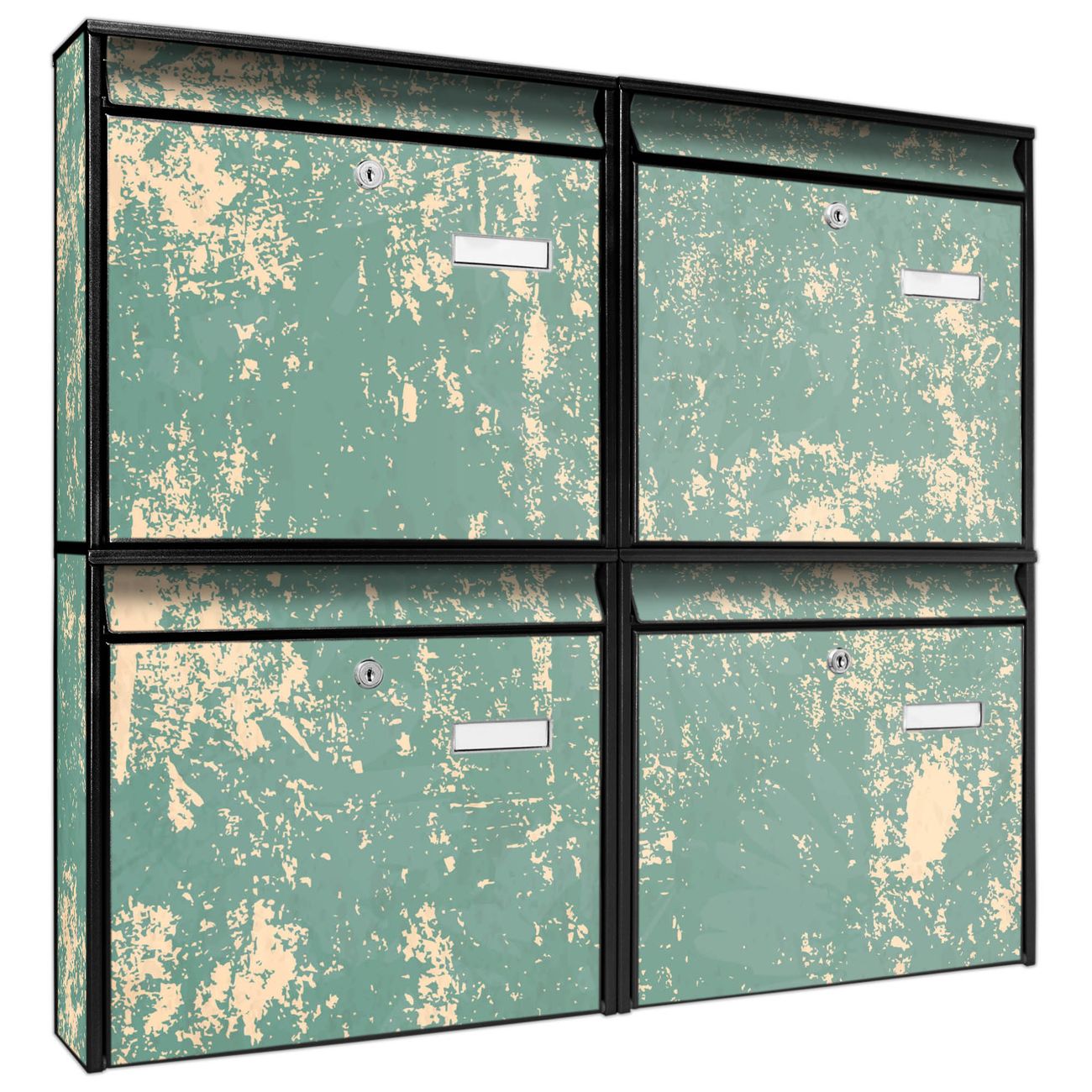 FUNKTION: Die Burg-Wächter Briefkastenanlage mit Motiv Altes Papier bietet Ihnen ausreichend Fassungsvermögen um auch A4 und C4 Sendungen zu empfangen. Das integrierte Namensschild lässt sich individuell beschriften. Wählen Sie aus den Grundfarben weiß, silber und schwarz. DESIGN: Die 4 Briefkästen haben ein ansprechendes und zeitloses Design, ohne dabei auf Funktionalität zu verzichten. Das Material ist sehr stabil, wetterfest und rostfrei. Durch das Motiv Altes Papier werden die Postkästen zu einem Blickfang. DETAILS: Die Postkästen bestehen aus verzinktem Stahl der zusätzlich mit Klarlack versiegelt wurde. Die Kästen sind gesamt 64,5cm hoch, 72,5cm breit und 10cm tief. Das Motiv besteht aus einer wetter- und UV-festen Folie, die Ihren Briefkasten zusätzlich vor Kratzern schützt. Die Postkästen werden mit Montagematerial, je einem Namensschild und je zwei Schlüsseln geliefert. NUTZEN: Das Briefkastenset eignet sich für die Wandmontage, die Größe bietet genügend Platz für Sendungen aller Art. Das zeitlose Design sowie die stabile Bauart bieten Ihnen einen treuen Begleiter für Ihre Post. BANJADO: