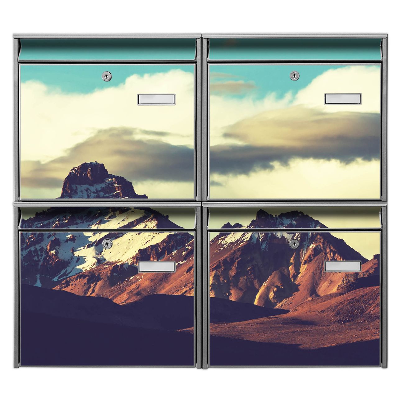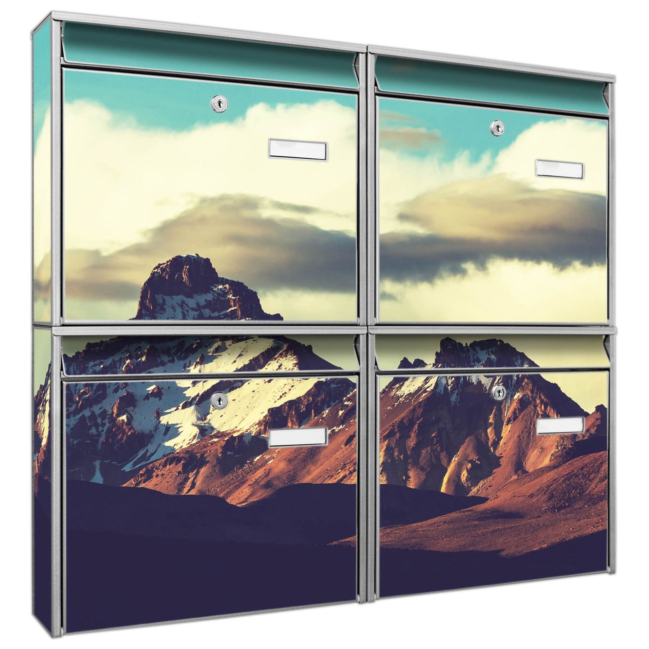 FUNKTION: Die Burg-Wächter Briefkastenanlage mit Motiv Anden bietet Ihnen ausreichend Fassungsvermögen um auch A4 und C4 Sendungen zu empfangen. Das integrierte Namensschild lässt sich individuell beschriften. Wählen Sie aus den Grundfarben weiß, silber und schwarz. DESIGN: Die 4 Briefkästen haben ein ansprechendes und zeitloses Design, ohne dabei auf Funktionalität zu verzichten. Das Material ist sehr stabil, wetterfest und rostfrei. Durch das Motiv Anden werden die Postkästen zu einem Blickfang. DETAILS: Die Postkästen bestehen aus verzinktem Stahl der zusätzlich mit Klarlack versiegelt wurde. Die Kästen sind gesamt 64,5cm hoch, 72,5cm breit und 10cm tief. Das Motiv besteht aus einer wetter- und UV-festen Folie, die Ihren Briefkasten zusätzlich vor Kratzern schützt. Die Postkästen werden mit Montagematerial, je einem Namensschild und je zwei Schlüsseln geliefert. NUTZEN: Das Briefkastenset eignet sich für die Wandmontage, die Größe bietet genügend Platz für Sendungen aller Art. Das zeitlose Design sowie die stabile Bauart bieten Ihnen einen treuen Begleiter für Ihre Post. BANJADO: