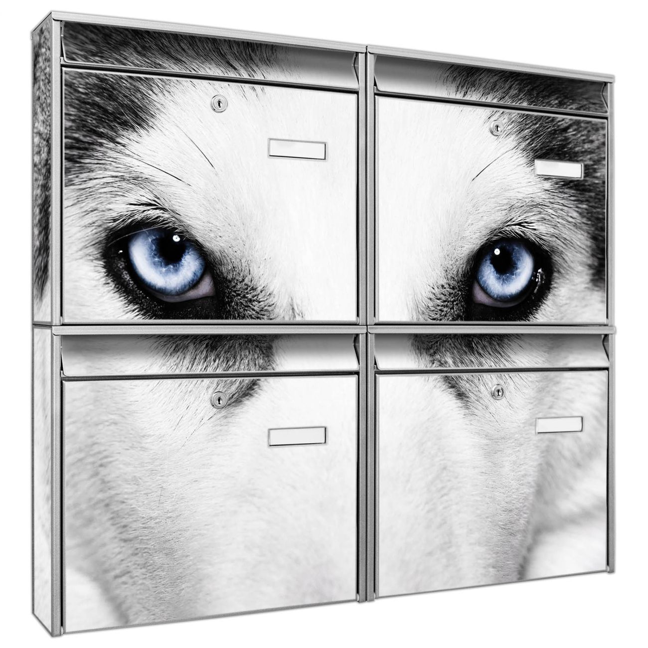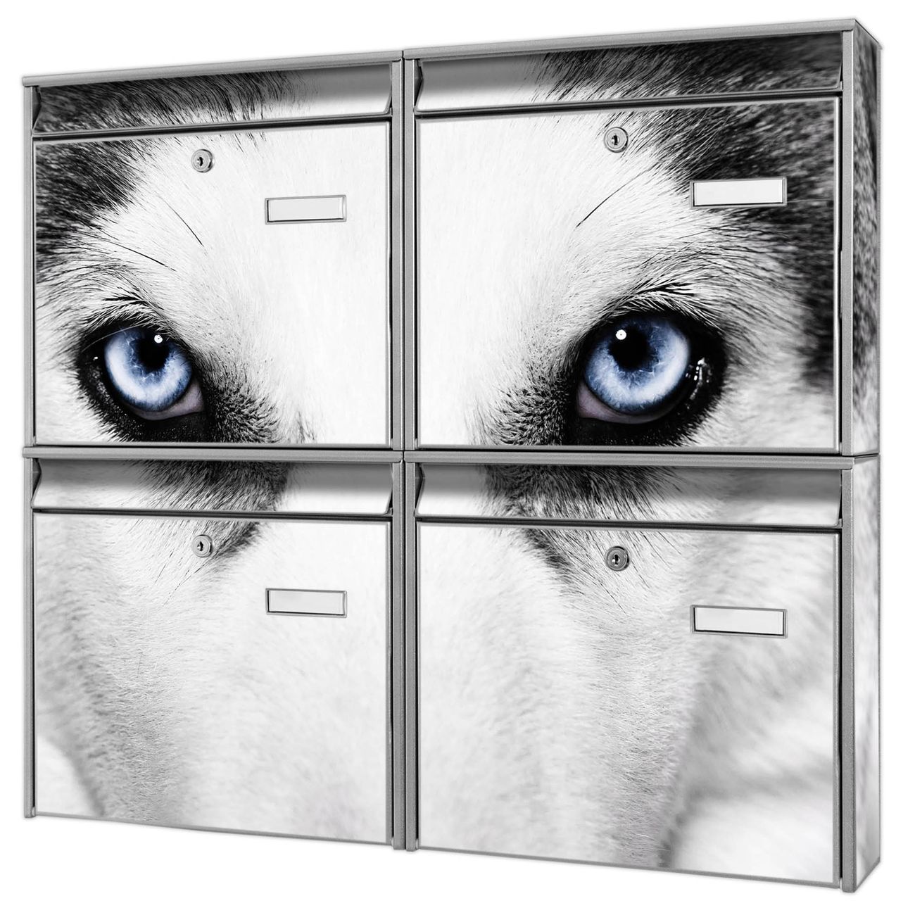 FUNKTION: Die Burg-Wächter Briefkastenanlage mit Motiv Anouk bietet Ihnen ausreichend Fassungsvermögen um auch A4 und C4 Sendungen zu empfangen. Das integrierte Namensschild lässt sich individuell beschriften. Wählen Sie aus den Grundfarben weiß, silber und schwarz. DESIGN: Die 4 Briefkästen haben ein ansprechendes und zeitloses Design, ohne dabei auf Funktionalität zu verzichten. Das Material ist sehr stabil, wetterfest und rostfrei. Durch das Motiv Anouk werden die Postkästen zu einem Blickfang. DETAILS: Die Postkästen bestehen aus verzinktem Stahl der zusätzlich mit Klarlack versiegelt wurde. Die Kästen sind gesamt 64,5cm hoch, 72,5cm breit und 10cm tief. Das Motiv besteht aus einer wetter- und UV-festen Folie, die Ihren Briefkasten zusätzlich vor Kratzern schützt. Die Postkästen werden mit Montagematerial, je einem Namensschild und je zwei Schlüsseln geliefert. NUTZEN: Das Briefkastenset eignet sich für die Wandmontage, die Größe bietet genügend Platz für Sendungen aller Art. Das zeitlose Design sowie die stabile Bauart bieten Ihnen einen treuen Begleiter für Ihre Post. BANJADO: