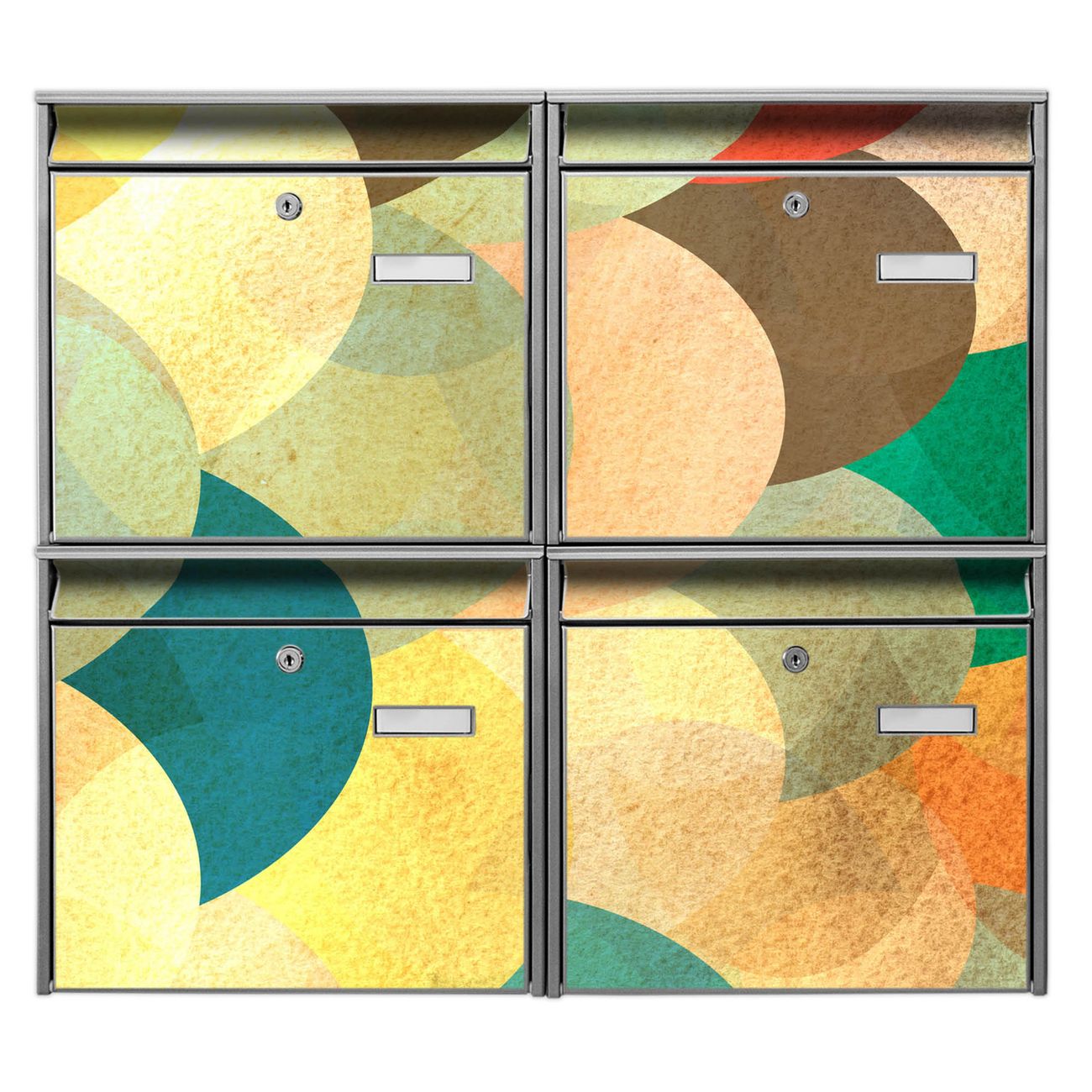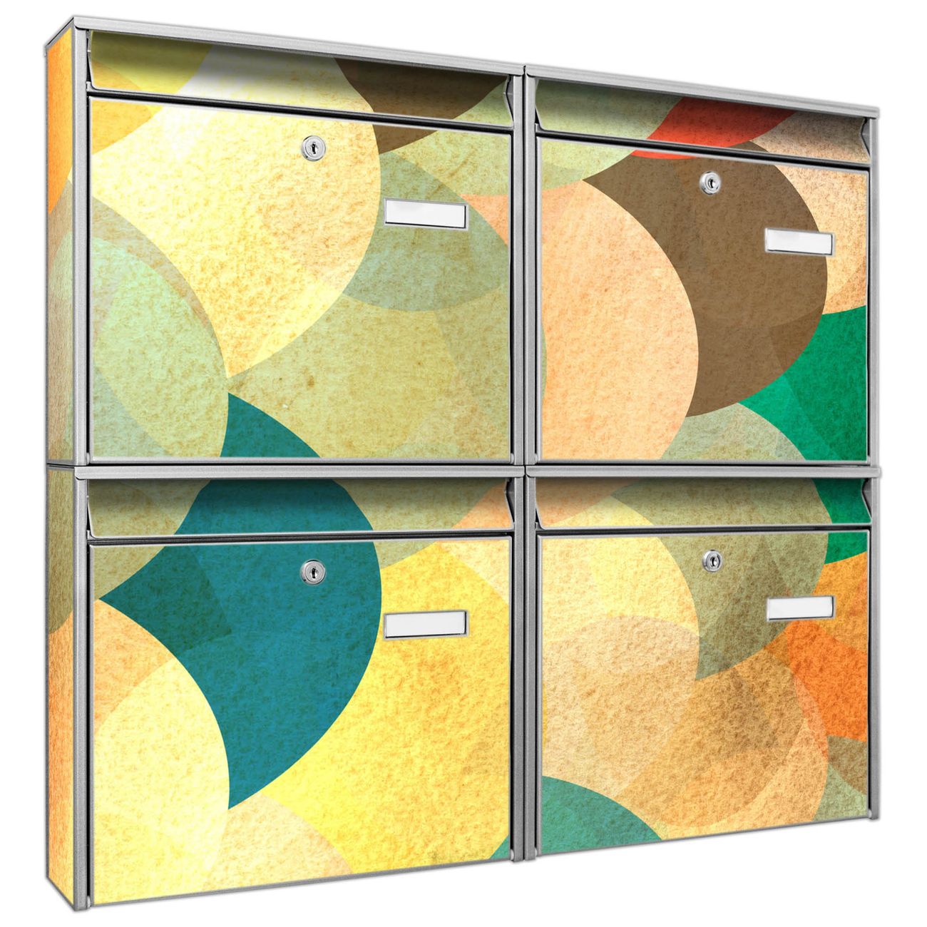 FUNKTION: Die Burg-Wächter Briefkastenanlage mit Motiv Aquarell Schuppen bietet Ihnen ausreichend Fassungsvermögen um auch A4 und C4 Sendungen zu empfangen. Das integrierte Namensschild lässt sich individuell beschriften. Wählen Sie aus den Grundfarben weiß, silber und schwarz. DESIGN: Die 4 Briefkästen haben ein ansprechendes und zeitloses Design, ohne dabei auf Funktionalität zu verzichten. Das Material ist sehr stabil, wetterfest und rostfrei. Durch das Motiv Aquarell Schuppen werden die Postkästen zu einem Blickfang. DETAILS: Die Postkästen bestehen aus verzinktem Stahl der zusätzlich mit Klarlack versiegelt wurde. Die Kästen sind gesamt 64,5cm hoch, 72,5cm breit und 10cm tief. Das Motiv besteht aus einer wetter- und UV-festen Folie, die Ihren Briefkasten zusätzlich vor Kratzern schützt. Die Postkästen werden mit Montagematerial, je einem Namensschild und je zwei Schlüsseln geliefert. NUTZEN: Das Briefkastenset eignet sich für die Wandmontage, die Größe bietet genügend Platz für Sendungen aller Art. Das zeitlose Design sowie die stabile Bauart bieten Ihnen einen treuen Begleiter für Ihre Post. BANJADO: