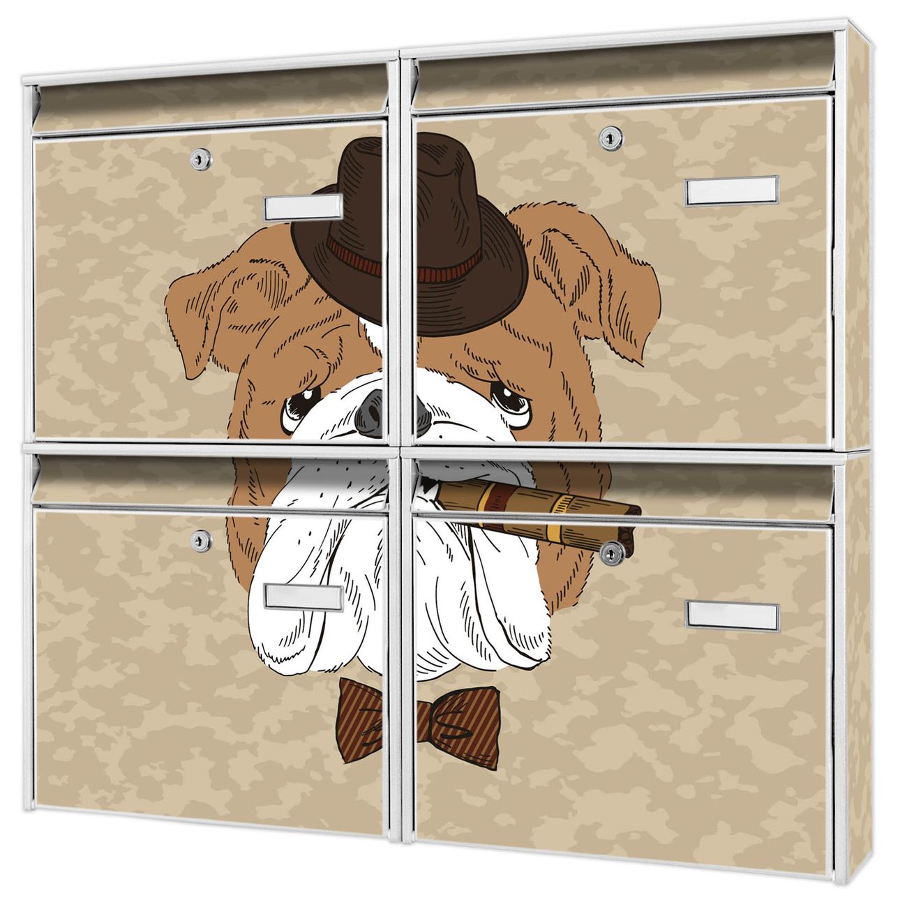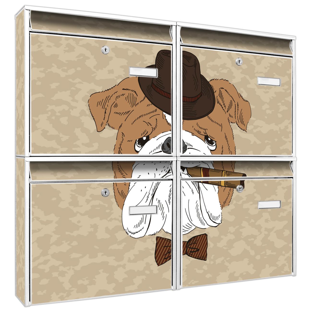 FUNKTION: Die Burg-Wächter Briefkastenanlage mit Motiv Big Daddy bietet Ihnen ausreichend Fassungsvermögen um auch A4 und C4 Sendungen zu empfangen. Das integrierte Namensschild lässt sich individuell beschriften. Wählen Sie aus den Grundfarben weiß, silber und schwarz. DESIGN: Die 4 Briefkästen haben ein ansprechendes und zeitloses Design, ohne dabei auf Funktionalität zu verzichten. Das Material ist sehr stabil, wetterfest und rostfrei. Durch das Motiv Big Daddy werden die Postkästen zu einem Blickfang. DETAILS: Die Postkästen bestehen aus verzinktem Stahl der zusätzlich mit Klarlack versiegelt wurde. Die Kästen sind gesamt 64,5cm hoch, 72,5cm breit und 10cm tief. Das Motiv besteht aus einer wetter- und UV-festen Folie, die Ihren Briefkasten zusätzlich vor Kratzern schützt. Die Postkästen werden mit Montagematerial, je einem Namensschild und je zwei Schlüsseln geliefert. NUTZEN: Das Briefkastenset eignet sich für die Wandmontage, die Größe bietet genügend Platz für Sendungen aller Art. Das zeitlose Design sowie die stabile Bauart bieten Ihnen einen treuen Begleiter für Ihre Post. BANJADO: