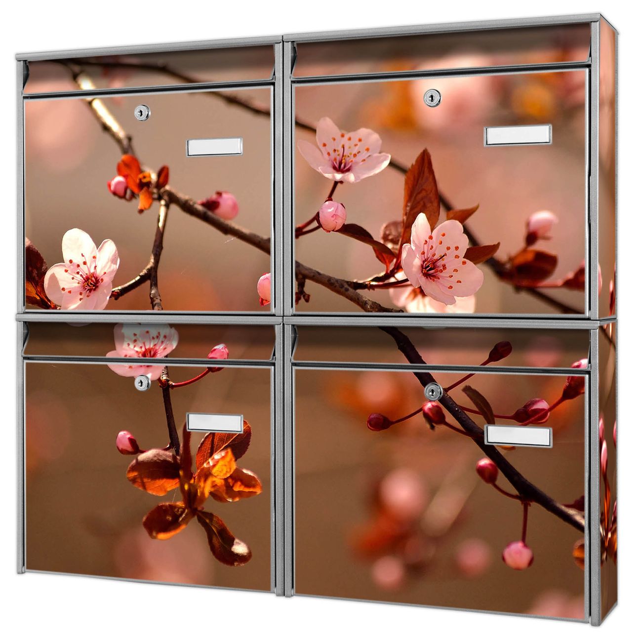 Briefkastenanlage Blühender Kirschzweig