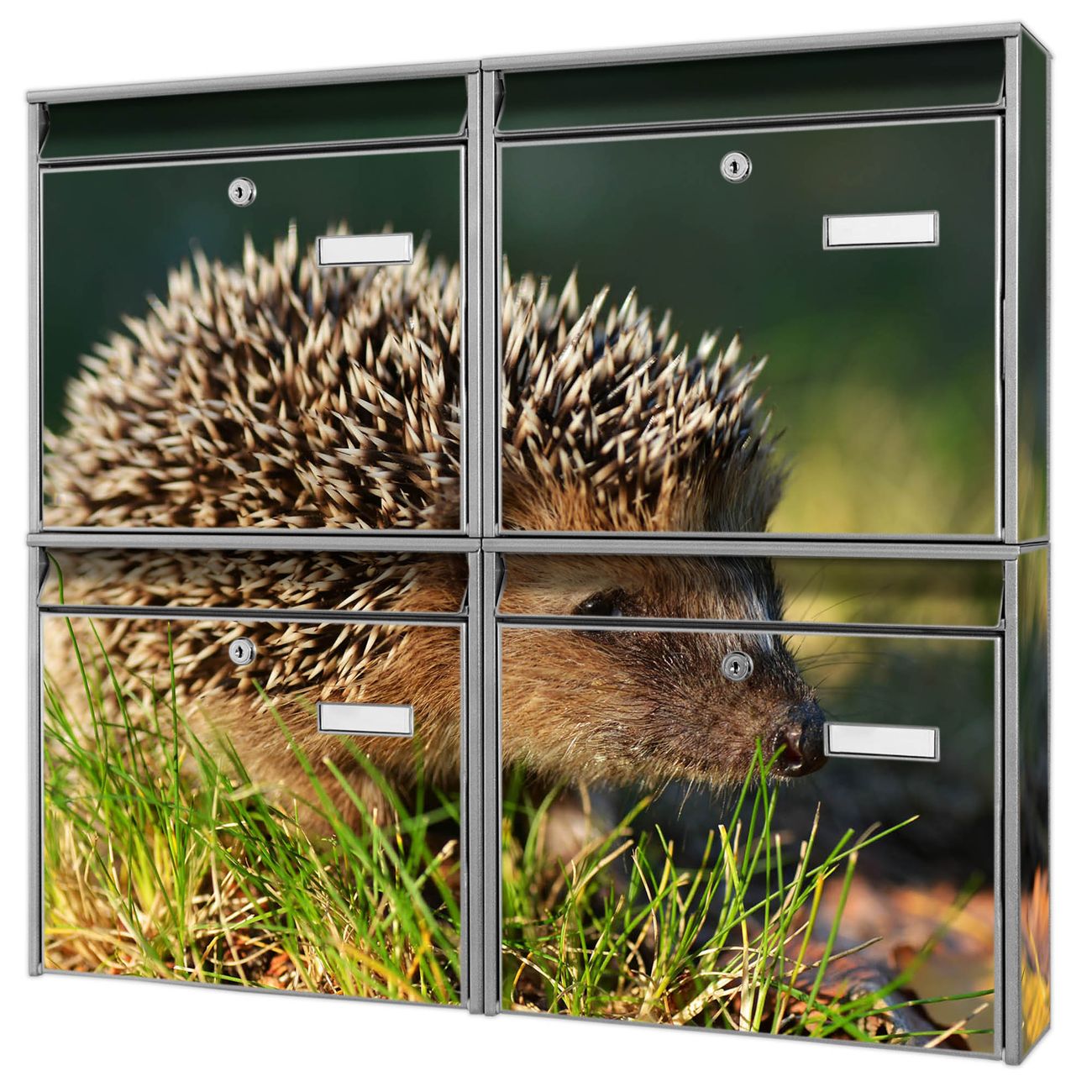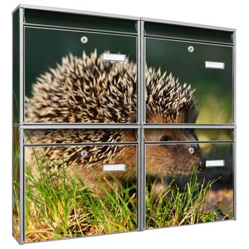 FUNKTION: Die Burg-Wächter Briefkastenanlage mit Motiv Bruno bietet Ihnen ausreichend Fassungsvermögen um auch A4 und C4 Sendungen zu empfangen. Das integrierte Namensschild lässt sich individuell beschriften. Wählen Sie aus den Grundfarben weiß, silber und schwarz. DESIGN: Die 4 Briefkästen haben ein ansprechendes und zeitloses Design, ohne dabei auf Funktionalität zu verzichten. Das Material ist sehr stabil, wetterfest und rostfrei. Durch das Motiv Bruno werden die Postkästen zu einem Blickfang. DETAILS: Die Postkästen bestehen aus verzinktem Stahl der zusätzlich mit Klarlack versiegelt wurde. Die Kästen sind gesamt 64,5cm hoch, 72,5cm breit und 10cm tief. Das Motiv besteht aus einer wetter- und UV-festen Folie, die Ihren Briefkasten zusätzlich vor Kratzern schützt. Die Postkästen werden mit Montagematerial, je einem Namensschild und je zwei Schlüsseln geliefert. NUTZEN: Das Briefkastenset eignet sich für die Wandmontage, die Größe bietet genügend Platz für Sendungen aller Art. Das zeitlose Design sowie die stabile Bauart bieten Ihnen einen treuen Begleiter für Ihre Post. BANJADO: