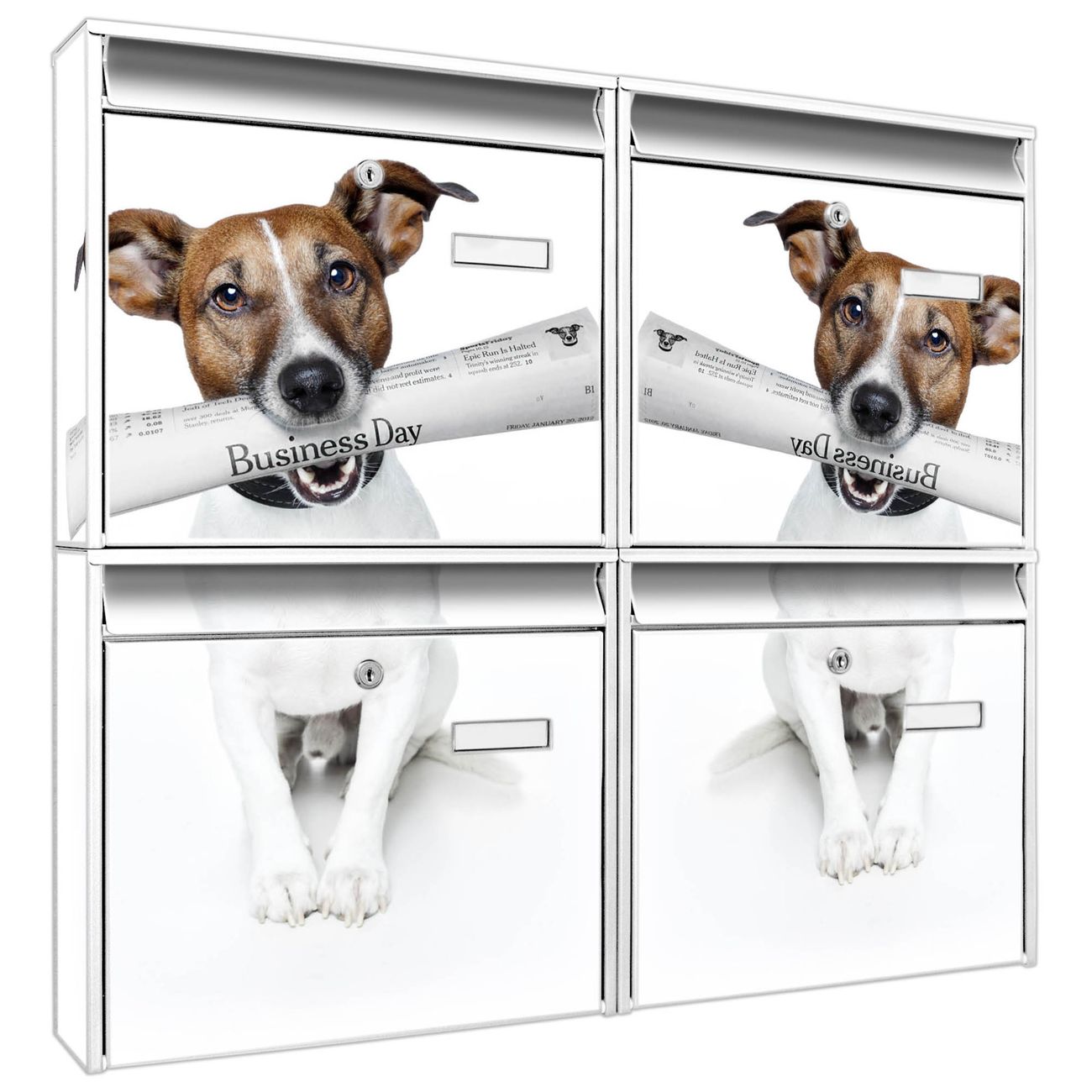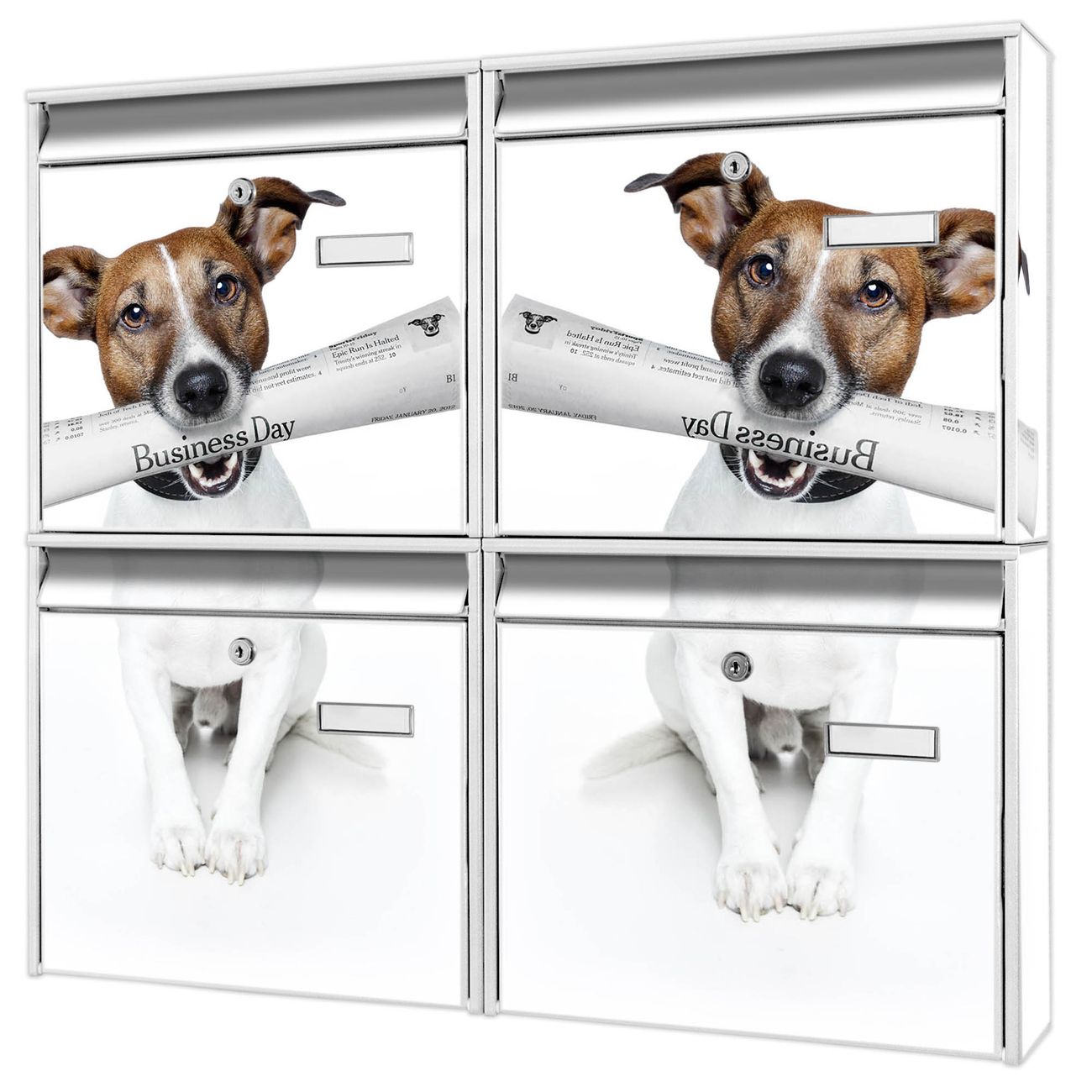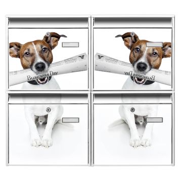 FUNKTION: Die Burg-Wächter Briefkastenanlage mit Motiv Business Day bietet Ihnen ausreichend Fassungsvermögen um auch A4 und C4 Sendungen zu empfangen. Das integrierte Namensschild lässt sich individuell beschriften. Wählen Sie aus den Grundfarben weiß, silber und schwarz. DESIGN: Die 4 Briefkästen haben ein ansprechendes und zeitloses Design, ohne dabei auf Funktionalität zu verzichten. Das Material ist sehr stabil, wetterfest und rostfrei. Durch das Motiv Business Day werden die Postkästen zu einem Blickfang. DETAILS: Die Postkästen bestehen aus verzinktem Stahl der zusätzlich mit Klarlack versiegelt wurde. Die Kästen sind gesamt 64,5cm hoch, 72,5cm breit und 10cm tief. Das Motiv besteht aus einer wetter- und UV-festen Folie, die Ihren Briefkasten zusätzlich vor Kratzern schützt. Die Postkästen werden mit Montagematerial, je einem Namensschild und je zwei Schlüsseln geliefert. NUTZEN: Das Briefkastenset eignet sich für die Wandmontage, die Größe bietet genügend Platz für Sendungen aller Art. Das zeitlose Design sowie die stabile Bauart bieten Ihnen einen treuen Begleiter für Ihre Post. BANJADO: