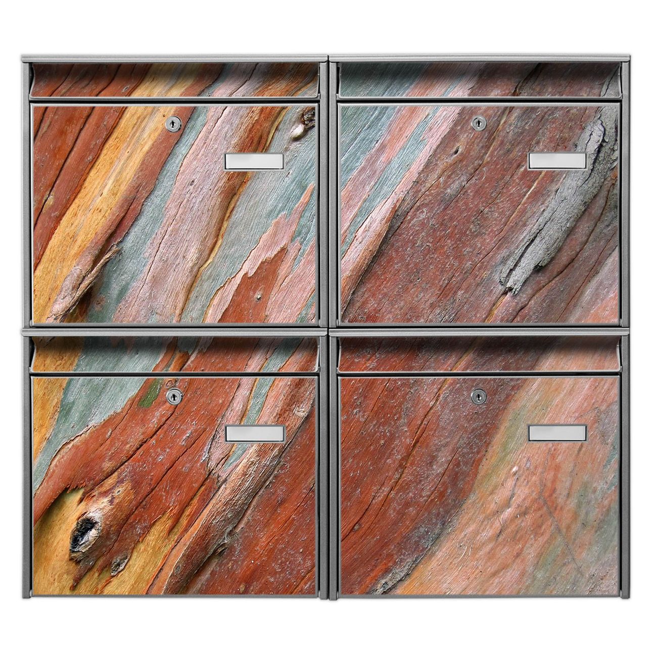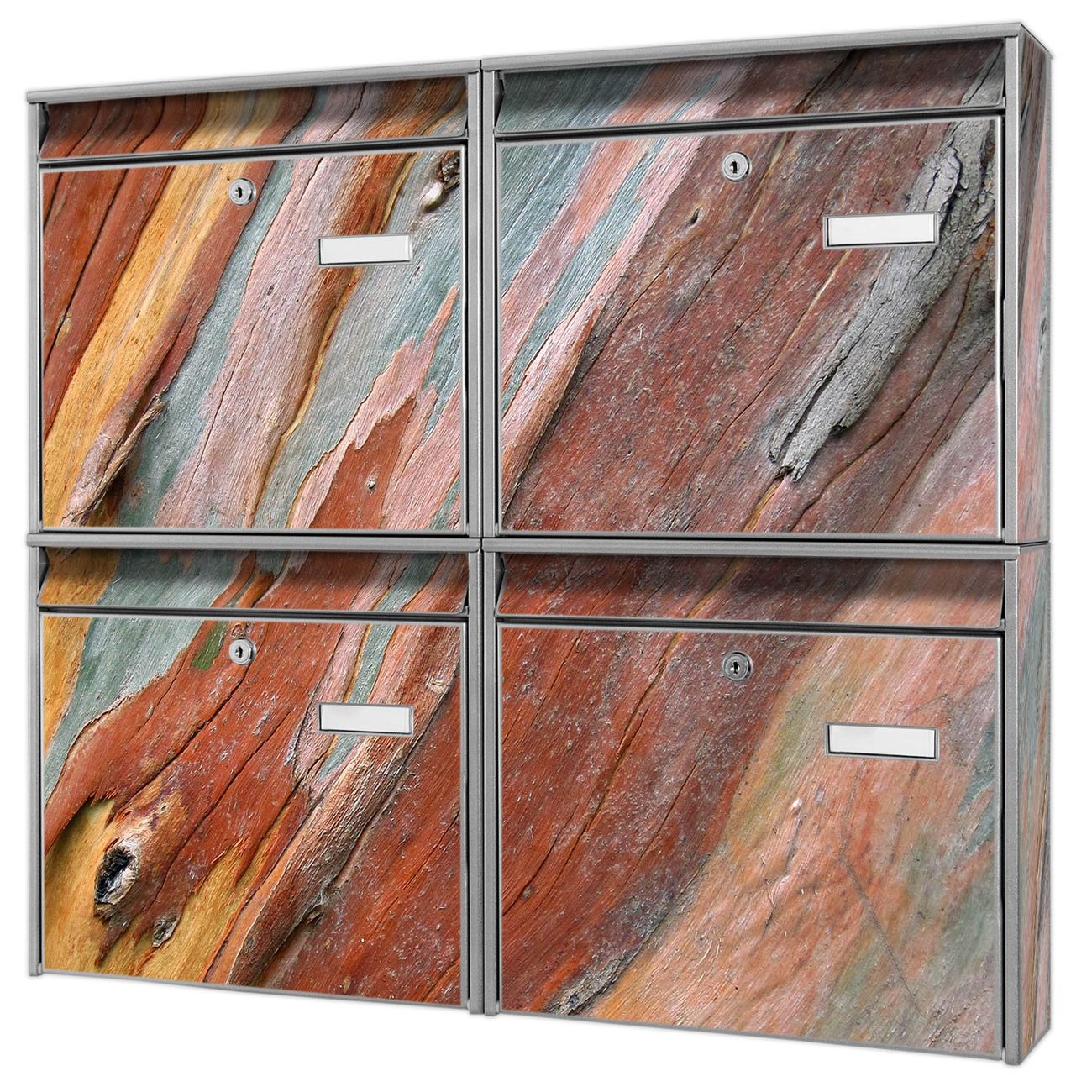 FUNKTION: Die Burg-Wächter Briefkastenanlage mit Motiv Coloured Wood bietet Ihnen ausreichend Fassungsvermögen um auch A4 und C4 Sendungen zu empfangen. Das integrierte Namensschild lässt sich individuell beschriften. Wählen Sie aus den Grundfarben weiß, silber und schwarz. DESIGN: Die 4 Briefkästen haben ein ansprechendes und zeitloses Design, ohne dabei auf Funktionalität zu verzichten. Das Material ist sehr stabil, wetterfest und rostfrei. Durch das Motiv Coloured Wood werden die Postkästen zu einem Blickfang. DETAILS: Die Postkästen bestehen aus verzinktem Stahl der zusätzlich mit Klarlack versiegelt wurde. Die Kästen sind gesamt 64,5cm hoch, 72,5cm breit und 10cm tief. Das Motiv besteht aus einer wetter- und UV-festen Folie, die Ihren Briefkasten zusätzlich vor Kratzern schützt. Die Postkästen werden mit Montagematerial, je einem Namensschild und je zwei Schlüsseln geliefert. NUTZEN: Das Briefkastenset eignet sich für die Wandmontage, die Größe bietet genügend Platz für Sendungen aller Art. Das zeitlose Design sowie die stabile Bauart bieten Ihnen einen treuen Begleiter für Ihre Post. BANJADO: