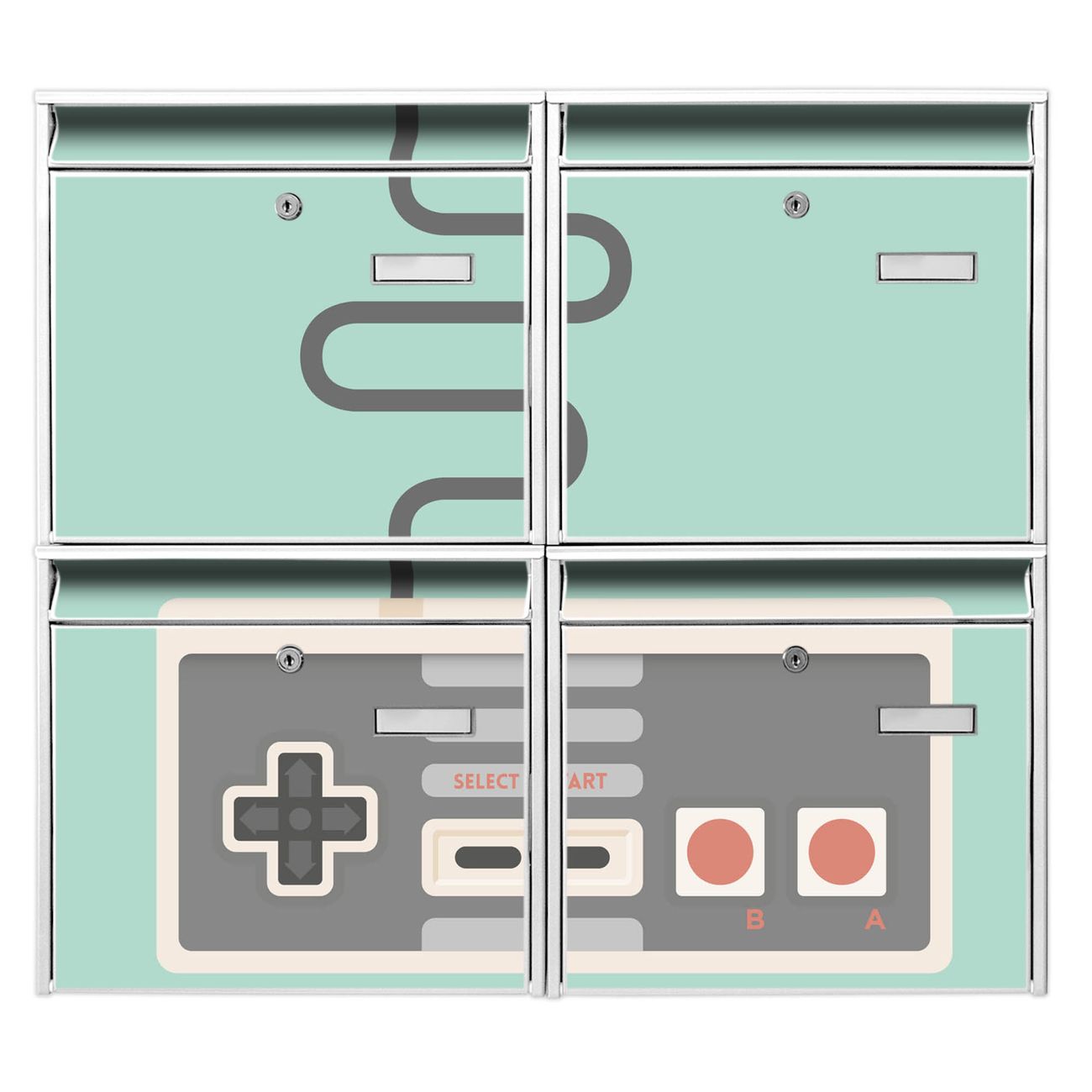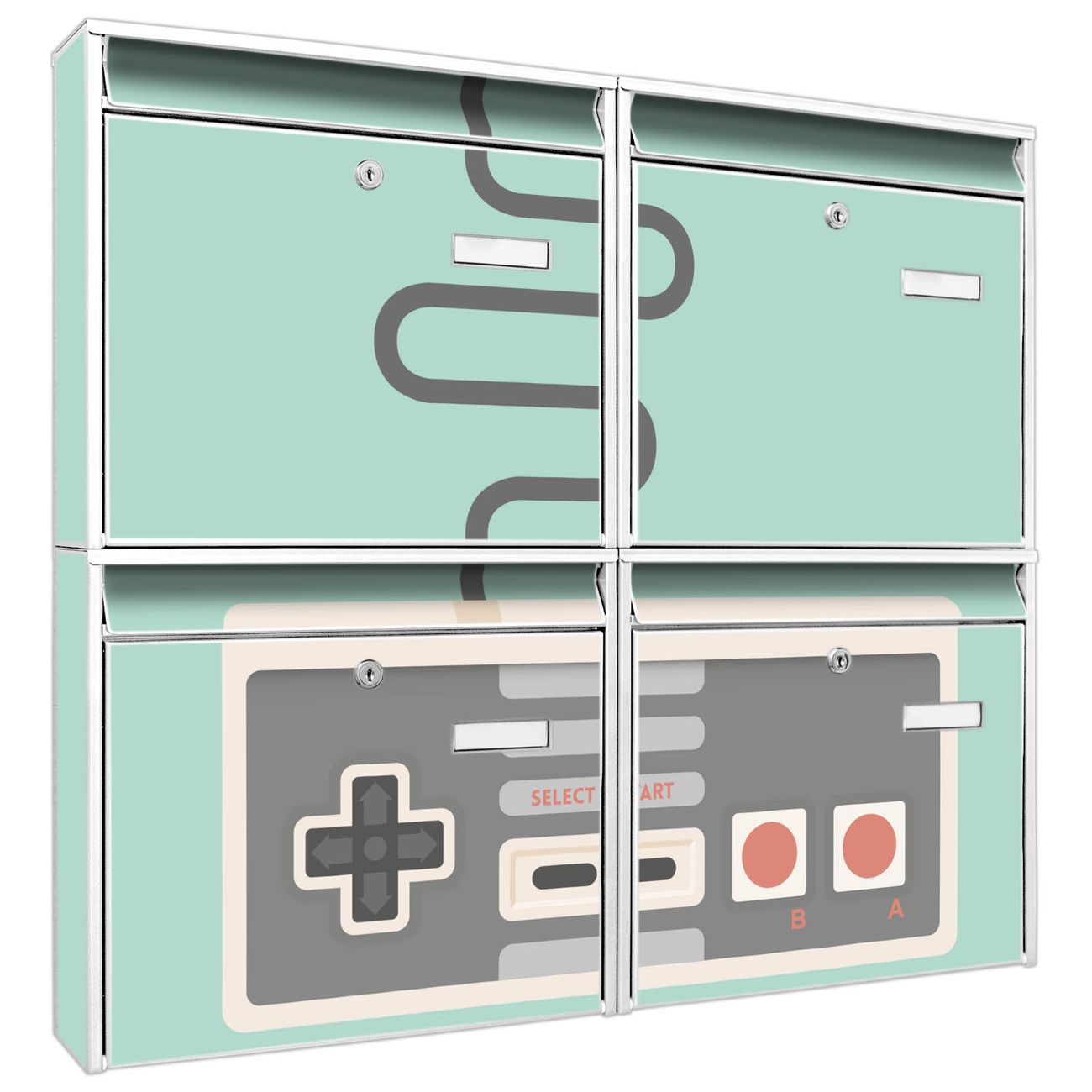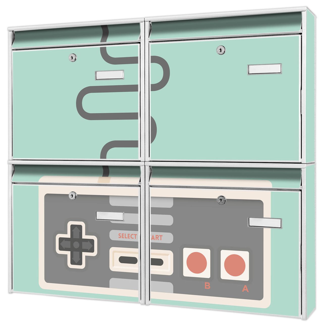 FUNKTION: Die Burg-Wächter Briefkastenanlage mit Motiv Control bietet Ihnen ausreichend Fassungsvermögen um auch A4 und C4 Sendungen zu empfangen. Das integrierte Namensschild lässt sich individuell beschriften. Wählen Sie aus den Grundfarben weiß, silber und schwarz. DESIGN: Die 4 Briefkästen haben ein ansprechendes und zeitloses Design, ohne dabei auf Funktionalität zu verzichten. Das Material ist sehr stabil, wetterfest und rostfrei. Durch das Motiv Control werden die Postkästen zu einem Blickfang. DETAILS: Die Postkästen bestehen aus verzinktem Stahl der zusätzlich mit Klarlack versiegelt wurde. Die Kästen sind gesamt 64,5cm hoch, 72,5cm breit und 10cm tief. Das Motiv besteht aus einer wetter- und UV-festen Folie, die Ihren Briefkasten zusätzlich vor Kratzern schützt. Die Postkästen werden mit Montagematerial, je einem Namensschild und je zwei Schlüsseln geliefert. NUTZEN: Das Briefkastenset eignet sich für die Wandmontage, die Größe bietet genügend Platz für Sendungen aller Art. Das zeitlose Design sowie die stabile Bauart bieten Ihnen einen treuen Begleiter für Ihre Post. BANJADO: