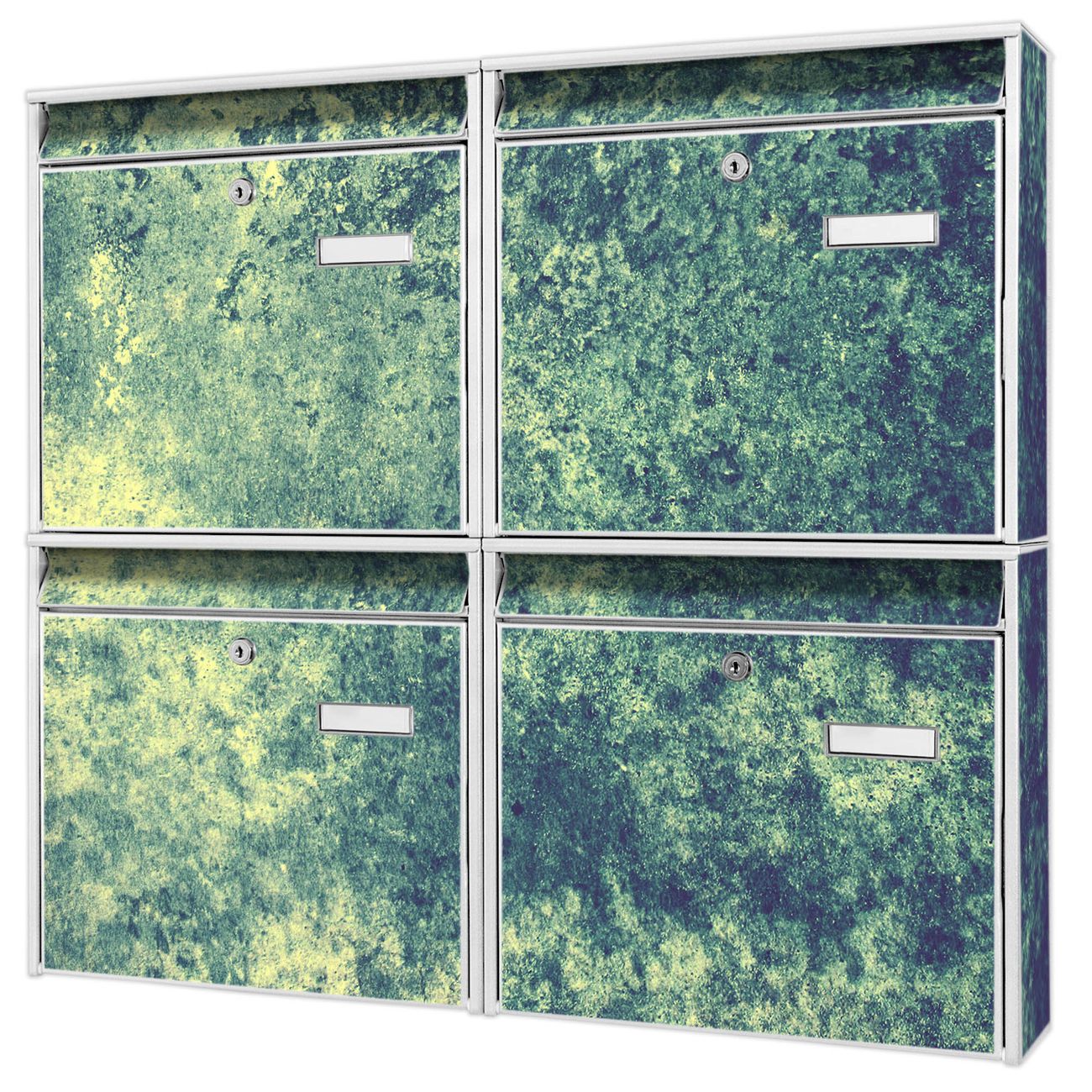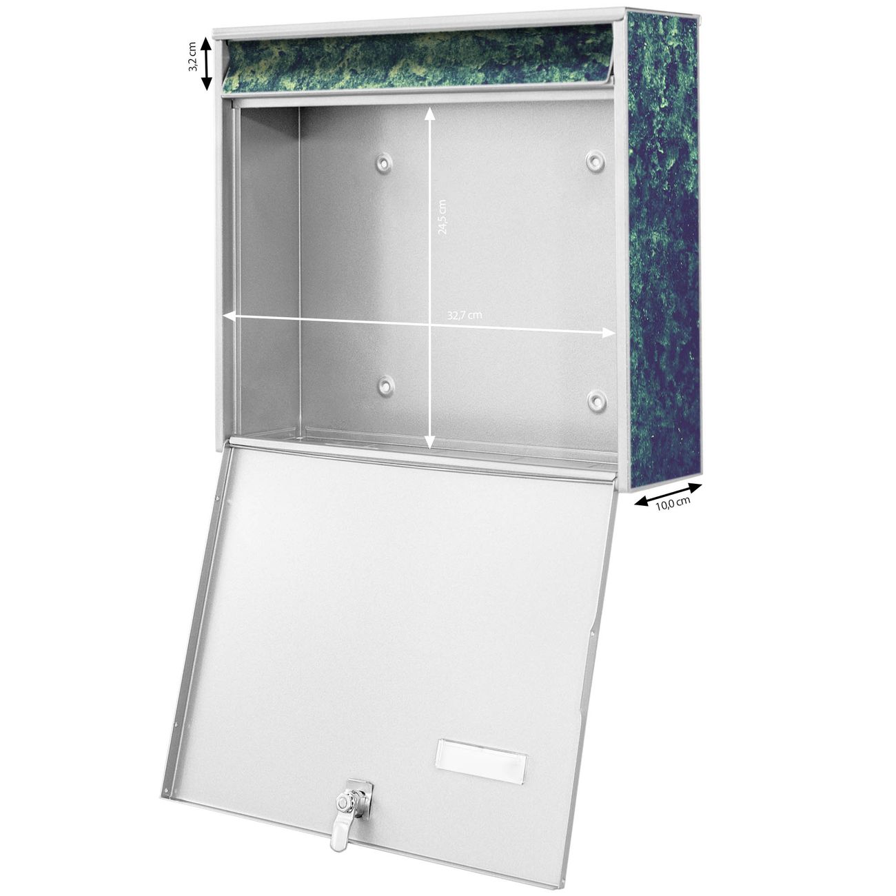 FUNKTION: Die Burg-Wächter Briefkastenanlage mit Motiv Farbuniversum bietet Ihnen ausreichend Fassungsvermögen um auch A4 und C4 Sendungen zu empfangen. Das integrierte Namensschild lässt sich individuell beschriften. Wählen Sie aus den Grundfarben weiß, silber und schwarz. DESIGN: Die 4 Briefkästen haben ein ansprechendes und zeitloses Design, ohne dabei auf Funktionalität zu verzichten. Das Material ist sehr stabil, wetterfest und rostfrei. Durch das Motiv Farbuniversum werden die Postkästen zu einem Blickfang. DETAILS: Die Postkästen bestehen aus verzinktem Stahl der zusätzlich mit Klarlack versiegelt wurde. Die Kästen sind gesamt 64,5cm hoch, 72,5cm breit und 10cm tief. Das Motiv besteht aus einer wetter- und UV-festen Folie, die Ihren Briefkasten zusätzlich vor Kratzern schützt. Die Postkästen werden mit Montagematerial, je einem Namensschild und je zwei Schlüsseln geliefert. NUTZEN: Das Briefkastenset eignet sich für die Wandmontage, die Größe bietet genügend Platz für Sendungen aller Art. Das zeitlose Design sowie die stabile Bauart bieten Ihnen einen treuen Begleiter für Ihre Post. BANJADO: