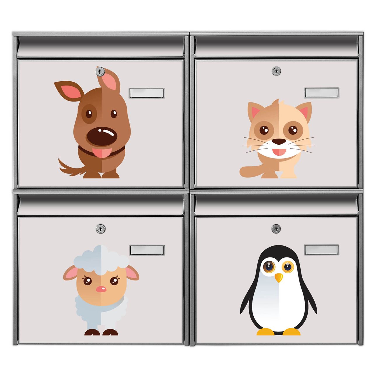 FUNKTION: Die Burg-Wächter Briefkastenanlage mit Motiv Freunde bietet Ihnen ausreichend Fassungsvermögen um auch A4 und C4 Sendungen zu empfangen. Das integrierte Namensschild lässt sich individuell beschriften. Wählen Sie aus den Grundfarben weiß, silber und schwarz. DESIGN: Die 4 Briefkästen haben ein ansprechendes und zeitloses Design, ohne dabei auf Funktionalität zu verzichten. Das Material ist sehr stabil, wetterfest und rostfrei. Durch das Motiv Freunde werden die Postkästen zu einem Blickfang. DETAILS: Die Postkästen bestehen aus verzinktem Stahl der zusätzlich mit Klarlack versiegelt wurde. Die Kästen sind gesamt 64,5cm hoch, 72,5cm breit und 10cm tief. Das Motiv besteht aus einer wetter- und UV-festen Folie, die Ihren Briefkasten zusätzlich vor Kratzern schützt. Die Postkästen werden mit Montagematerial, je einem Namensschild und je zwei Schlüsseln geliefert. NUTZEN: Das Briefkastenset eignet sich für die Wandmontage, die Größe bietet genügend Platz für Sendungen aller Art. Das zeitlose Design sowie die stabile Bauart bieten Ihnen einen treuen Begleiter für Ihre Post. BANJADO: