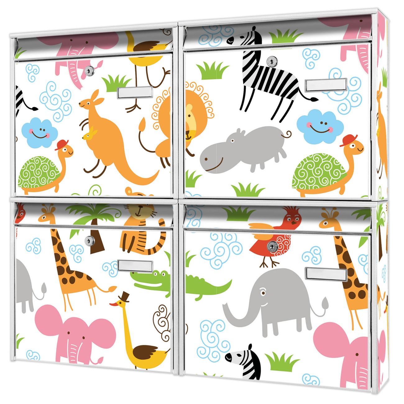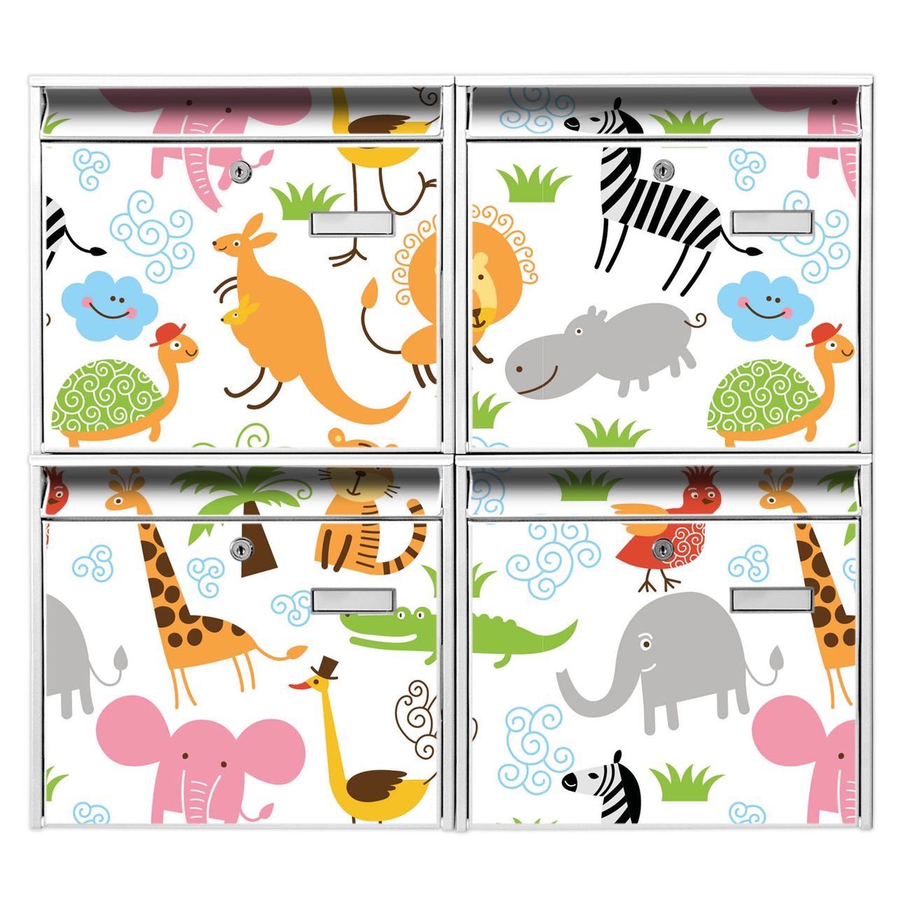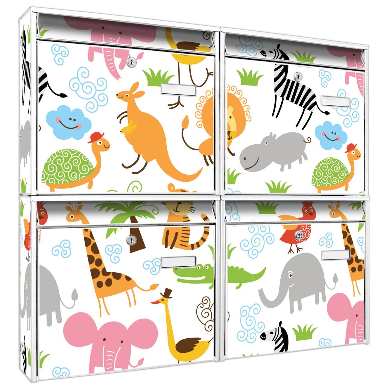 Briefkastenanlage Fröhliche Tiere