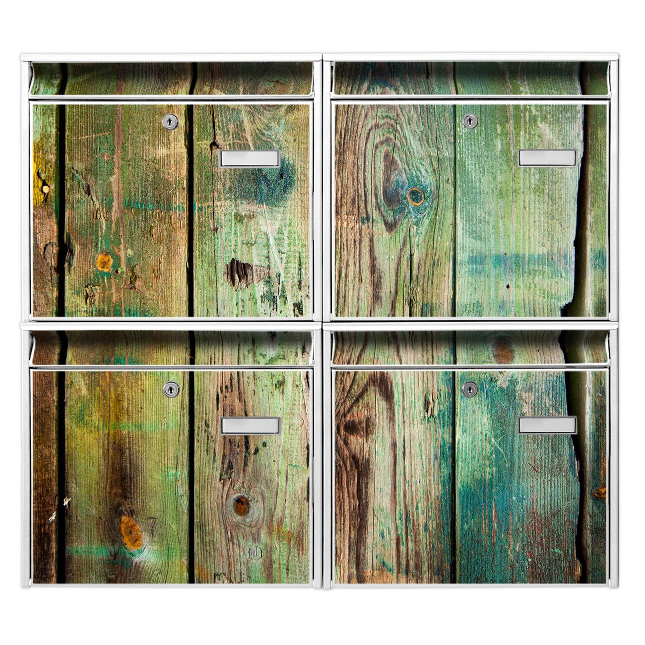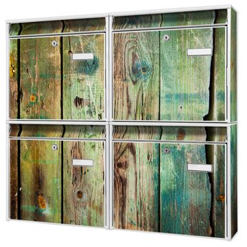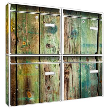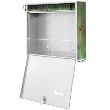 FUNKTION: Die Burg-Wächter Briefkastenanlage mit Motiv Grünes Holz bietet Ihnen ausreichend Fassungsvermögen um auch A4 und C4 Sendungen zu empfangen. Das integrierte Namensschild lässt sich individuell beschriften. Wählen Sie aus den Grundfarben weiß, silber und schwarz. DESIGN: Die 4 Briefkästen haben ein ansprechendes und zeitloses Design, ohne dabei auf Funktionalität zu verzichten. Das Material ist sehr stabil, wetterfest und rostfrei. Durch das Motiv Grünes Holz werden die Postkästen zu einem Blickfang. DETAILS: Die Postkästen bestehen aus verzinktem Stahl der zusätzlich mit Klarlack versiegelt wurde. Die Kästen sind gesamt 64,5cm hoch, 72,5cm breit und 10cm tief. Das Motiv besteht aus einer wetter- und UV-festen Folie, die Ihren Briefkasten zusätzlich vor Kratzern schützt. Die Postkästen werden mit Montagematerial, je einem Namensschild und je zwei Schlüsseln geliefert. NUTZEN: Das Briefkastenset eignet sich für die Wandmontage, die Größe bietet genügend Platz für Sendungen aller Art. Das zeitlose Design sowie die stabile Bauart bieten Ihnen einen treuen Begleiter für Ihre Post. BANJADO: