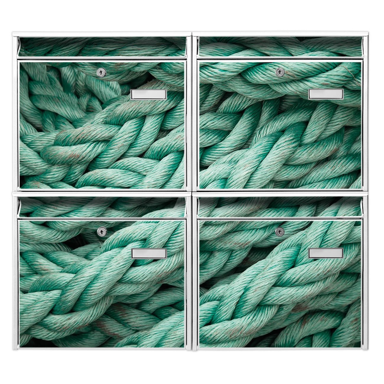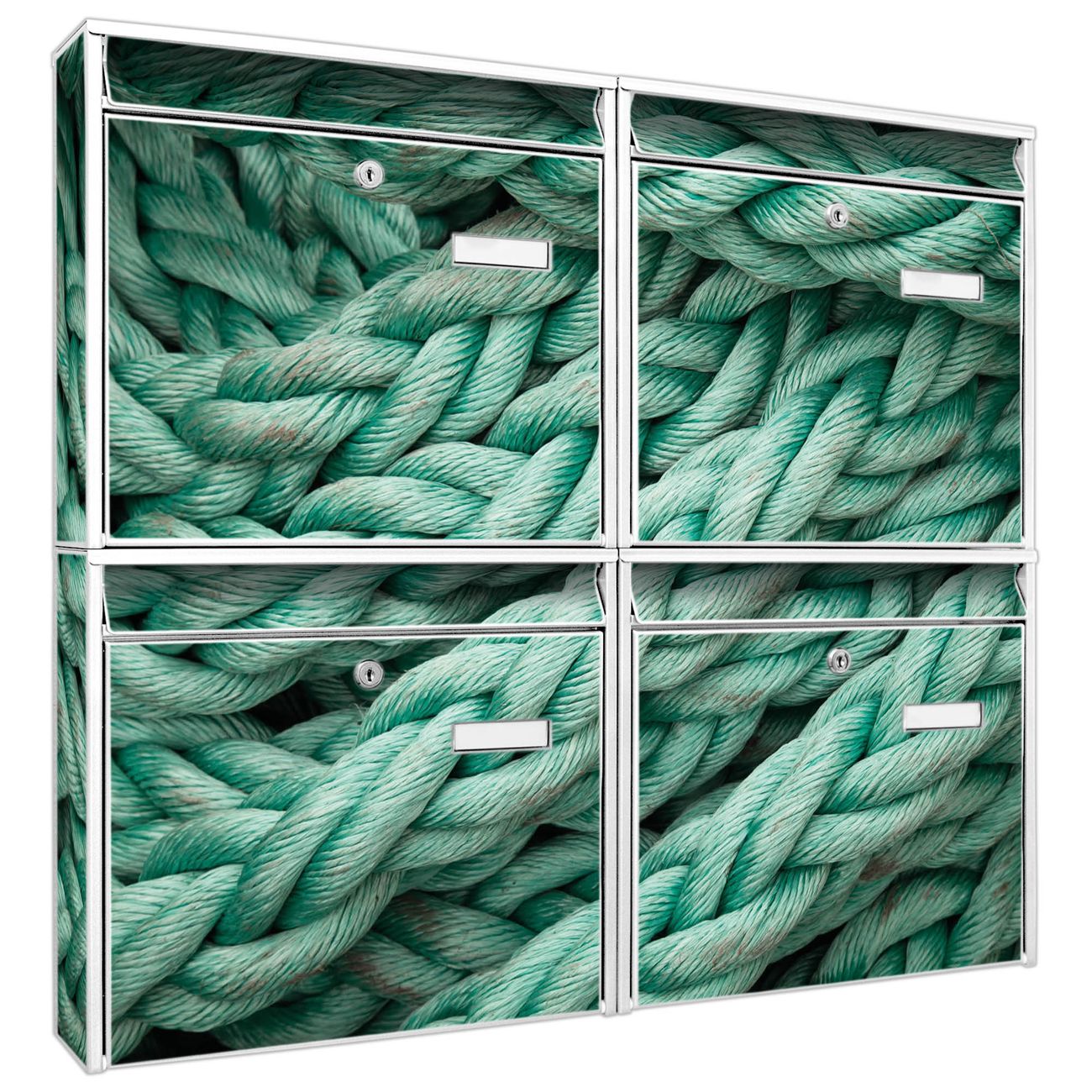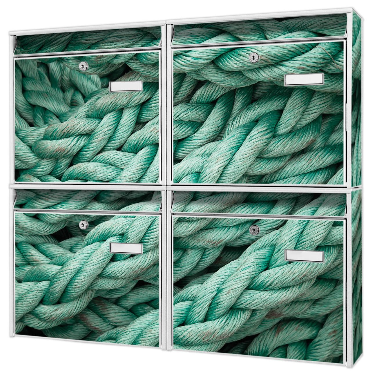 FUNKTION: Die Burg-Wächter Briefkastenanlage mit Motiv Grünes Tau bietet Ihnen ausreichend Fassungsvermögen um auch A4 und C4 Sendungen zu empfangen. Das integrierte Namensschild lässt sich individuell beschriften. Wählen Sie aus den Grundfarben weiß, silber und schwarz. DESIGN: Die 4 Briefkästen haben ein ansprechendes und zeitloses Design, ohne dabei auf Funktionalität zu verzichten. Das Material ist sehr stabil, wetterfest und rostfrei. Durch das Motiv Grünes Tau werden die Postkästen zu einem Blickfang. DETAILS: Die Postkästen bestehen aus verzinktem Stahl der zusätzlich mit Klarlack versiegelt wurde. Die Kästen sind gesamt 64,5cm hoch, 72,5cm breit und 10cm tief. Das Motiv besteht aus einer wetter- und UV-festen Folie, die Ihren Briefkasten zusätzlich vor Kratzern schützt. Die Postkästen werden mit Montagematerial, je einem Namensschild und je zwei Schlüsseln geliefert. NUTZEN: Das Briefkastenset eignet sich für die Wandmontage, die Größe bietet genügend Platz für Sendungen aller Art. Das zeitlose Design sowie die stabile Bauart bieten Ihnen einen treuen Begleiter für Ihre Post. BANJADO:
