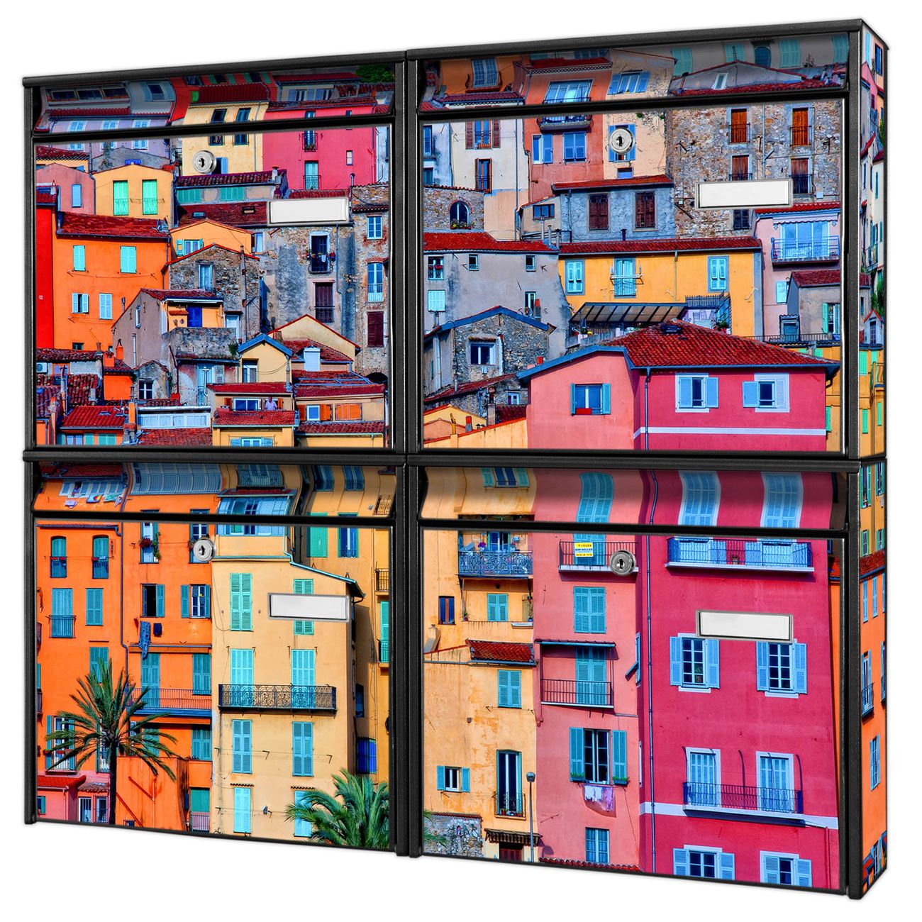 FUNKTION: Die Burg-Wächter Briefkastenanlage mit Motiv Häuserberg bietet Ihnen ausreichend Fassungsvermögen um auch A4 und C4 Sendungen zu empfangen. Das integrierte Namensschild lässt sich individuell beschriften. Wählen Sie aus den Grundfarben weiß, silber und schwarz. DESIGN: Die 4 Briefkästen haben ein ansprechendes und zeitloses Design, ohne dabei auf Funktionalität zu verzichten. Das Material ist sehr stabil, wetterfest und rostfrei. Durch das Motiv Häuserberg werden die Postkästen zu einem Blickfang. DETAILS: Die Postkästen bestehen aus verzinktem Stahl der zusätzlich mit Klarlack versiegelt wurde. Die Kästen sind gesamt 64,5cm hoch, 72,5cm breit und 10cm tief. Das Motiv besteht aus einer wetter- und UV-festen Folie, die Ihren Briefkasten zusätzlich vor Kratzern schützt. Die Postkästen werden mit Montagematerial, je einem Namensschild und je zwei Schlüsseln geliefert. NUTZEN: Das Briefkastenset eignet sich für die Wandmontage, die Größe bietet genügend Platz für Sendungen aller Art. Das zeitlose Design sowie die stabile Bauart bieten Ihnen einen treuen Begleiter für Ihre Post. BANJADO: