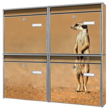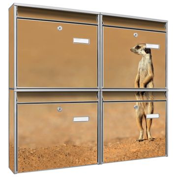 FUNKTION: Die Burg-Wächter Briefkastenanlage mit Motiv Henryk 2 bietet Ihnen ausreichend Fassungsvermögen um auch A4 und C4 Sendungen zu empfangen. Das integrierte Namensschild lässt sich individuell beschriften. Wählen Sie aus den Grundfarben weiß, silber und schwarz. DESIGN: Die 4 Briefkästen haben ein ansprechendes und zeitloses Design, ohne dabei auf Funktionalität zu verzichten. Das Material ist sehr stabil, wetterfest und rostfrei. Durch das Motiv Henryk 2 werden die Postkästen zu einem Blickfang. DETAILS: Die Postkästen bestehen aus verzinktem Stahl der zusätzlich mit Klarlack versiegelt wurde. Die Kästen sind gesamt 64,5cm hoch, 72,5cm breit und 10cm tief. Das Motiv besteht aus einer wetter- und UV-festen Folie, die Ihren Briefkasten zusätzlich vor Kratzern schützt. Die Postkästen werden mit Montagematerial, je einem Namensschild und je zwei Schlüsseln geliefert. NUTZEN: Das Briefkastenset eignet sich für die Wandmontage, die Größe bietet genügend Platz für Sendungen aller Art. Das zeitlose Design sowie die stabile Bauart bieten Ihnen einen treuen Begleiter für Ihre Post. BANJADO: