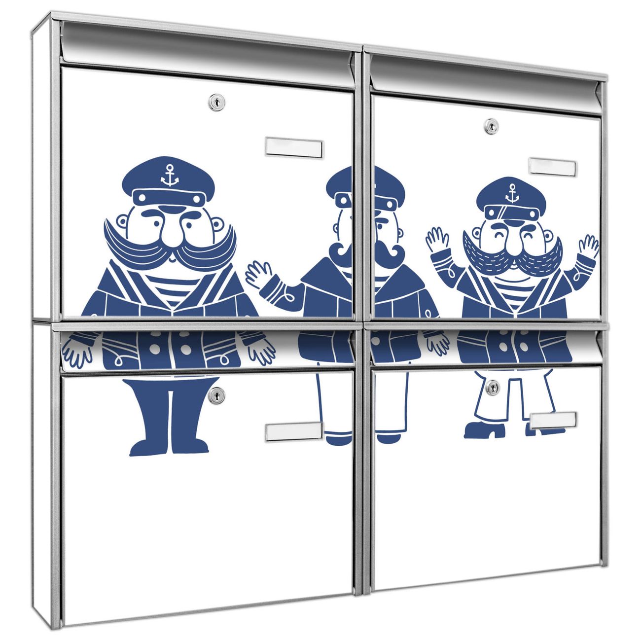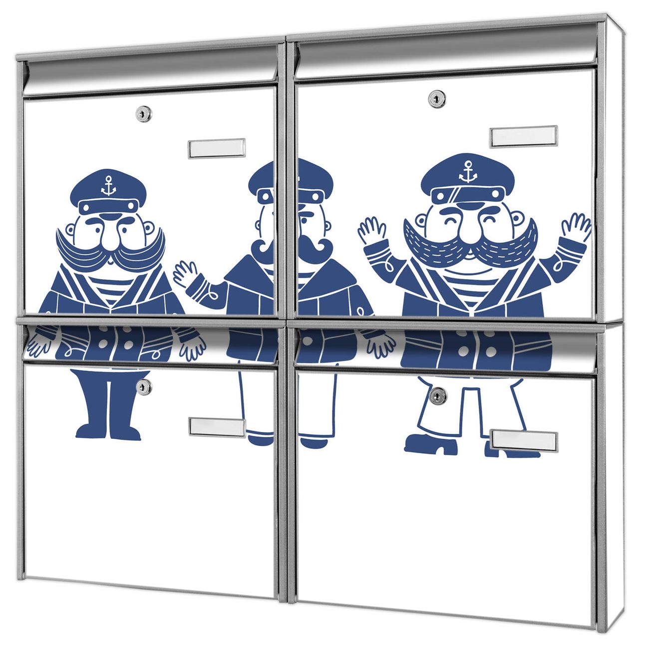 FUNKTION: Die Burg-Wächter Briefkastenanlage mit Motiv I Love Sea bietet Ihnen ausreichend Fassungsvermögen um auch A4 und C4 Sendungen zu empfangen. Das integrierte Namensschild lässt sich individuell beschriften. Wählen Sie aus den Grundfarben weiß, silber und schwarz. DESIGN: Die 4 Briefkästen haben ein ansprechendes und zeitloses Design, ohne dabei auf Funktionalität zu verzichten. Das Material ist sehr stabil, wetterfest und rostfrei. Durch das Motiv I Love Sea werden die Postkästen zu einem Blickfang. DETAILS: Die Postkästen bestehen aus verzinktem Stahl der zusätzlich mit Klarlack versiegelt wurde. Die Kästen sind gesamt 64,5cm hoch, 72,5cm breit und 10cm tief. Das Motiv besteht aus einer wetter- und UV-festen Folie, die Ihren Briefkasten zusätzlich vor Kratzern schützt. Die Postkästen werden mit Montagematerial, je einem Namensschild und je zwei Schlüsseln geliefert. NUTZEN: Das Briefkastenset eignet sich für die Wandmontage, die Größe bietet genügend Platz für Sendungen aller Art. Das zeitlose Design sowie die stabile Bauart bieten Ihnen einen treuen Begleiter für Ihre Post. BANJADO: