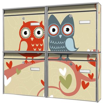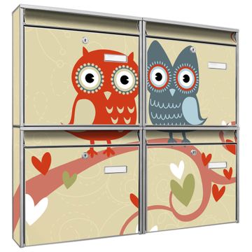 FUNKTION: Die Burg-Wächter Briefkastenanlage mit Motiv I Love You bietet Ihnen ausreichend Fassungsvermögen um auch A4 und C4 Sendungen zu empfangen. Das integrierte Namensschild lässt sich individuell beschriften. Wählen Sie aus den Grundfarben weiß, silber und schwarz. DESIGN: Die 4 Briefkästen haben ein ansprechendes und zeitloses Design, ohne dabei auf Funktionalität zu verzichten. Das Material ist sehr stabil, wetterfest und rostfrei. Durch das Motiv I Love You werden die Postkästen zu einem Blickfang. DETAILS: Die Postkästen bestehen aus verzinktem Stahl der zusätzlich mit Klarlack versiegelt wurde. Die Kästen sind gesamt 64,5cm hoch, 72,5cm breit und 10cm tief. Das Motiv besteht aus einer wetter- und UV-festen Folie, die Ihren Briefkasten zusätzlich vor Kratzern schützt. Die Postkästen werden mit Montagematerial, je einem Namensschild und je zwei Schlüsseln geliefert. NUTZEN: Das Briefkastenset eignet sich für die Wandmontage, die Größe bietet genügend Platz für Sendungen aller Art. Das zeitlose Design sowie die stabile Bauart bieten Ihnen einen treuen Begleiter für Ihre Post. BANJADO: