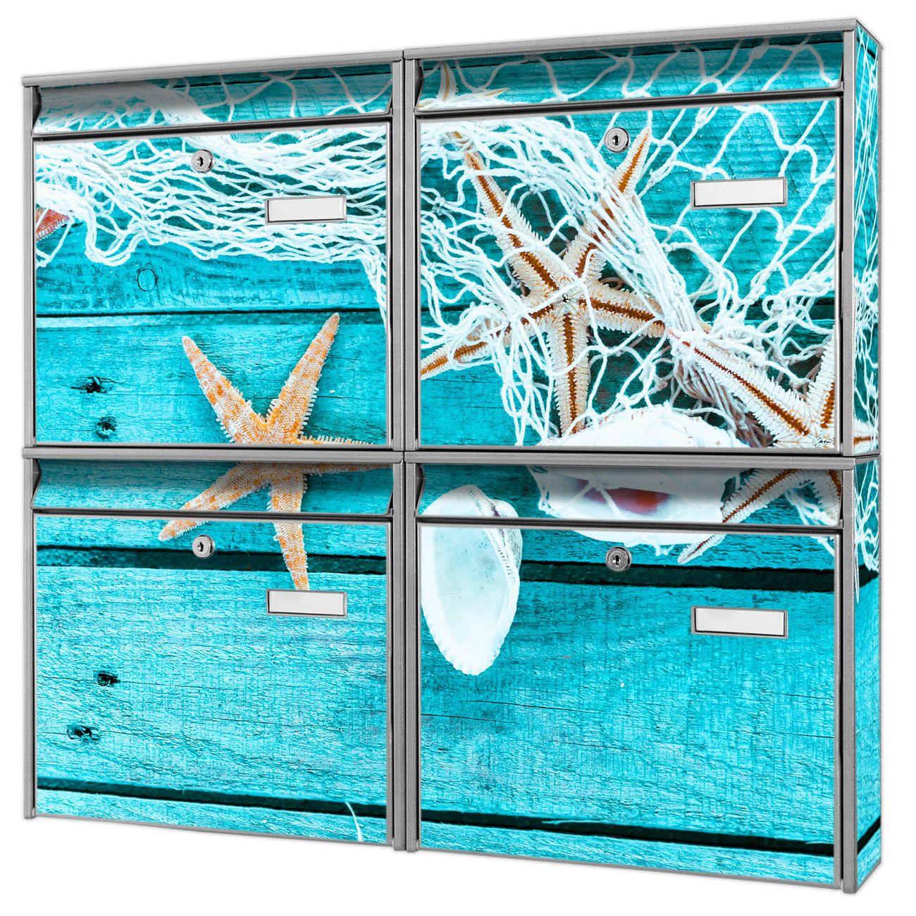 FUNKTION: Die Burg-Wächter Briefkastenanlage mit Motiv Ins Netz Gegangen bietet Ihnen ausreichend Fassungsvermögen um auch A4 und C4 Sendungen zu empfangen. Das integrierte Namensschild lässt sich individuell beschriften. Wählen Sie aus den Grundfarben weiß, silber und schwarz. DESIGN: Die 4 Briefkästen haben ein ansprechendes und zeitloses Design, ohne dabei auf Funktionalität zu verzichten. Das Material ist sehr stabil, wetterfest und rostfrei. Durch das Motiv Ins Netz Gegangen werden die Postkästen zu einem Blickfang. DETAILS: Die Postkästen bestehen aus verzinktem Stahl der zusätzlich mit Klarlack versiegelt wurde. Die Kästen sind gesamt 64,5cm hoch, 72,5cm breit und 10cm tief. Das Motiv besteht aus einer wetter- und UV-festen Folie, die Ihren Briefkasten zusätzlich vor Kratzern schützt. Die Postkästen werden mit Montagematerial, je einem Namensschild und je zwei Schlüsseln geliefert. NUTZEN: Das Briefkastenset eignet sich für die Wandmontage, die Größe bietet genügend Platz für Sendungen aller Art. Das zeitlose Design sowie die stabile Bauart bieten Ihnen einen treuen Begleiter für Ihre Post. BANJADO: