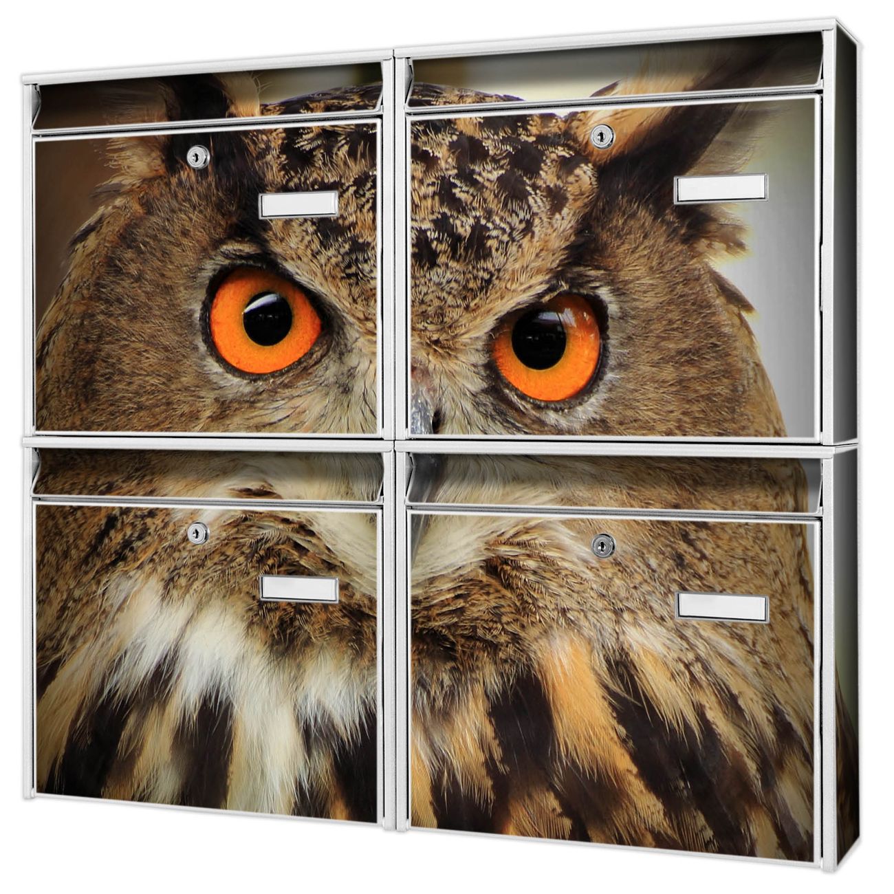 FUNKTION: Die Burg-Wächter Briefkastenanlage mit Motiv Judy bietet Ihnen ausreichend Fassungsvermögen um auch A4 und C4 Sendungen zu empfangen. Das integrierte Namensschild lässt sich individuell beschriften. Wählen Sie aus den Grundfarben weiß, silber und schwarz. DESIGN: Die 4 Briefkästen haben ein ansprechendes und zeitloses Design, ohne dabei auf Funktionalität zu verzichten. Das Material ist sehr stabil, wetterfest und rostfrei. Durch das Motiv Judy werden die Postkästen zu einem Blickfang. DETAILS: Die Postkästen bestehen aus verzinktem Stahl der zusätzlich mit Klarlack versiegelt wurde. Die Kästen sind gesamt 64,5cm hoch, 72,5cm breit und 10cm tief. Das Motiv besteht aus einer wetter- und UV-festen Folie, die Ihren Briefkasten zusätzlich vor Kratzern schützt. Die Postkästen werden mit Montagematerial, je einem Namensschild und je zwei Schlüsseln geliefert. NUTZEN: Das Briefkastenset eignet sich für die Wandmontage, die Größe bietet genügend Platz für Sendungen aller Art. Das zeitlose Design sowie die stabile Bauart bieten Ihnen einen treuen Begleiter für Ihre Post. BANJADO: