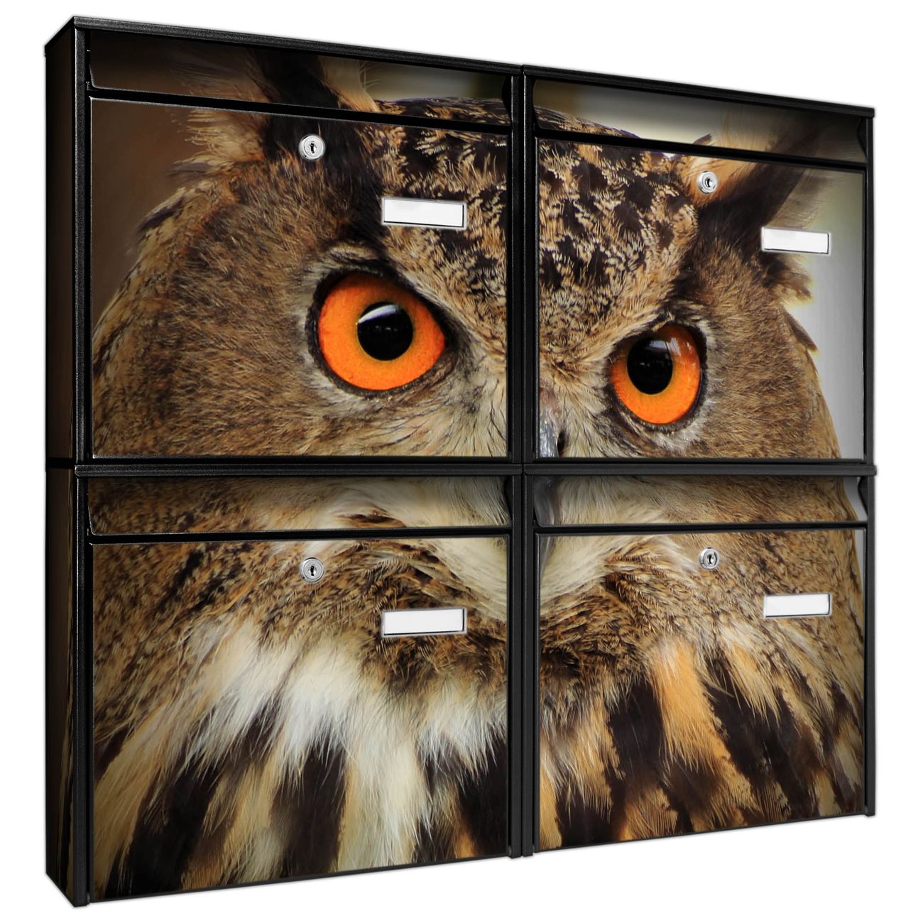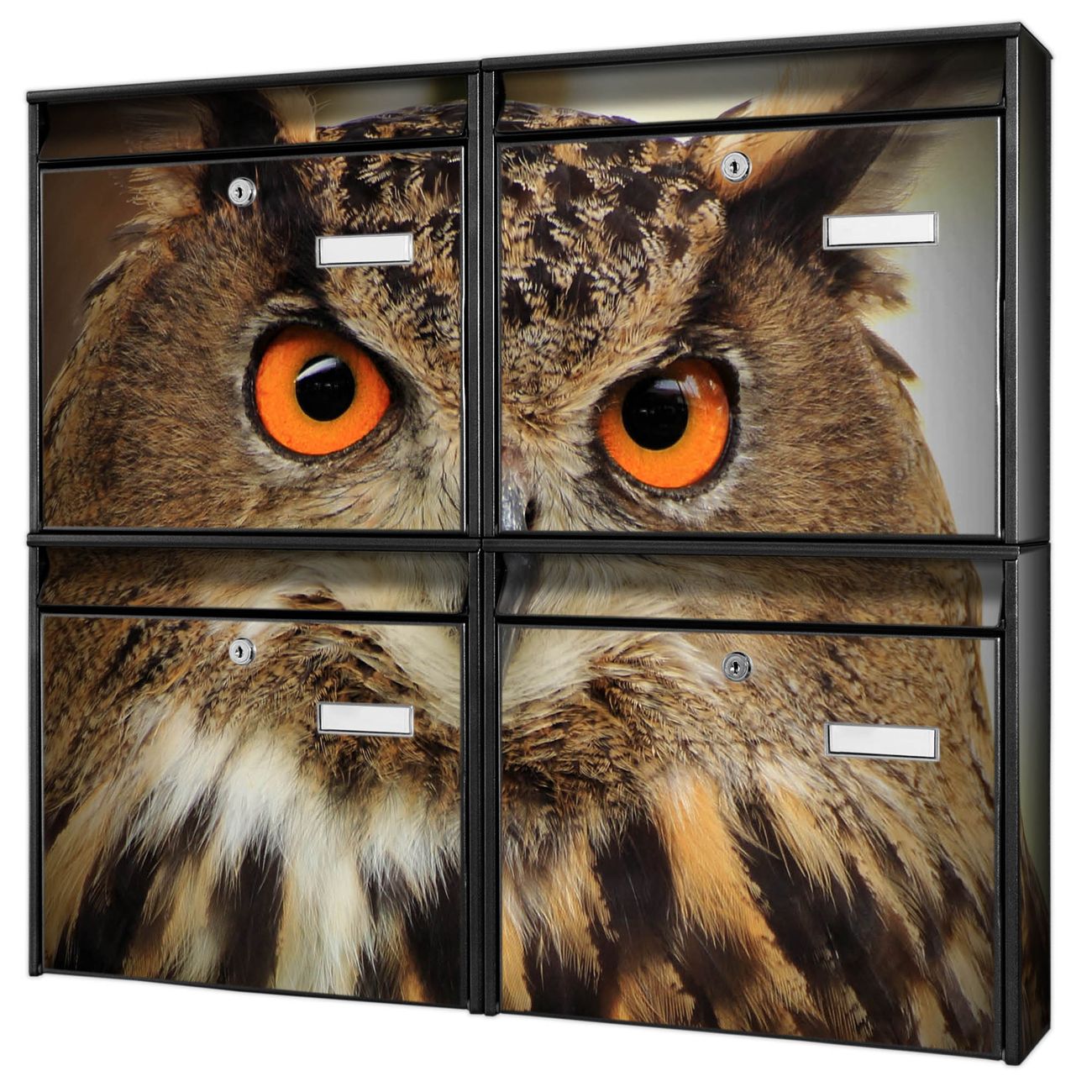 FUNKTION: Die Burg-Wächter Briefkastenanlage mit Motiv Judy bietet Ihnen ausreichend Fassungsvermögen um auch A4 und C4 Sendungen zu empfangen. Das integrierte Namensschild lässt sich individuell beschriften. Wählen Sie aus den Grundfarben weiß, silber und schwarz. DESIGN: Die 4 Briefkästen haben ein ansprechendes und zeitloses Design, ohne dabei auf Funktionalität zu verzichten. Das Material ist sehr stabil, wetterfest und rostfrei. Durch das Motiv Judy werden die Postkästen zu einem Blickfang. DETAILS: Die Postkästen bestehen aus verzinktem Stahl der zusätzlich mit Klarlack versiegelt wurde. Die Kästen sind gesamt 64,5cm hoch, 72,5cm breit und 10cm tief. Das Motiv besteht aus einer wetter- und UV-festen Folie, die Ihren Briefkasten zusätzlich vor Kratzern schützt. Die Postkästen werden mit Montagematerial, je einem Namensschild und je zwei Schlüsseln geliefert. NUTZEN: Das Briefkastenset eignet sich für die Wandmontage, die Größe bietet genügend Platz für Sendungen aller Art. Das zeitlose Design sowie die stabile Bauart bieten Ihnen einen treuen Begleiter für Ihre Post. BANJADO: