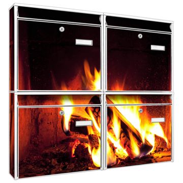 FUNKTION: Die Burg-Wächter Briefkastenanlage mit Motiv Kaminfeuer bietet Ihnen ausreichend Fassungsvermögen um auch A4 und C4 Sendungen zu empfangen. Das integrierte Namensschild lässt sich individuell beschriften. Wählen Sie aus den Grundfarben weiß, silber und schwarz. DESIGN: Die 4 Briefkästen haben ein ansprechendes und zeitloses Design, ohne dabei auf Funktionalität zu verzichten. Das Material ist sehr stabil, wetterfest und rostfrei. Durch das Motiv Kaminfeuer werden die Postkästen zu einem Blickfang. DETAILS: Die Postkästen bestehen aus verzinktem Stahl der zusätzlich mit Klarlack versiegelt wurde. Die Kästen sind gesamt 64,5cm hoch, 72,5cm breit und 10cm tief. Das Motiv besteht aus einer wetter- und UV-festen Folie, die Ihren Briefkasten zusätzlich vor Kratzern schützt. Die Postkästen werden mit Montagematerial, je einem Namensschild und je zwei Schlüsseln geliefert. NUTZEN: Das Briefkastenset eignet sich für die Wandmontage, die Größe bietet genügend Platz für Sendungen aller Art. Das zeitlose Design sowie die stabile Bauart bieten Ihnen einen treuen Begleiter für Ihre Post. BANJADO:
