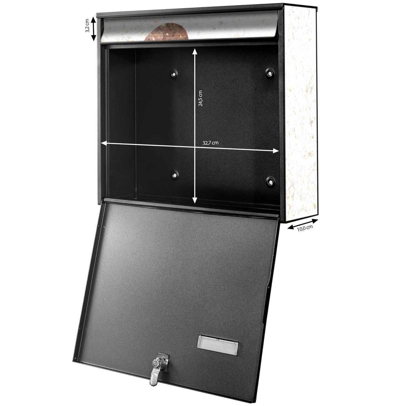 - je Briefkasten: 36,2x32,2x10cm BxHxT