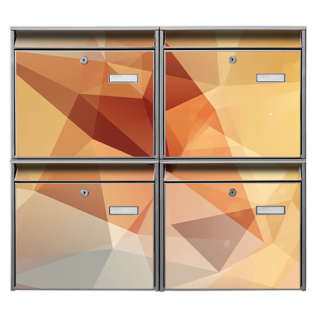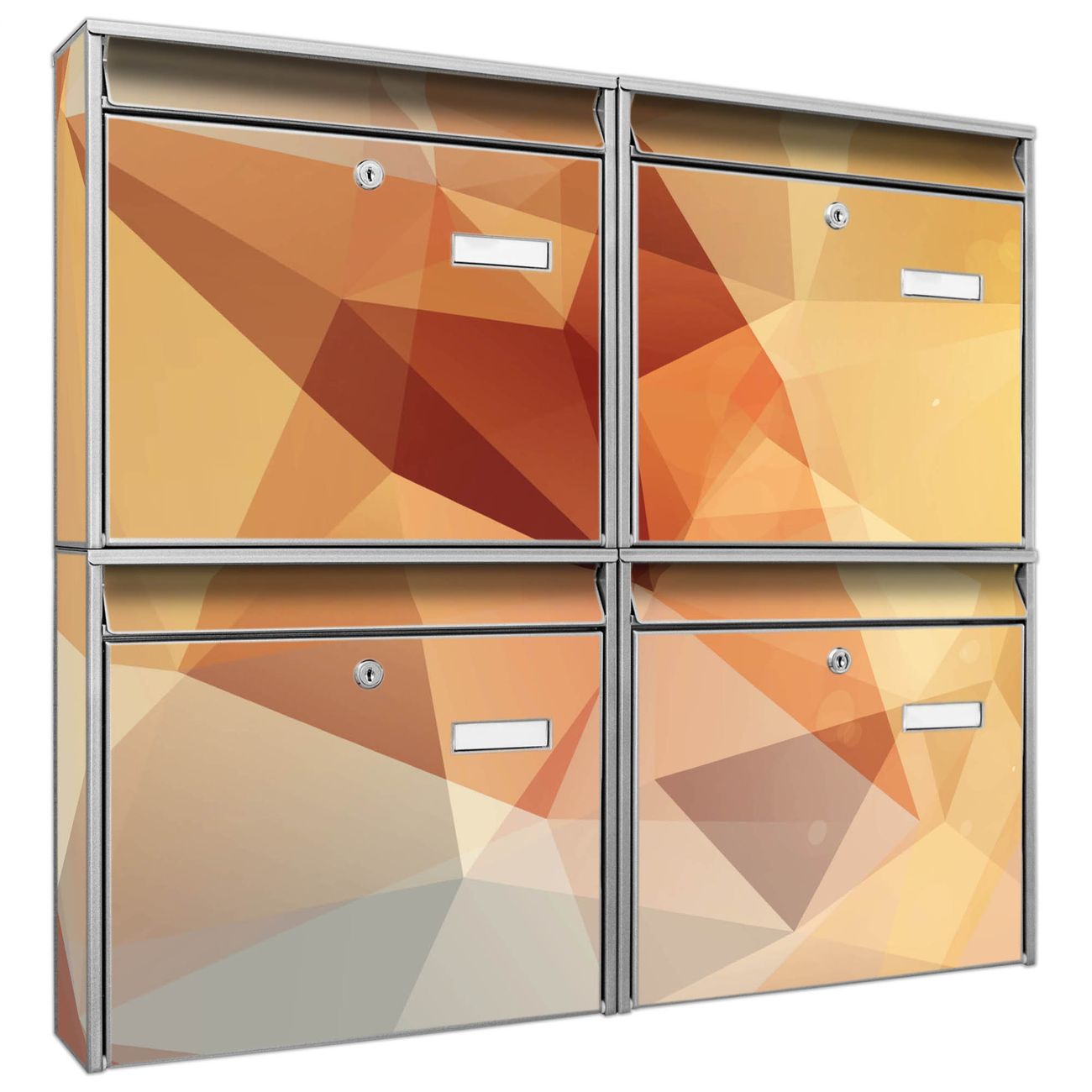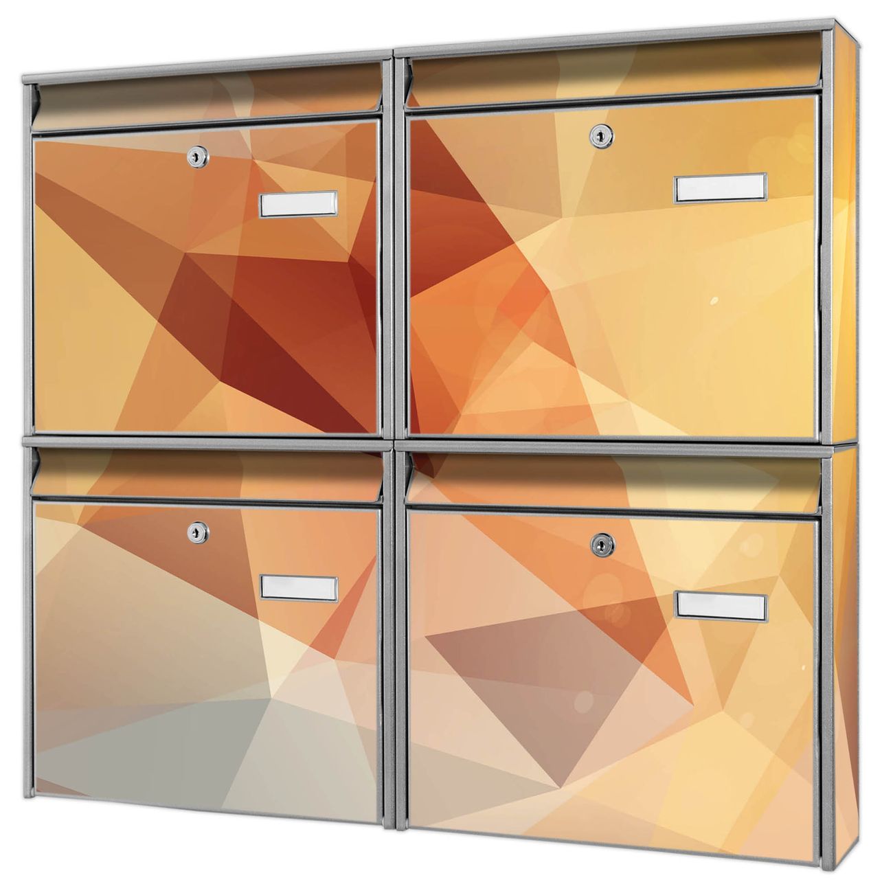 FUNKTION: Die Burg-Wächter Briefkastenanlage mit Motiv Kristall bietet Ihnen ausreichend Fassungsvermögen um auch A4 und C4 Sendungen zu empfangen. Das integrierte Namensschild lässt sich individuell beschriften. Wählen Sie aus den Grundfarben weiß, silber und schwarz. DESIGN: Die 4 Briefkästen haben ein ansprechendes und zeitloses Design, ohne dabei auf Funktionalität zu verzichten. Das Material ist sehr stabil, wetterfest und rostfrei. Durch das Motiv Kristall werden die Postkästen zu einem Blickfang. DETAILS: Die Postkästen bestehen aus verzinktem Stahl der zusätzlich mit Klarlack versiegelt wurde. Die Kästen sind gesamt 64,5cm hoch, 72,5cm breit und 10cm tief. Das Motiv besteht aus einer wetter- und UV-festen Folie, die Ihren Briefkasten zusätzlich vor Kratzern schützt. Die Postkästen werden mit Montagematerial, je einem Namensschild und je zwei Schlüsseln geliefert. NUTZEN: Das Briefkastenset eignet sich für die Wandmontage, die Größe bietet genügend Platz für Sendungen aller Art. Das zeitlose Design sowie die stabile Bauart bieten Ihnen einen treuen Begleiter für Ihre Post. BANJADO: