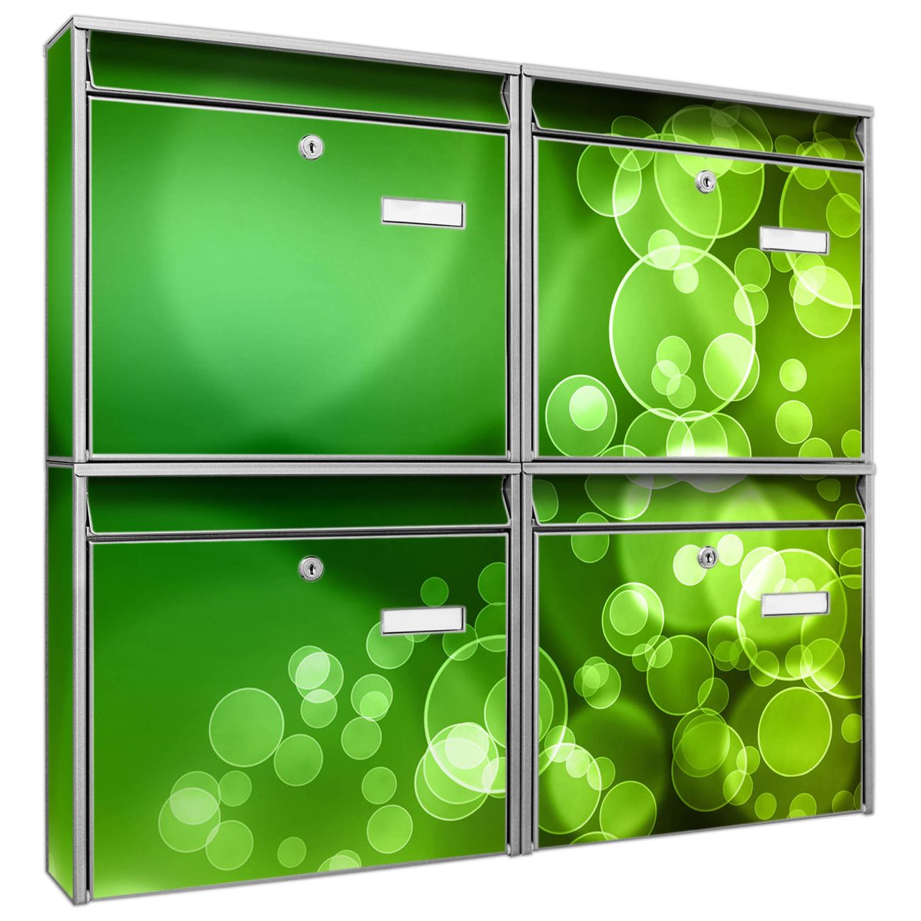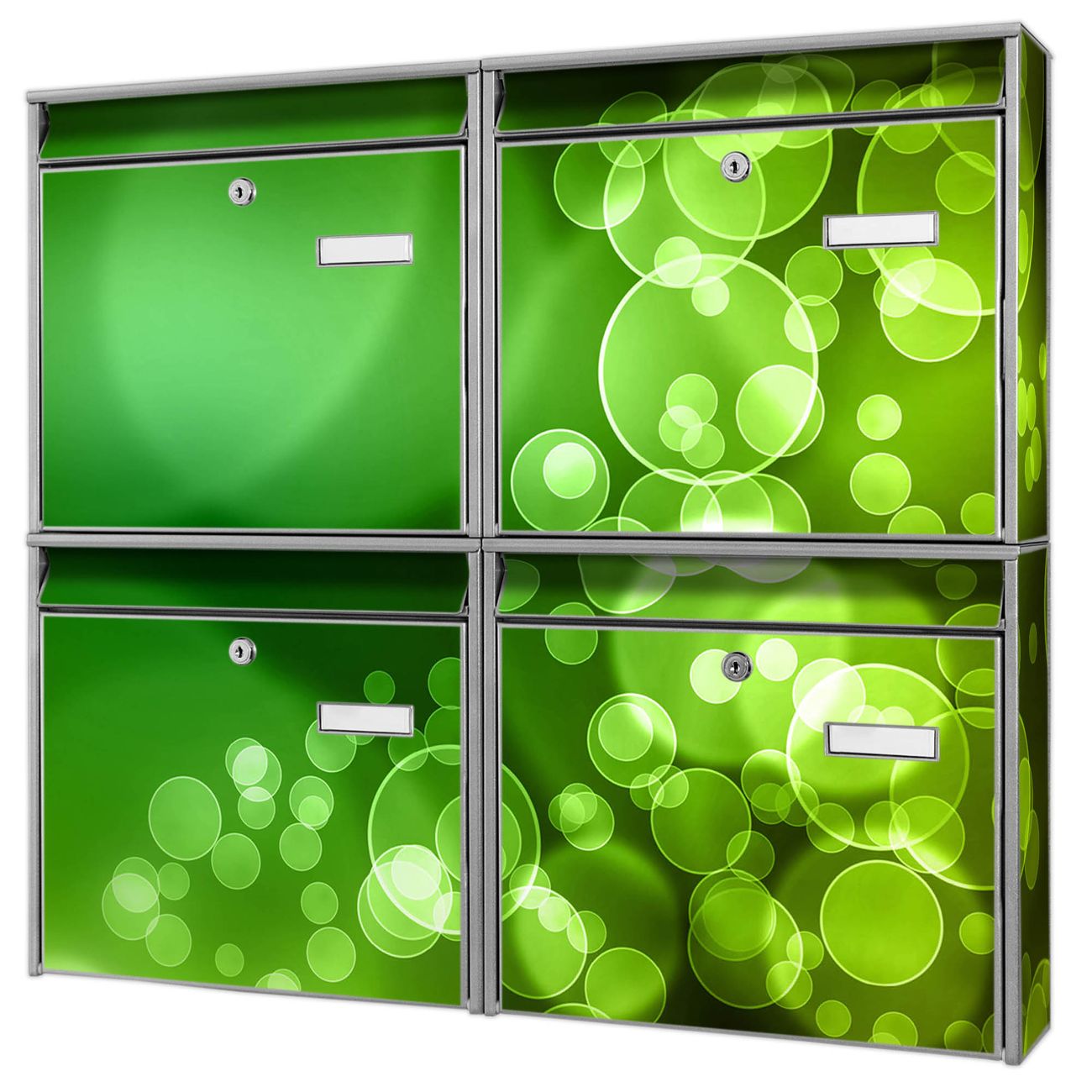 FUNKTION: Die Burg-Wächter Briefkastenanlage mit Motiv Lichtspiel bietet Ihnen ausreichend Fassungsvermögen um auch A4 und C4 Sendungen zu empfangen. Das integrierte Namensschild lässt sich individuell beschriften. Wählen Sie aus den Grundfarben weiß, silber und schwarz. DESIGN: Die 4 Briefkästen haben ein ansprechendes und zeitloses Design, ohne dabei auf Funktionalität zu verzichten. Das Material ist sehr stabil, wetterfest und rostfrei. Durch das Motiv Lichtspiel werden die Postkästen zu einem Blickfang. DETAILS: Die Postkästen bestehen aus verzinktem Stahl der zusätzlich mit Klarlack versiegelt wurde. Die Kästen sind gesamt 64,5cm hoch, 72,5cm breit und 10cm tief. Das Motiv besteht aus einer wetter- und UV-festen Folie, die Ihren Briefkasten zusätzlich vor Kratzern schützt. Die Postkästen werden mit Montagematerial, je einem Namensschild und je zwei Schlüsseln geliefert. NUTZEN: Das Briefkastenset eignet sich für die Wandmontage, die Größe bietet genügend Platz für Sendungen aller Art. Das zeitlose Design sowie die stabile Bauart bieten Ihnen einen treuen Begleiter für Ihre Post. BANJADO: