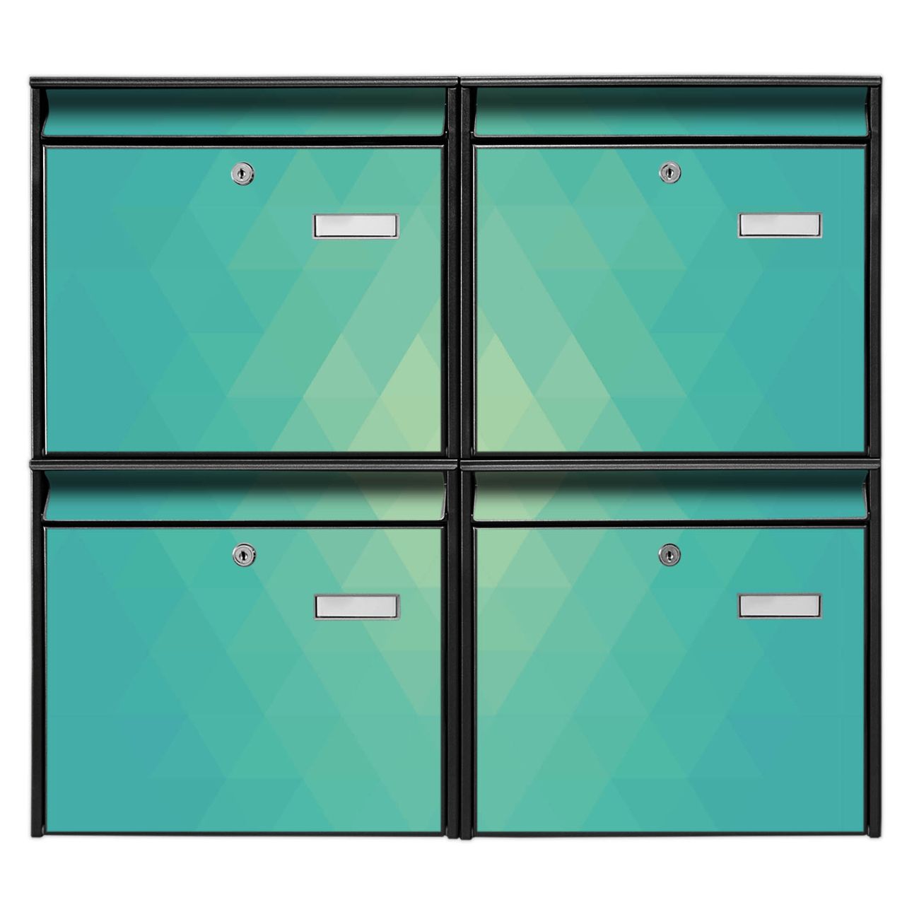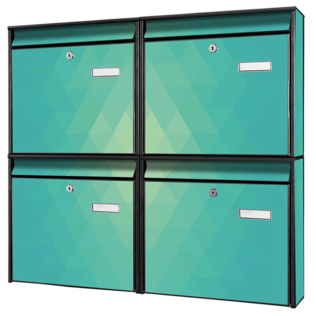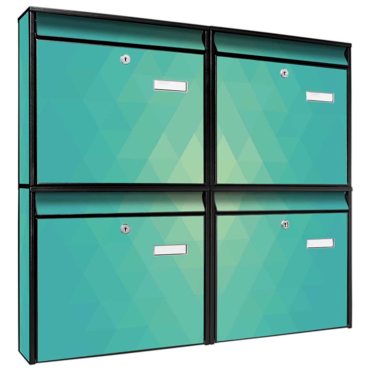 FUNKTION: Die Burg-Wächter Briefkastenanlage mit Motiv Meeresblau bietet Ihnen ausreichend Fassungsvermögen um auch A4 und C4 Sendungen zu empfangen. Das integrierte Namensschild lässt sich individuell beschriften. Wählen Sie aus den Grundfarben weiß, silber und schwarz. DESIGN: Die 4 Briefkästen haben ein ansprechendes und zeitloses Design, ohne dabei auf Funktionalität zu verzichten. Das Material ist sehr stabil, wetterfest und rostfrei. Durch das Motiv Meeresblau werden die Postkästen zu einem Blickfang. DETAILS: Die Postkästen bestehen aus verzinktem Stahl der zusätzlich mit Klarlack versiegelt wurde. Die Kästen sind gesamt 64,5cm hoch, 72,5cm breit und 10cm tief. Das Motiv besteht aus einer wetter- und UV-festen Folie, die Ihren Briefkasten zusätzlich vor Kratzern schützt. Die Postkästen werden mit Montagematerial, je einem Namensschild und je zwei Schlüsseln geliefert. NUTZEN: Das Briefkastenset eignet sich für die Wandmontage, die Größe bietet genügend Platz für Sendungen aller Art. Das zeitlose Design sowie die stabile Bauart bieten Ihnen einen treuen Begleiter für Ihre Post. BANJADO: