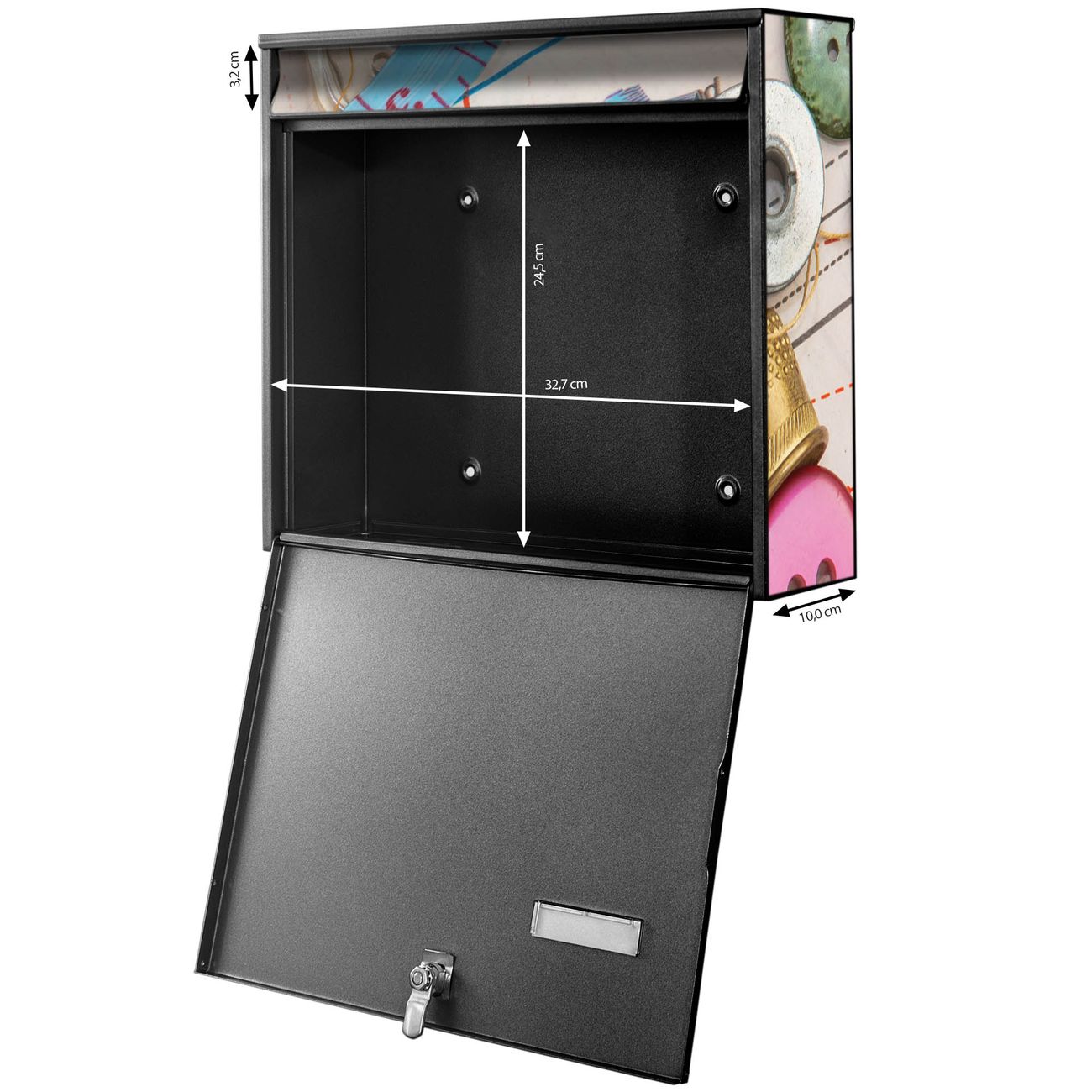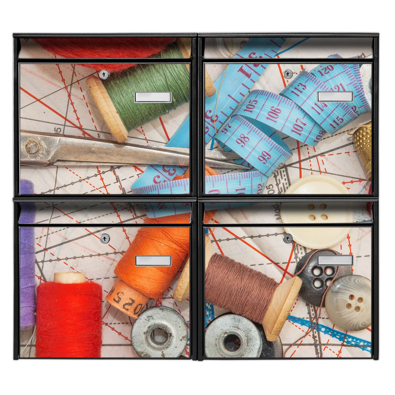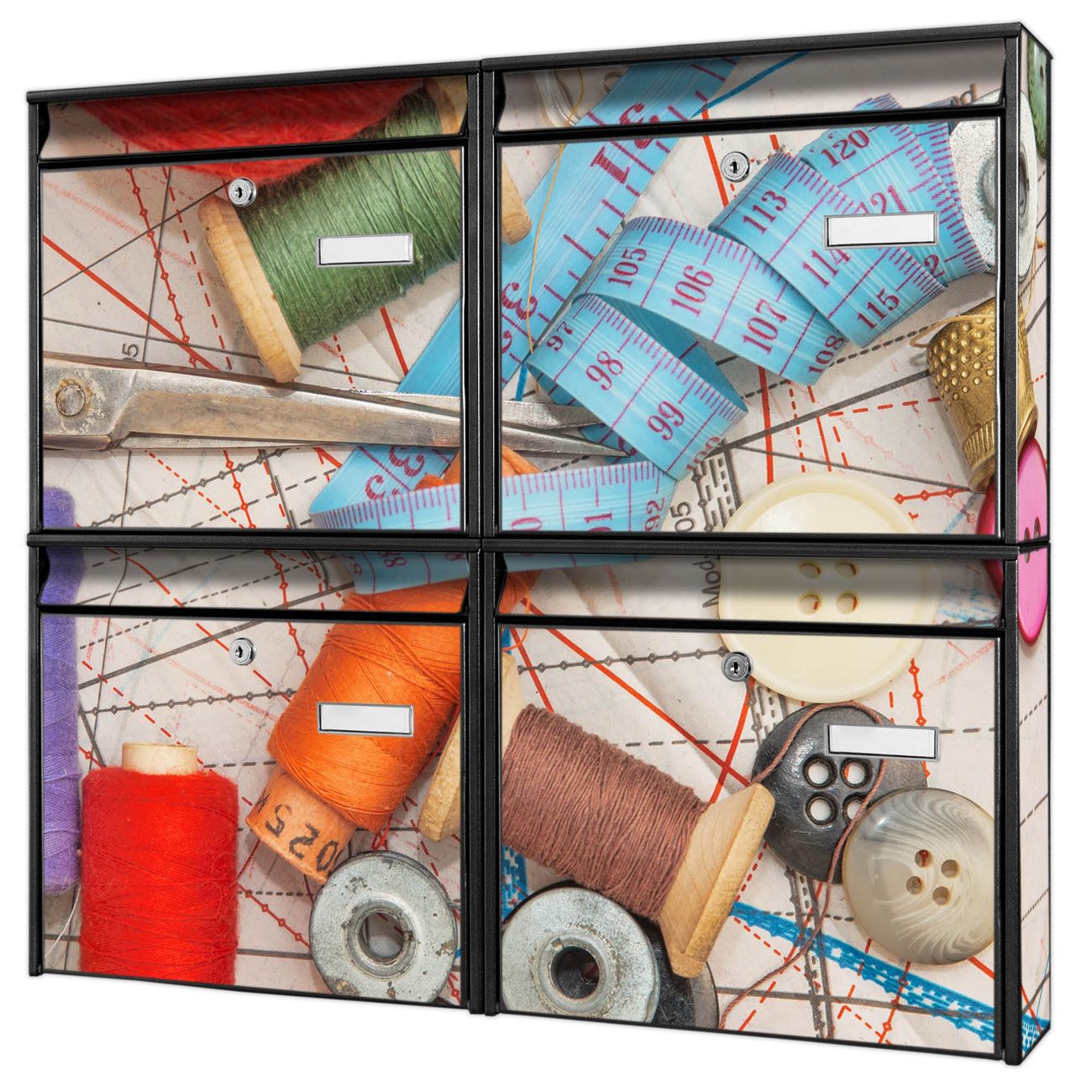 <p><strong>FUNKTION</strong>: Die Burg-Wächter Briefkastenanlage mit Motiv Nu00e4hen bietet Ihnen ausreichend Fassungsvermögen um auch A4 und C4 Sendungen zu empfangen. Das integrierte Namensschild lässt sich individuell beschriften. Wählen Sie aus den Grundfarben weiß, silber und schwarz.</p><p><strong>DESIGN</strong>: Die 4 Briefkästen haben ein ansprechendes und zeitloses Design, ohne dabei auf Funktionalität zu verzichten. Das Material ist sehr stabil, wetterfest und rostfrei. Durch das Motiv Nu00e4hen werden die Postkästen zu einem Blickfang.</p><p><strong>DETAILS</strong>: Die Postkästen bestehen aus verzinktem Stahl der zusätzlich mit Klarlack versiegelt wurde. Die Kästen sind gesamt 64,5cm hoch, 72,5cm breit und 10cm tief. Das Motiv besteht aus einer wetter- und UV-festen Folie, die Ihren Briefkasten zusätzlich vor Kratzern schützt. Die Postkästen werden mit Montagematerial, je einem Namensschild und je zwei Schlüsseln geliefert.</p><p><strong>NUTZEN</strong>: Das Briefkastenset eignet sich für die Wandmontage, die Größe bietet genügend Platz für Sendungen aller Art. Das zeitlose Design sowie die stabile Bauart bieten Ihnen einen treuen Begleiter für Ihre Post.</p><p><b>BANJADO:<br /></b>Ihr BURG-WÄCHTER Briefkasten wird in Sachsen in einer kleinen Manufaktur von Hand veredelt. Die Motivfolie ist lösungsmittelfrei und schutzlaminiert für einen langen Halt ausgelegt. Wir legen großen Wert auf die Verbindung von Funktionalität und Design. Sie erhalten Handarbeit aus Sachsen.</p>