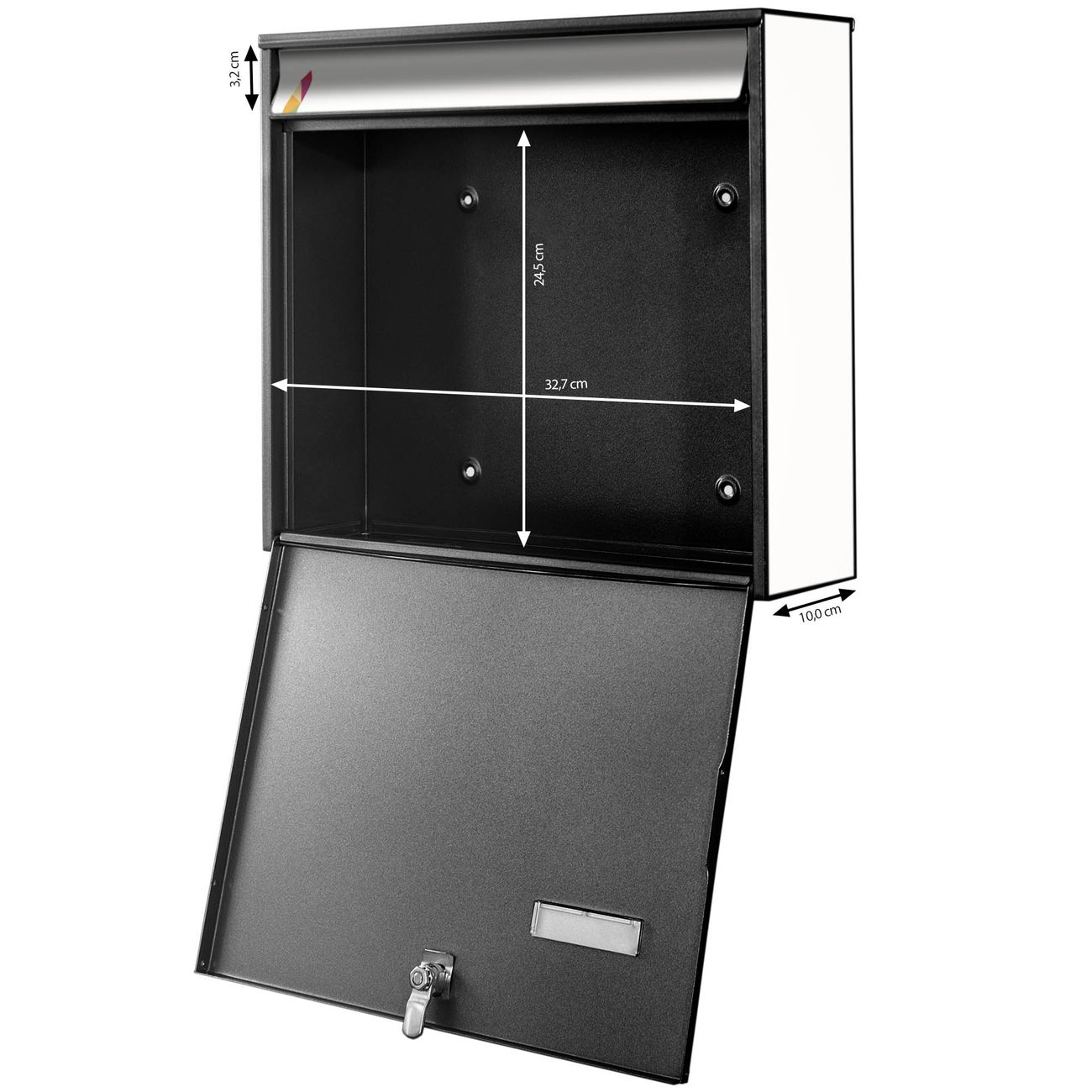 - je Briefschlitz: 34,5 x 3,8cm (B x H)