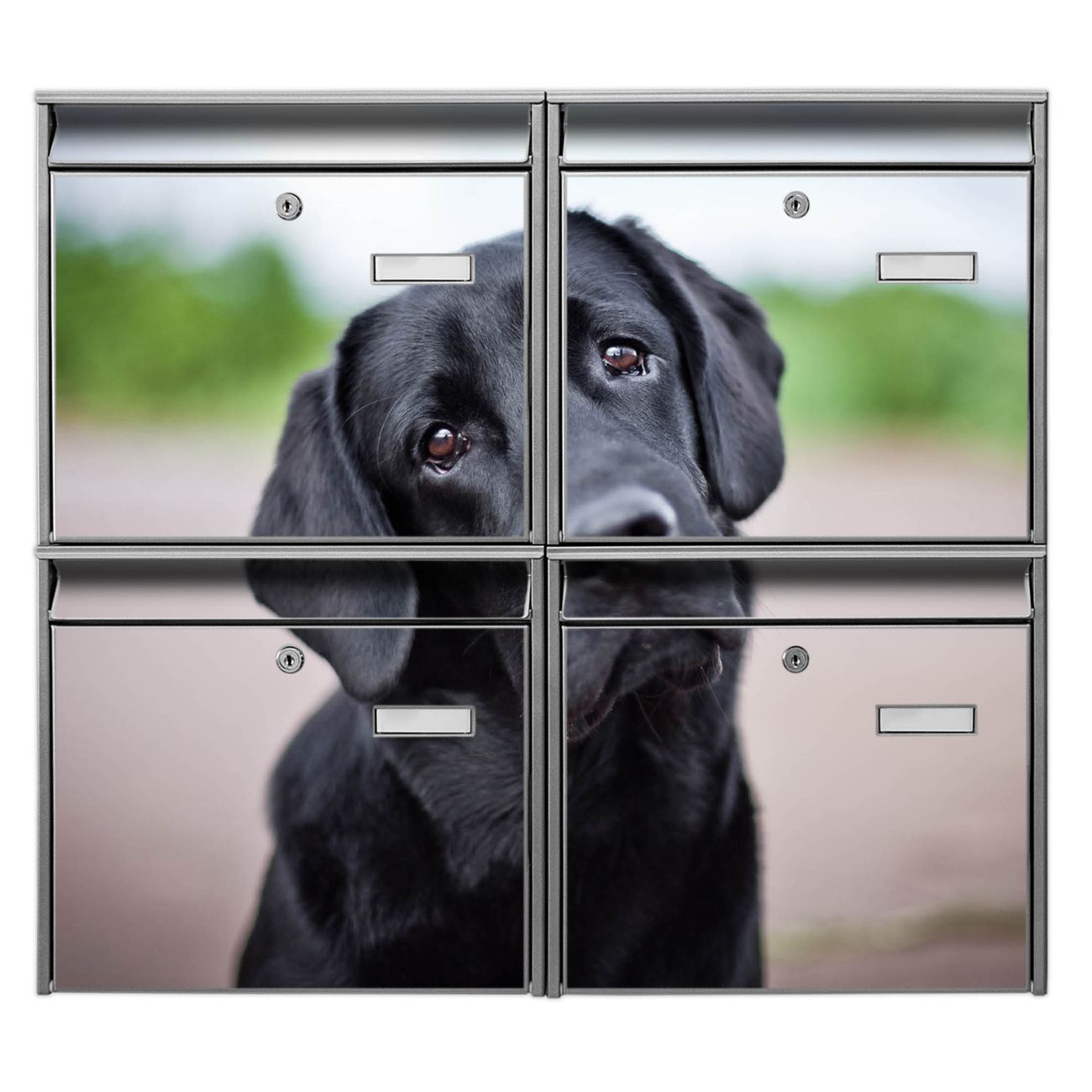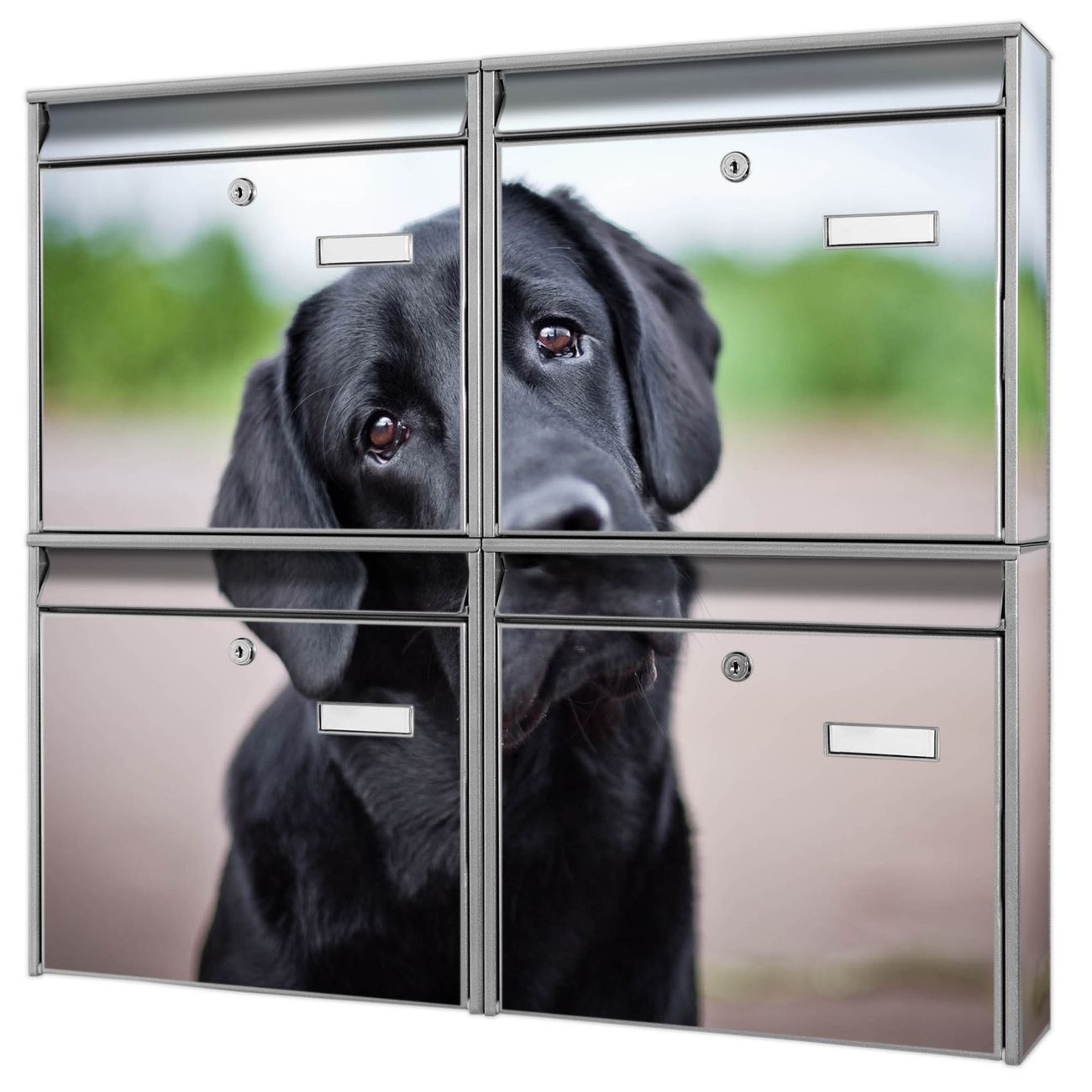 FUNKTION: Die Burg-Wächter Briefkastenanlage mit Motiv Paolo bietet Ihnen ausreichend Fassungsvermögen um auch A4 und C4 Sendungen zu empfangen. Das integrierte Namensschild lässt sich individuell beschriften. Wählen Sie aus den Grundfarben weiß, silber und schwarz. DESIGN: Die 4 Briefkästen haben ein ansprechendes und zeitloses Design, ohne dabei auf Funktionalität zu verzichten. Das Material ist sehr stabil, wetterfest und rostfrei. Durch das Motiv Paolo werden die Postkästen zu einem Blickfang. DETAILS: Die Postkästen bestehen aus verzinktem Stahl der zusätzlich mit Klarlack versiegelt wurde. Die Kästen sind gesamt 64,5cm hoch, 72,5cm breit und 10cm tief. Das Motiv besteht aus einer wetter- und UV-festen Folie, die Ihren Briefkasten zusätzlich vor Kratzern schützt. Die Postkästen werden mit Montagematerial, je einem Namensschild und je zwei Schlüsseln geliefert. NUTZEN: Das Briefkastenset eignet sich für die Wandmontage, die Größe bietet genügend Platz für Sendungen aller Art. Das zeitlose Design sowie die stabile Bauart bieten Ihnen einen treuen Begleiter für Ihre Post. BANJADO: