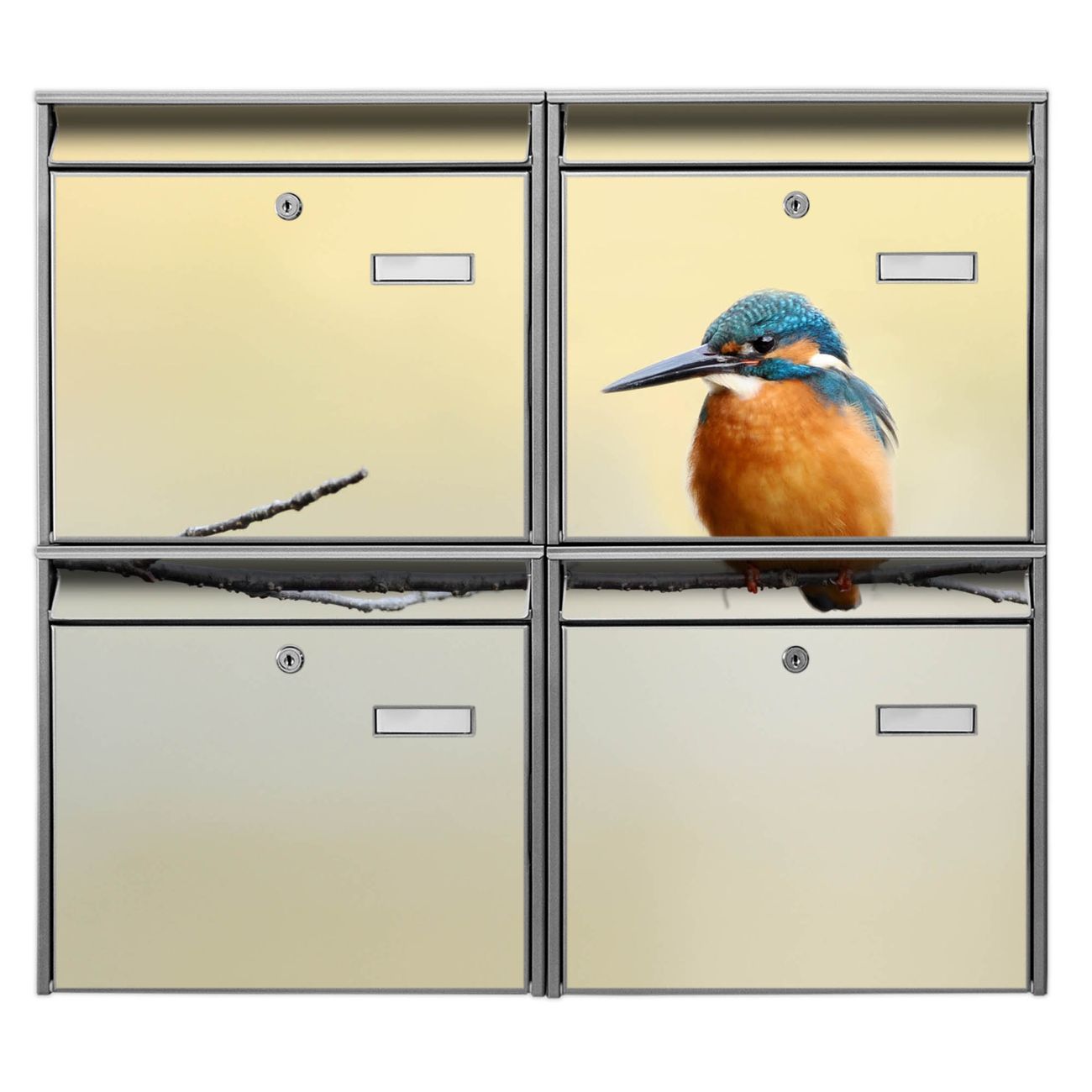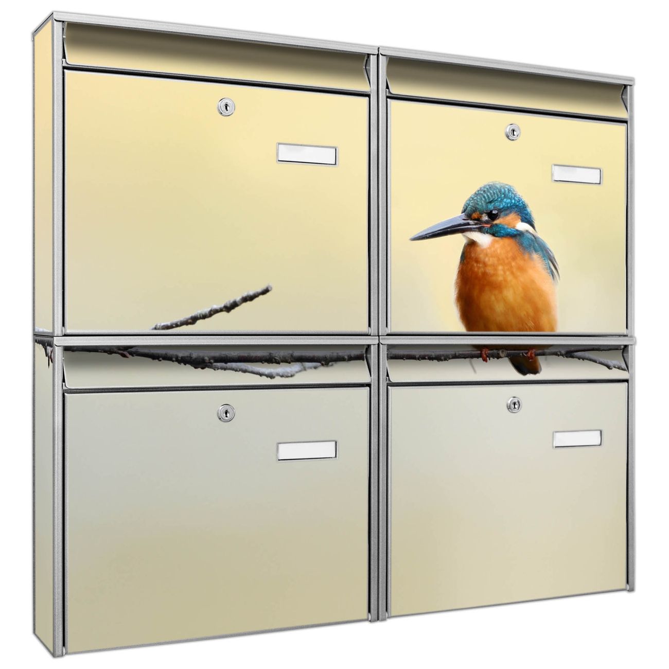 FUNKTION: Die Burg-Wächter Briefkastenanlage mit Motiv Pause bietet Ihnen ausreichend Fassungsvermögen um auch A4 und C4 Sendungen zu empfangen. Das integrierte Namensschild lässt sich individuell beschriften. Wählen Sie aus den Grundfarben weiß, silber und schwarz. DESIGN: Die 4 Briefkästen haben ein ansprechendes und zeitloses Design, ohne dabei auf Funktionalität zu verzichten. Das Material ist sehr stabil, wetterfest und rostfrei. Durch das Motiv Pause werden die Postkästen zu einem Blickfang. DETAILS: Die Postkästen bestehen aus verzinktem Stahl der zusätzlich mit Klarlack versiegelt wurde. Die Kästen sind gesamt 64,5cm hoch, 72,5cm breit und 10cm tief. Das Motiv besteht aus einer wetter- und UV-festen Folie, die Ihren Briefkasten zusätzlich vor Kratzern schützt. Die Postkästen werden mit Montagematerial, je einem Namensschild und je zwei Schlüsseln geliefert. NUTZEN: Das Briefkastenset eignet sich für die Wandmontage, die Größe bietet genügend Platz für Sendungen aller Art. Das zeitlose Design sowie die stabile Bauart bieten Ihnen einen treuen Begleiter für Ihre Post. BANJADO: