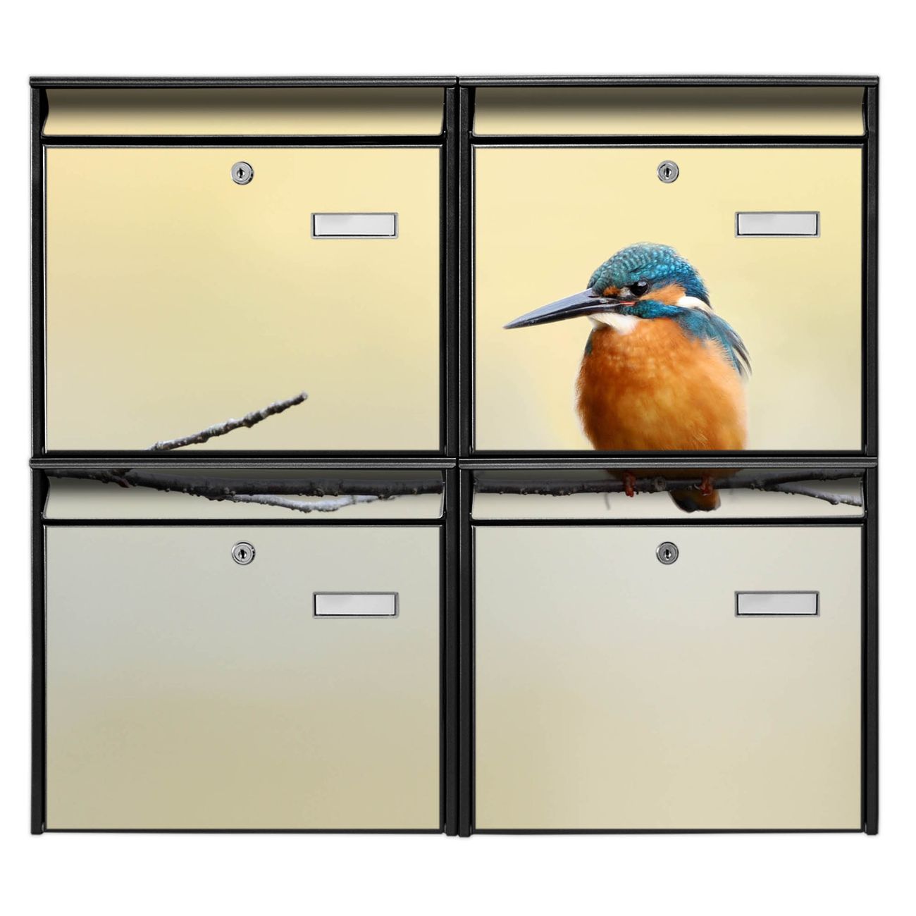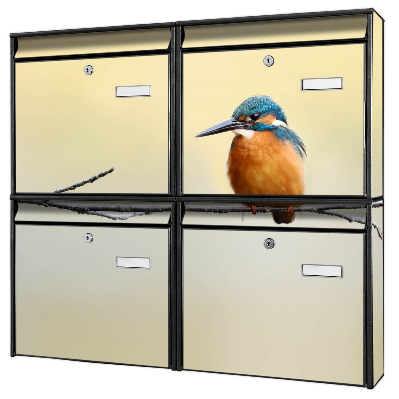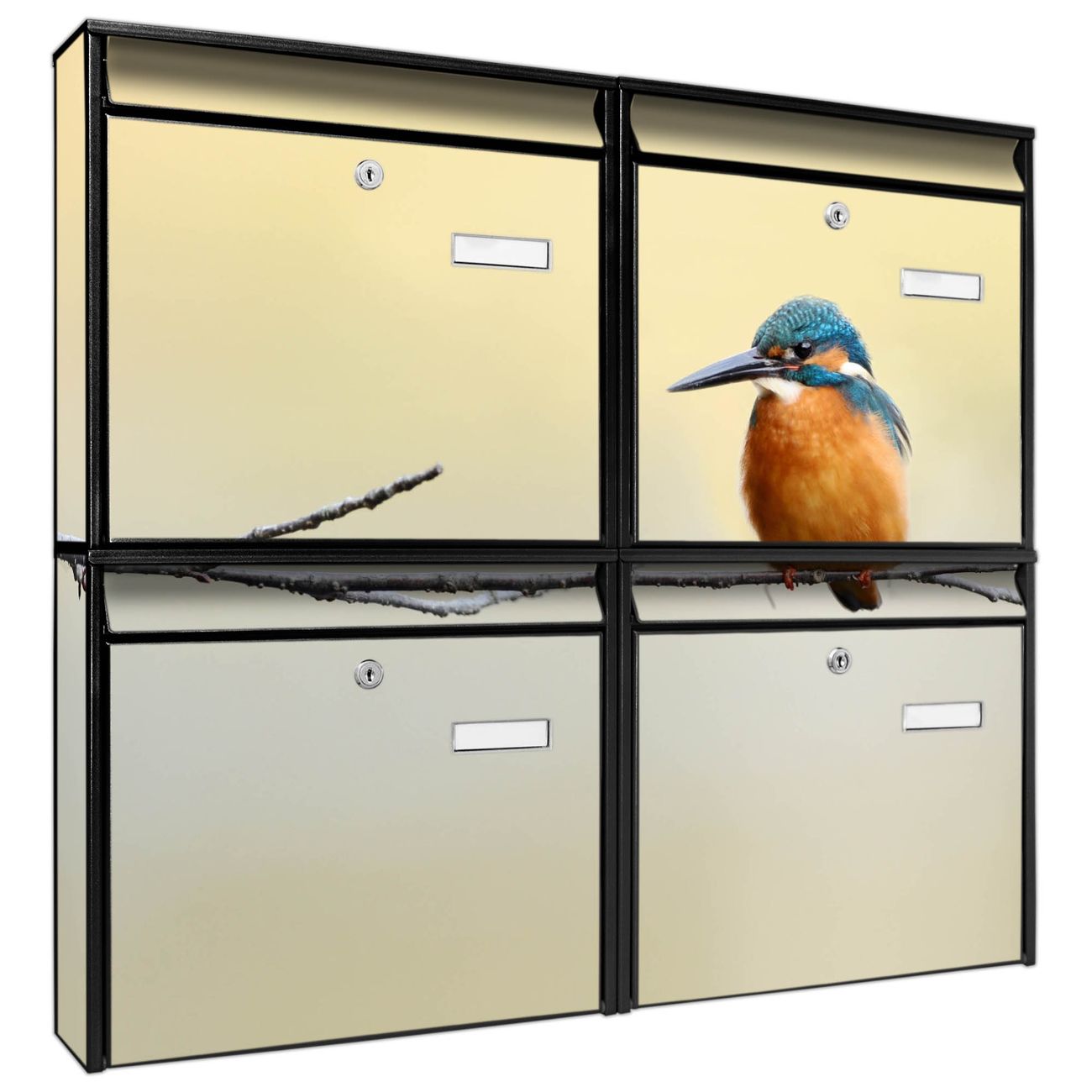 FUNKTION: Die Burg-Wächter Briefkastenanlage mit Motiv Pause bietet Ihnen ausreichend Fassungsvermögen um auch A4 und C4 Sendungen zu empfangen. Das integrierte Namensschild lässt sich individuell beschriften. Wählen Sie aus den Grundfarben weiß, silber und schwarz. DESIGN: Die 4 Briefkästen haben ein ansprechendes und zeitloses Design, ohne dabei auf Funktionalität zu verzichten. Das Material ist sehr stabil, wetterfest und rostfrei. Durch das Motiv Pause werden die Postkästen zu einem Blickfang. DETAILS: Die Postkästen bestehen aus verzinktem Stahl der zusätzlich mit Klarlack versiegelt wurde. Die Kästen sind gesamt 64,5cm hoch, 72,5cm breit und 10cm tief. Das Motiv besteht aus einer wetter- und UV-festen Folie, die Ihren Briefkasten zusätzlich vor Kratzern schützt. Die Postkästen werden mit Montagematerial, je einem Namensschild und je zwei Schlüsseln geliefert. NUTZEN: Das Briefkastenset eignet sich für die Wandmontage, die Größe bietet genügend Platz für Sendungen aller Art. Das zeitlose Design sowie die stabile Bauart bieten Ihnen einen treuen Begleiter für Ihre Post. BANJADO: